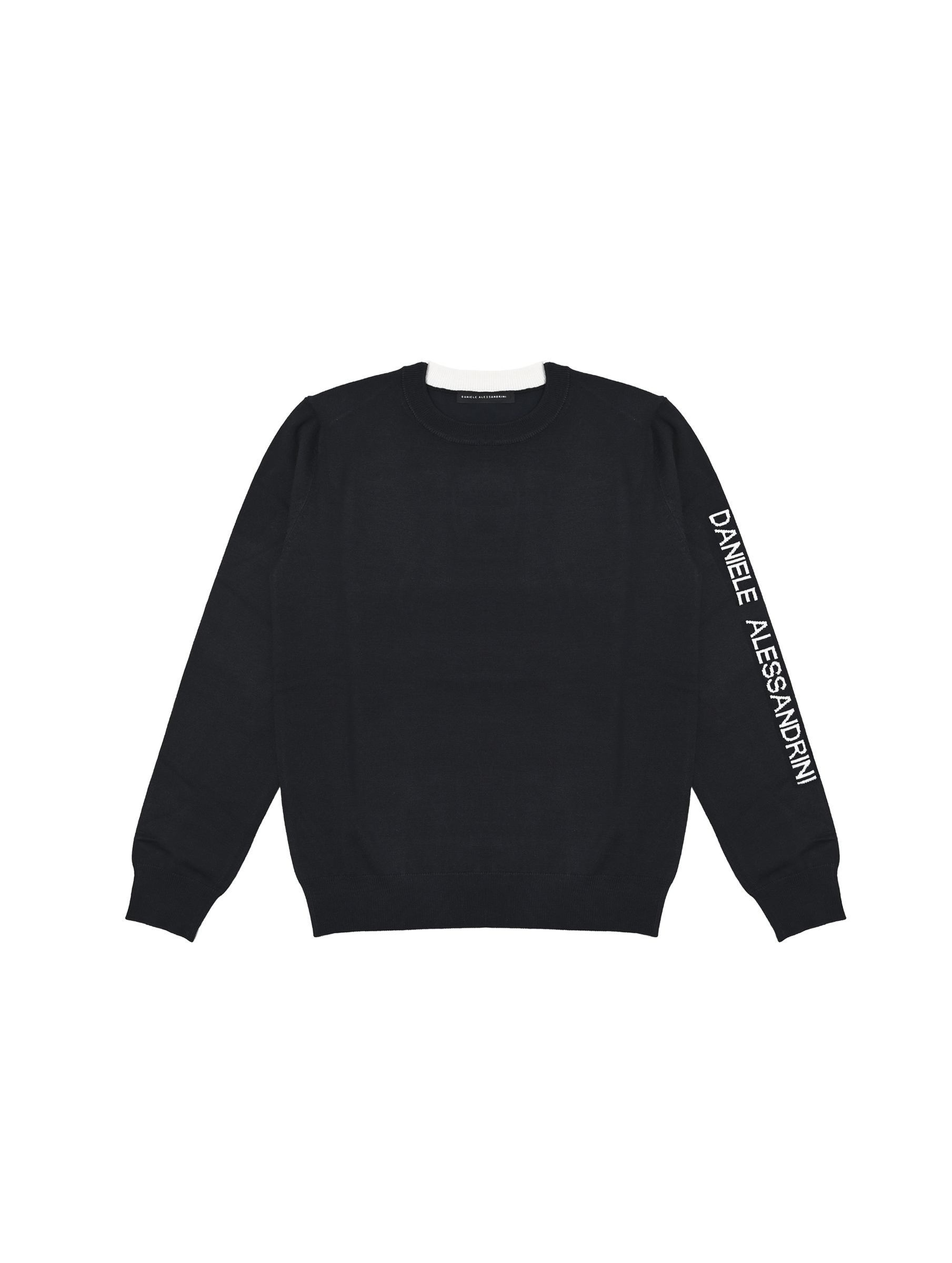 Maglia girocollo, a tinta unita, con dettagli a contrasto ed insert ricamo scritta logo a contrasto laterale sulla manica. ALESSANDRINI