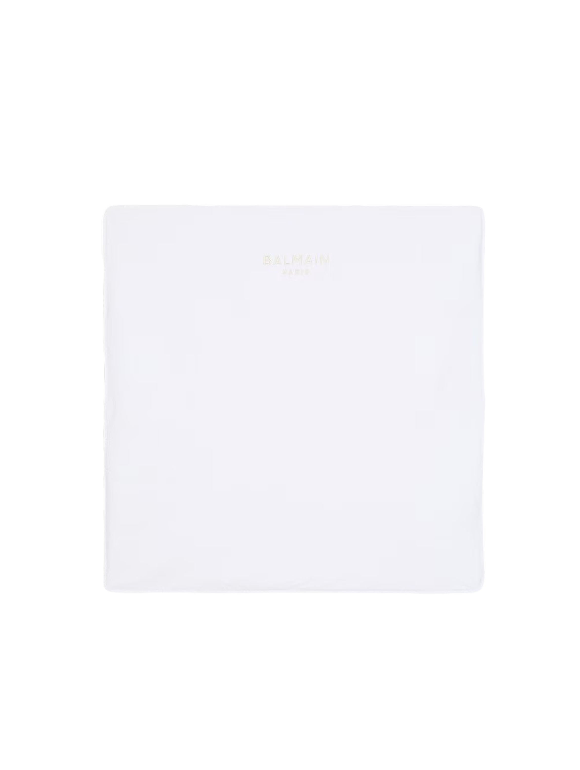 Morbida copertina double face, con un lato con iconico monogramma a labirinto all over, un lato a tinta unita e logo lettering ricamato sul fronte. Trendy e fashion. BALMAIN