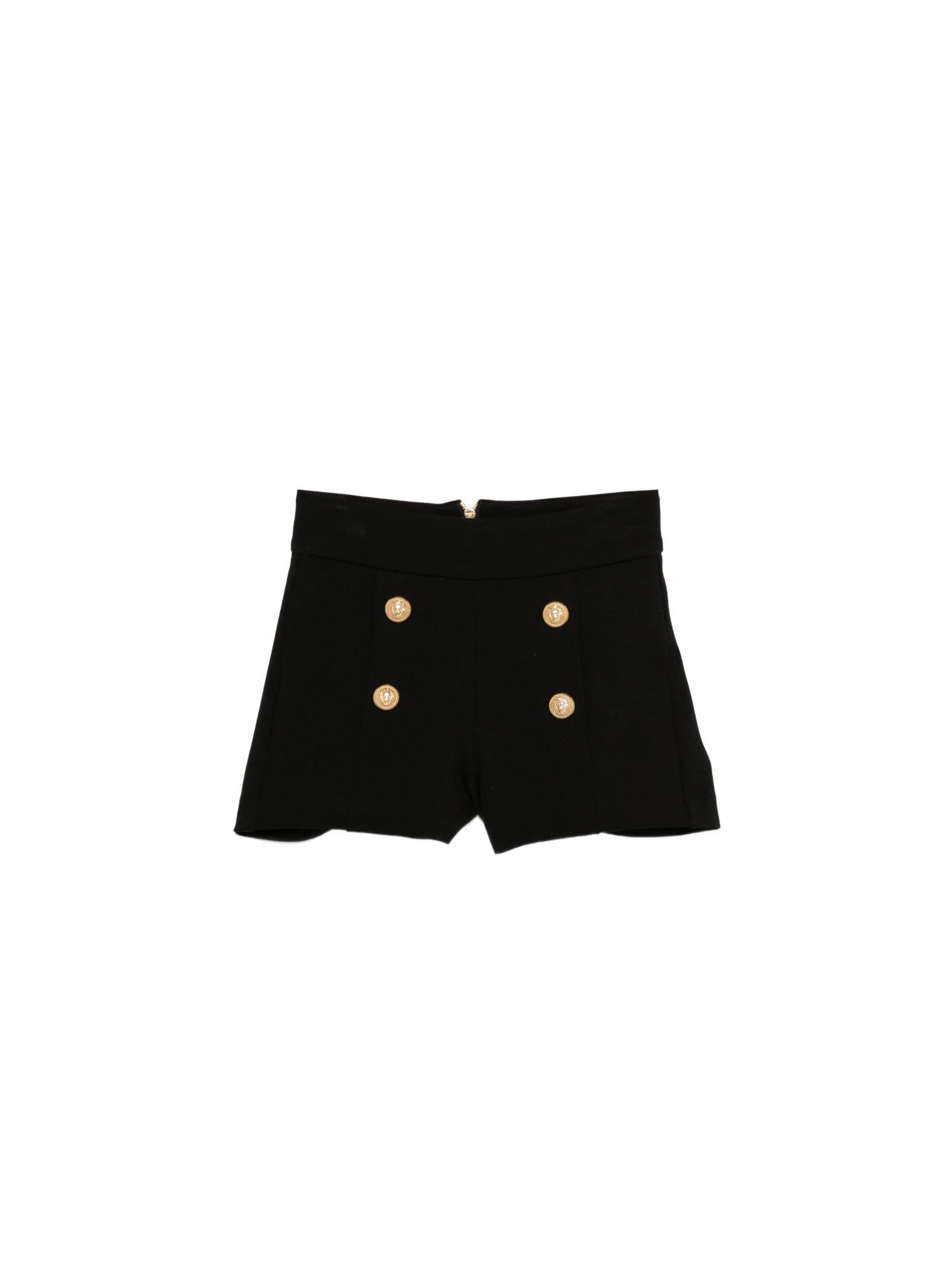 Shorts realizzati in misto viscosa, a tinta unita, dal particolare design con zip sul retro, bottoni logati decorativi sul davanti e patch con logo in vita sul retro. Per look eleganti e fashion. BALMAIN