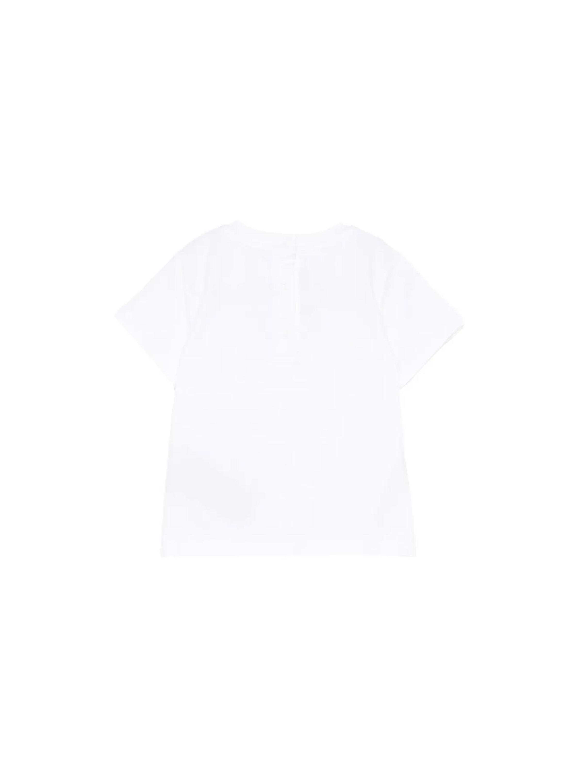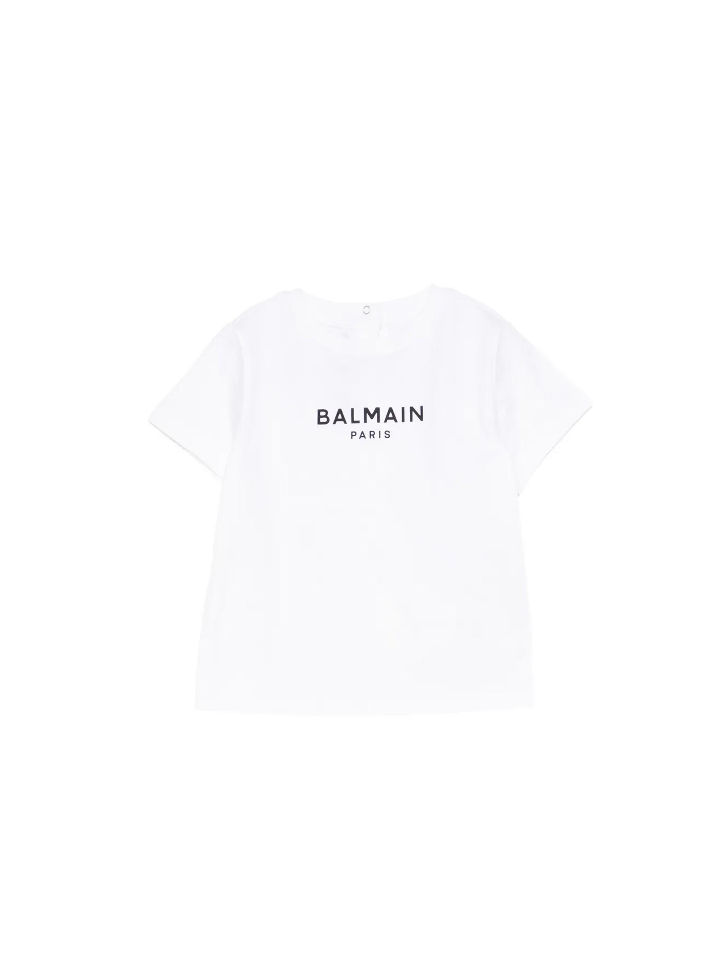 T-shirt a maniche corte, a tinta unita, con scollo rotondo, apertura con bottoncini automatici sul retro e logo lettering a contrasto sul davanti. Per un look basic e casual. BALMAIN