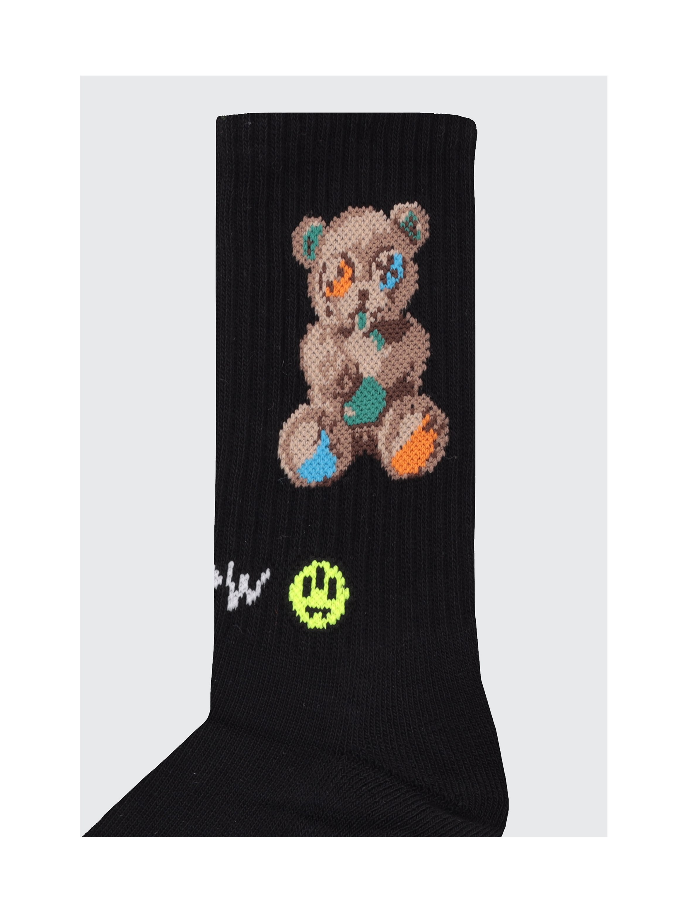Calzini in maglia a tinta unita, con lavorazione a costine sul gambale, con iconico Teddy Barrow e logo con Smile jacquard sul gambale. Per un look trendy e cool. BARROW