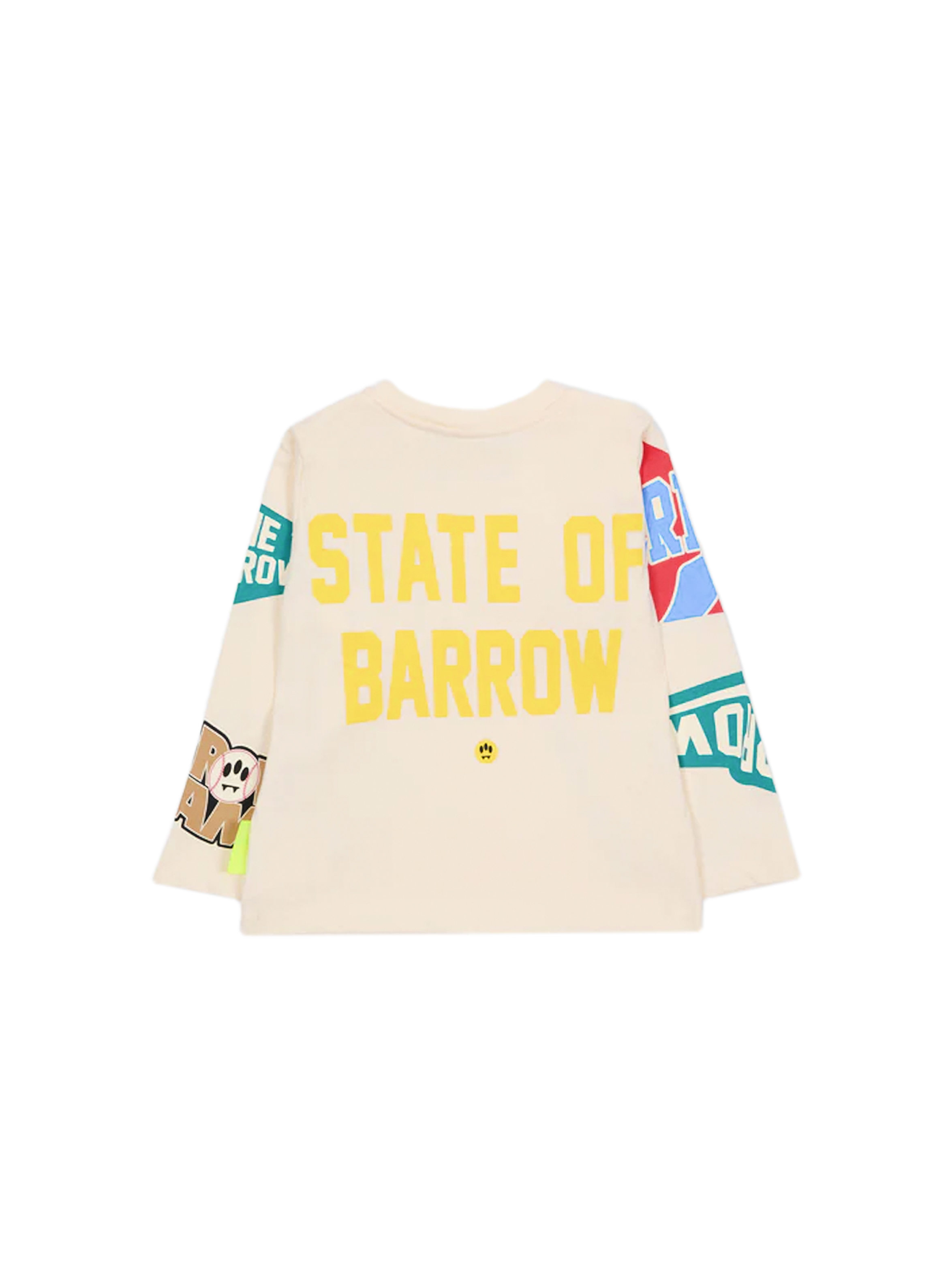 T-shirt in jersey a maniche lunghe, con scollo rotondo, a tinta unita, con apertura con bottoni sulla spalla, flag con logo laterale, maxi logo con slogan a contrasto sul retro e grafiche a sketch all over. Per un look trendy e cool. BARROW