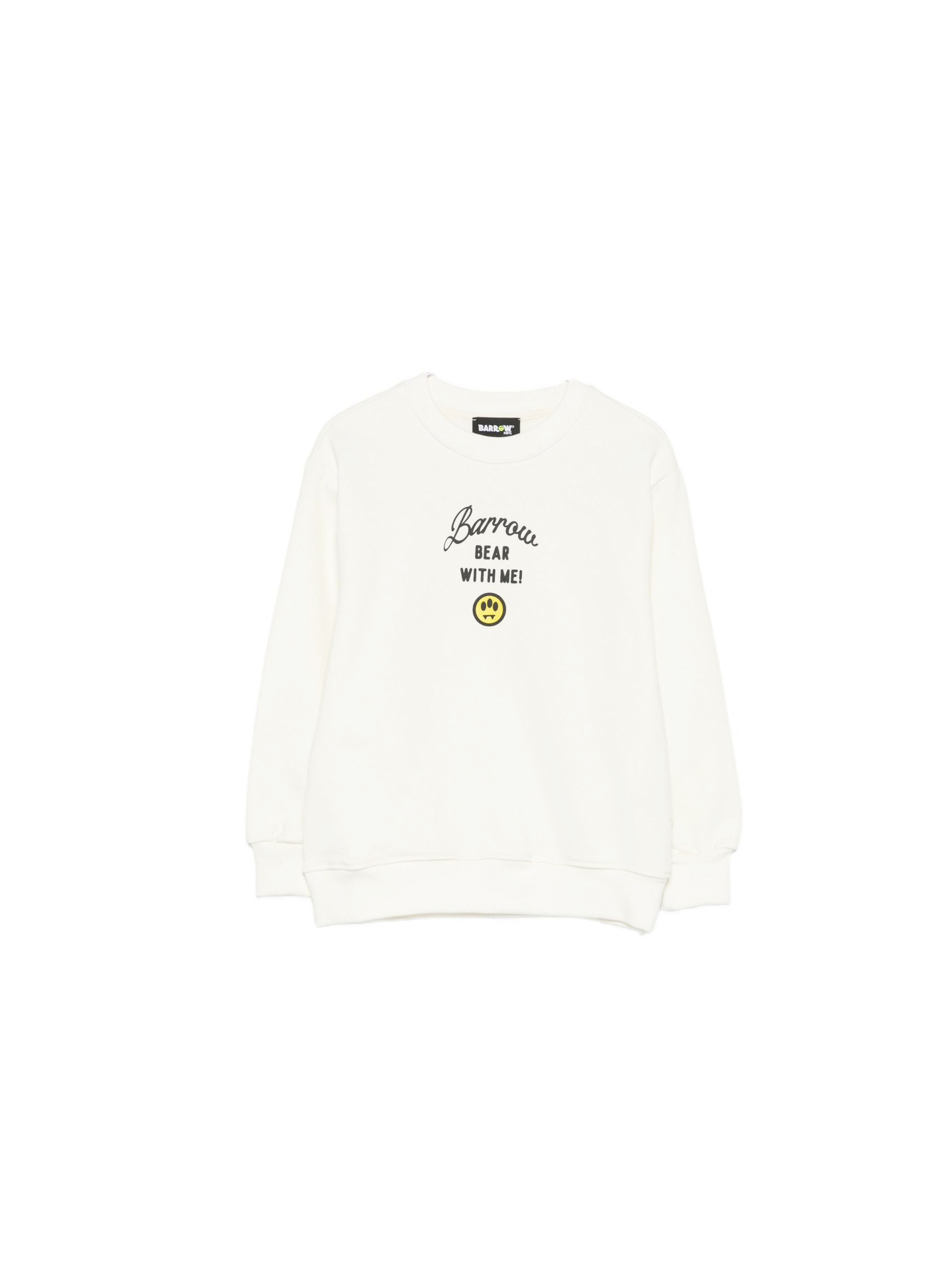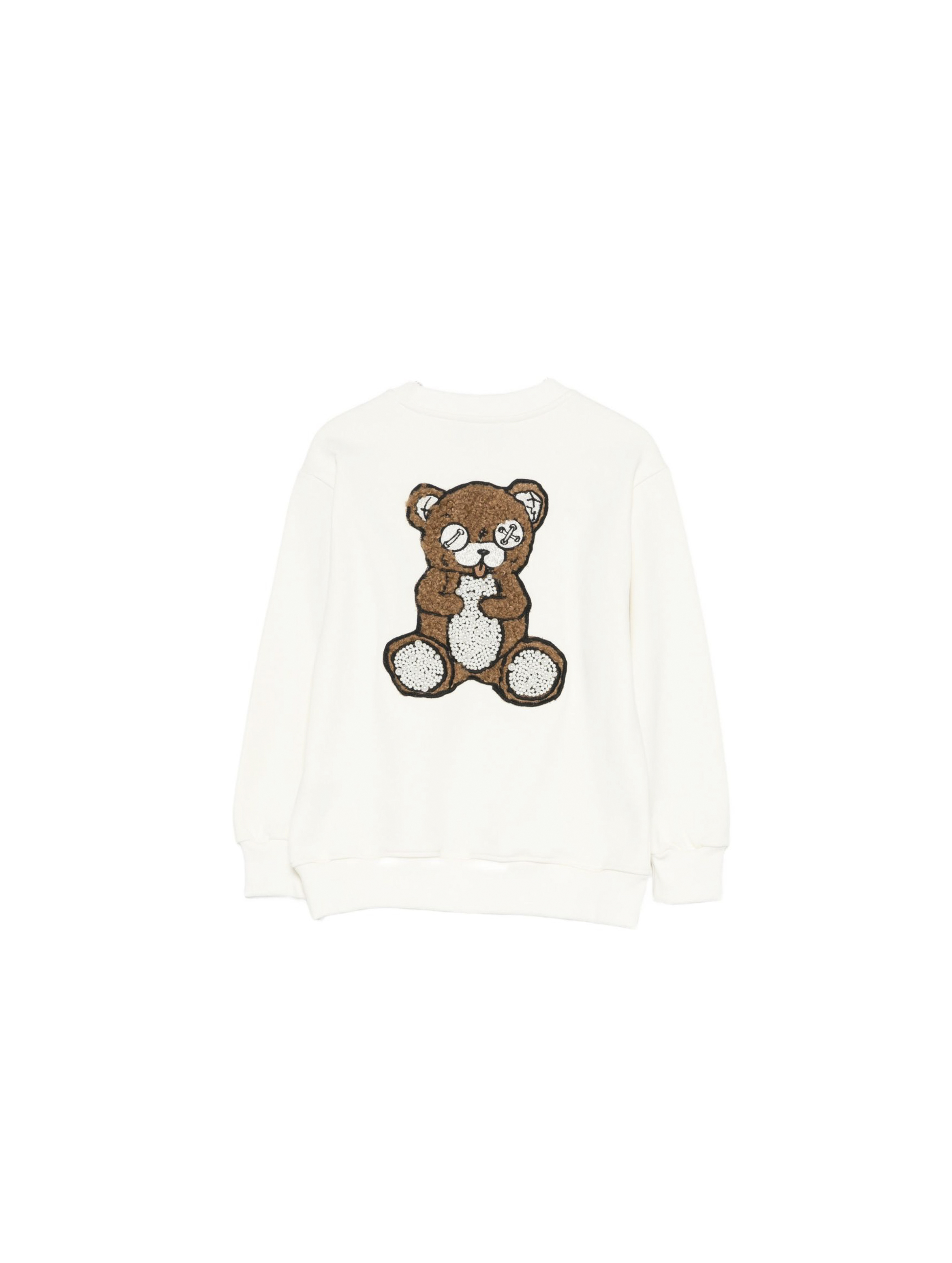 Felpa a maniche lunghe, con scollo rotondo, a tinta unita, con bordi e polsini a costine, logo con slogan e iconico Smile stampati sul fronte e maxi Teddy Barrow con applicazioni di perle e peluche sul retro. Per un look trendy e cool. BARROW
