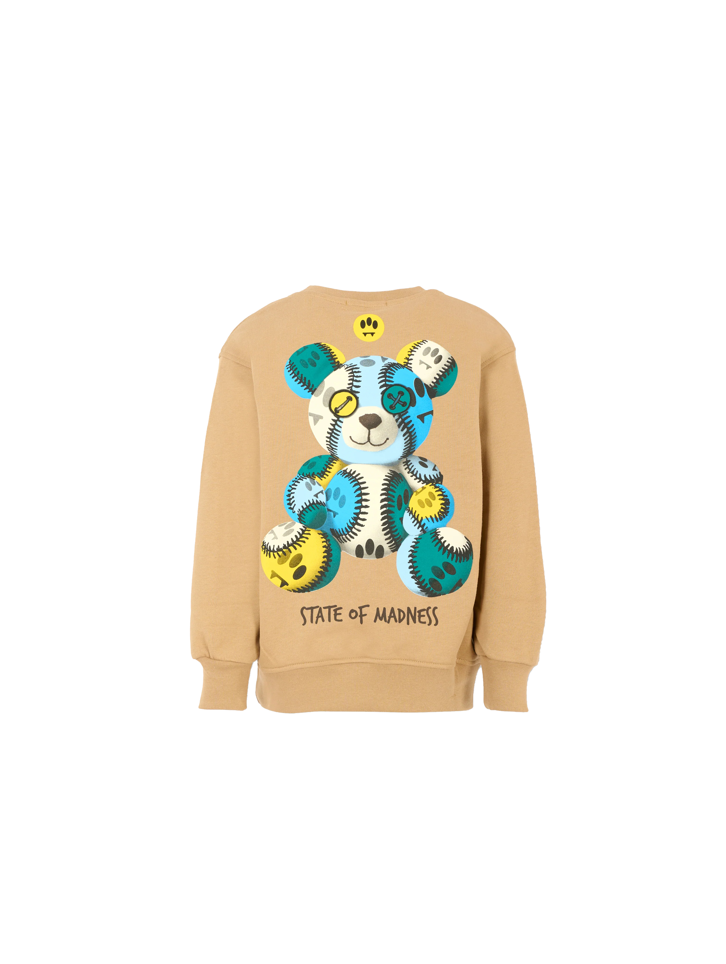Felpa a maniche lunghe, con scollo rotondo, a tinta unita, con bordi e polsini a costine, flag con logo sul lato, maxi slogan con logo sul davanti e maxi Teddy Barrow con iconico Smile e slogan sul retro. Per un look cool e trendy. BARROW