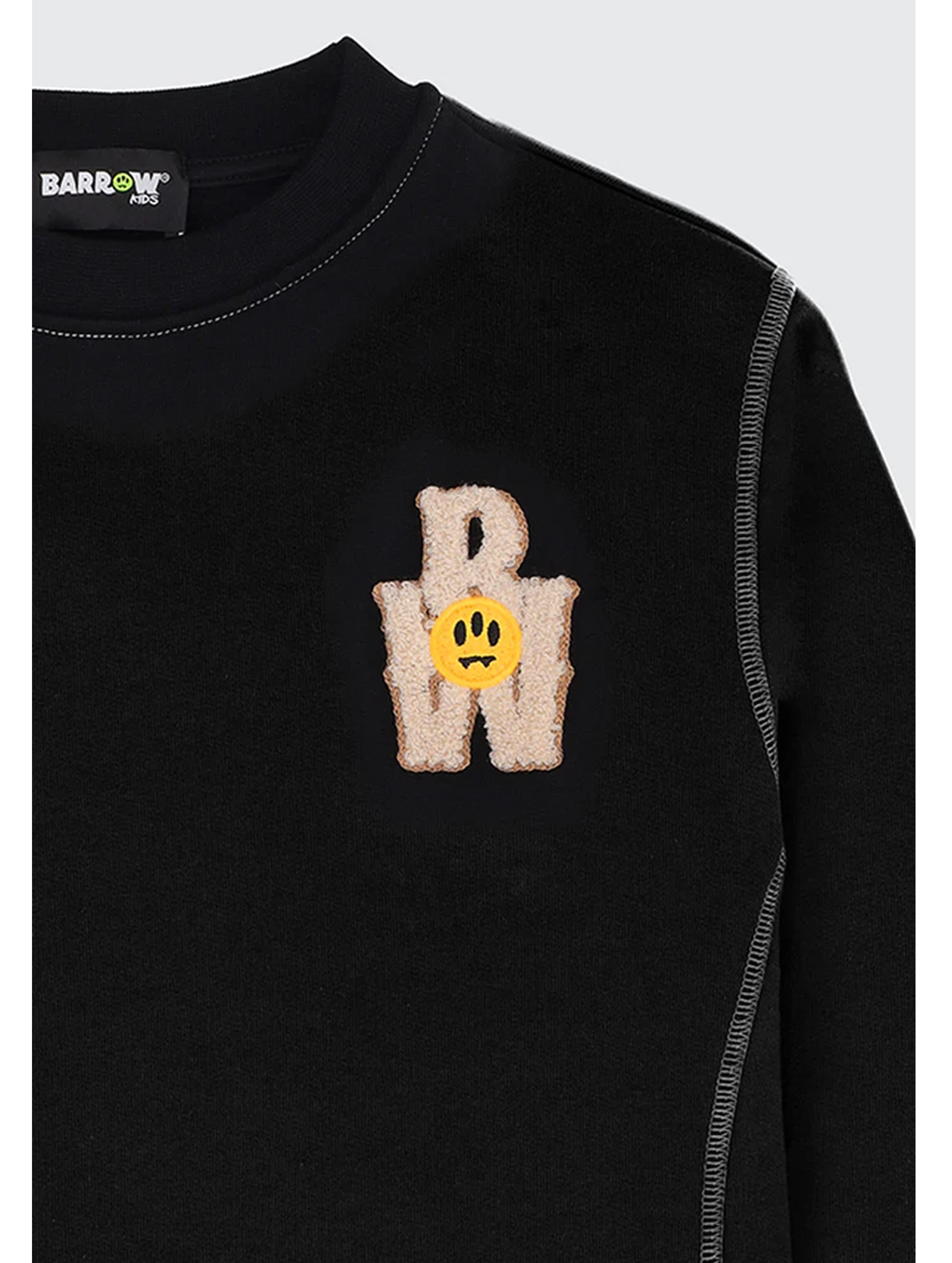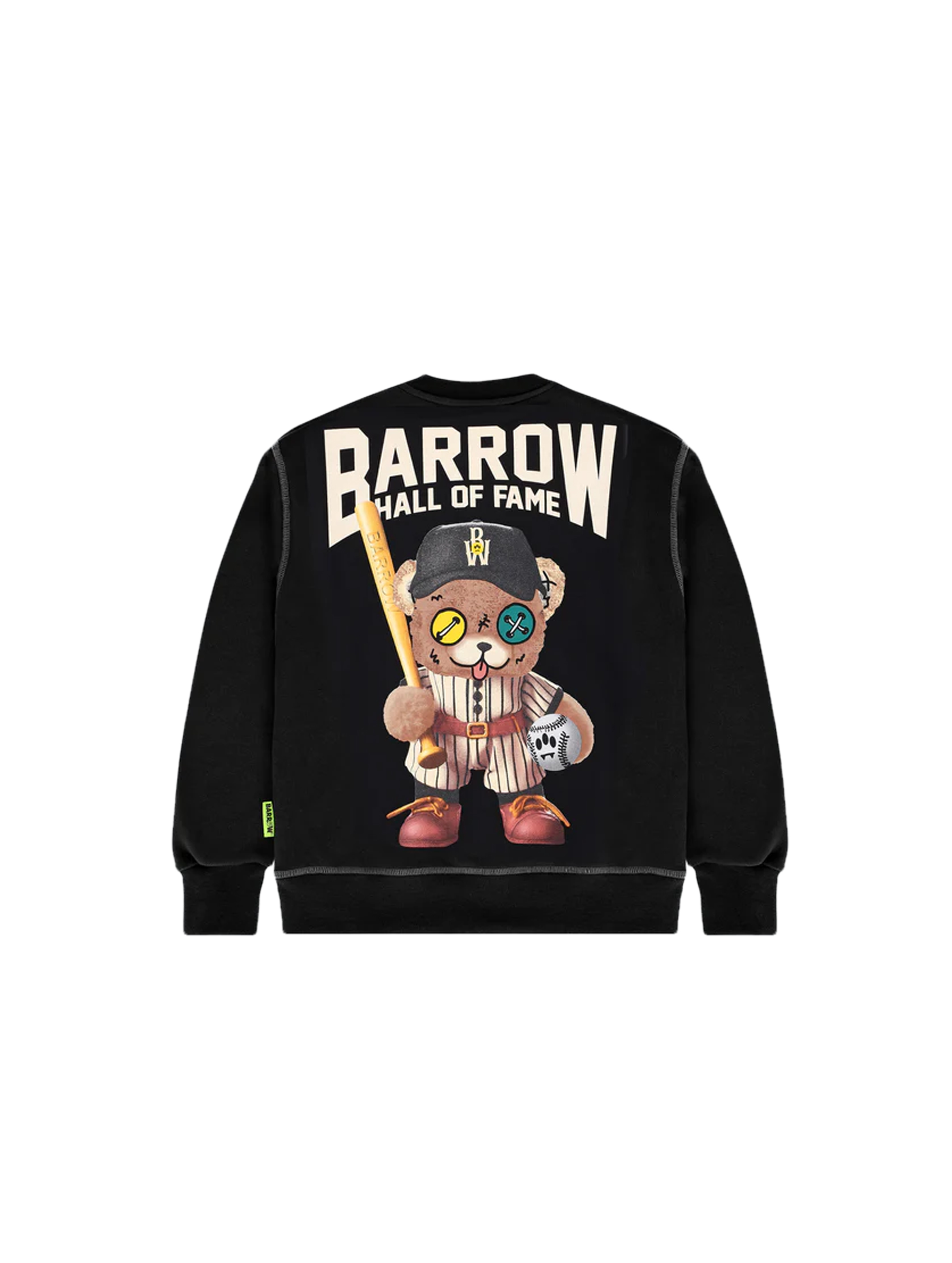 Felpa a maniche lunghe, con scollo rotondo, a tinta unita, con bordi e polsini a costine, logo BW fleece con iconico Smile sul petto e maxi stampa grafica di logo con Teddy Barrow giocatore di baseball sul retro. Per un look casual e trendy. BARROW