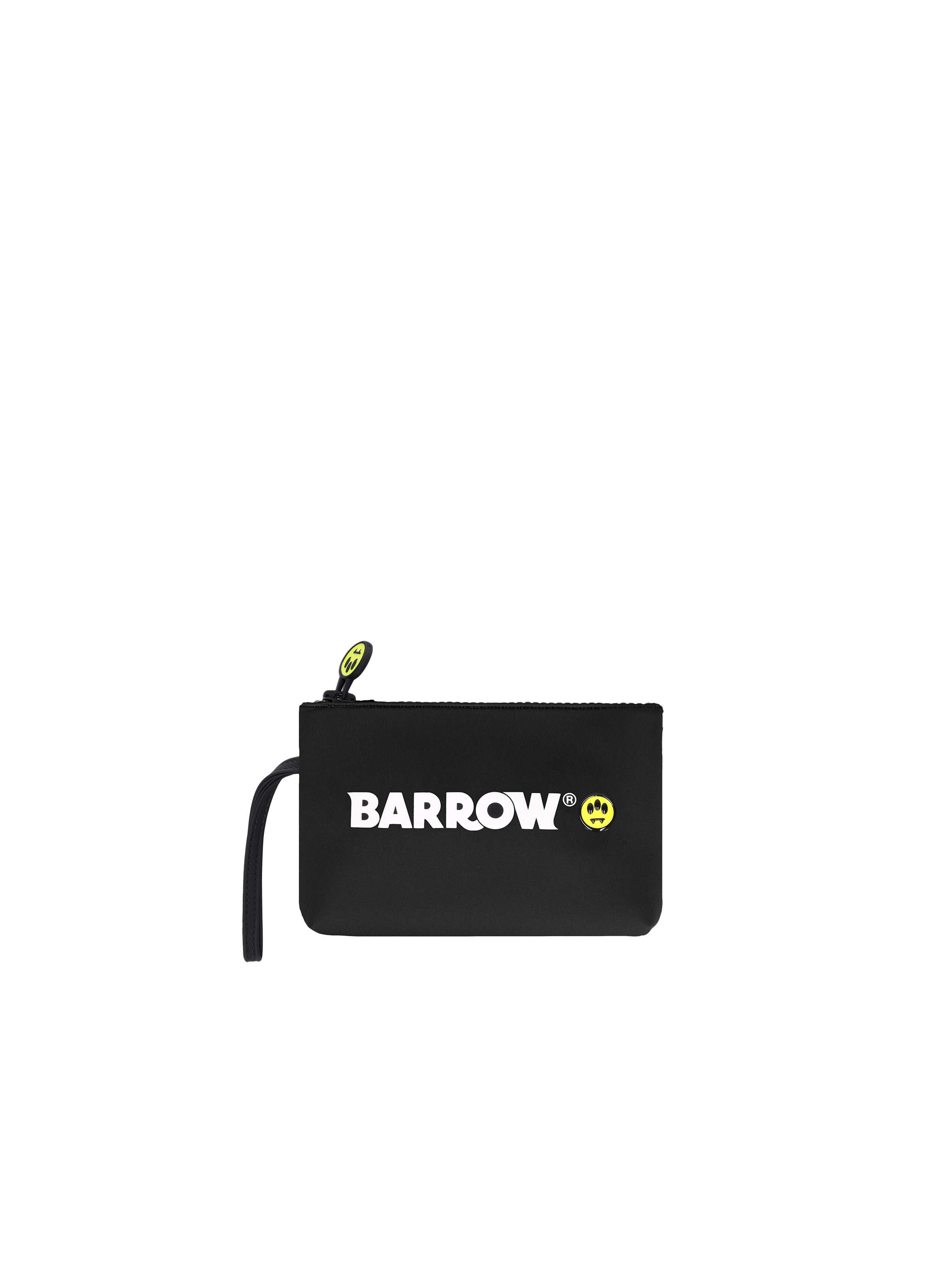 Pochette compatta a tinta unita, con manicotto fisso, chiusura con zip, tirazip logato, maxi logo a contrasto sul davanti e iconico Smile Barrow tridimensionale. Un accessorio utile e trendy. BARROW