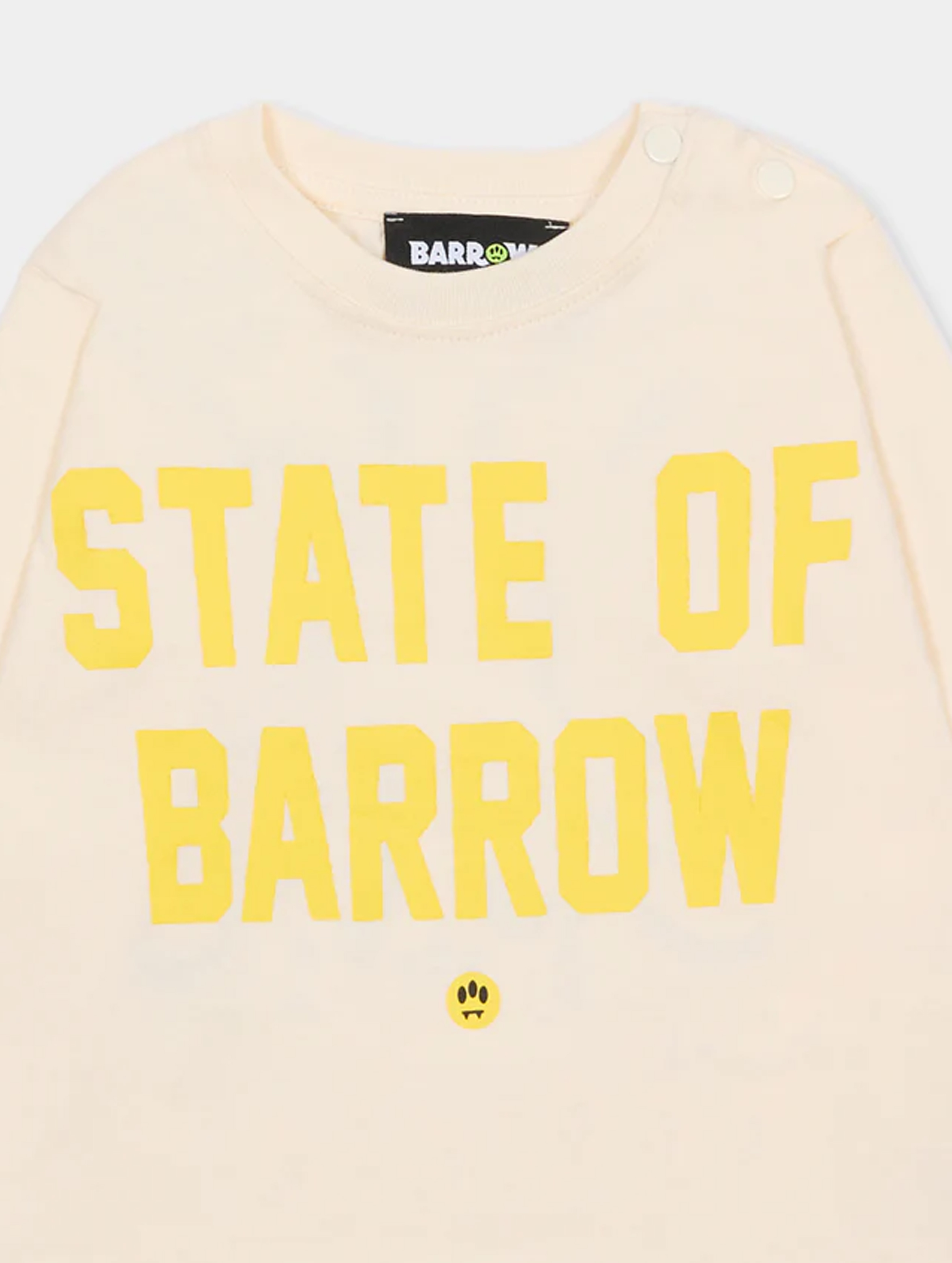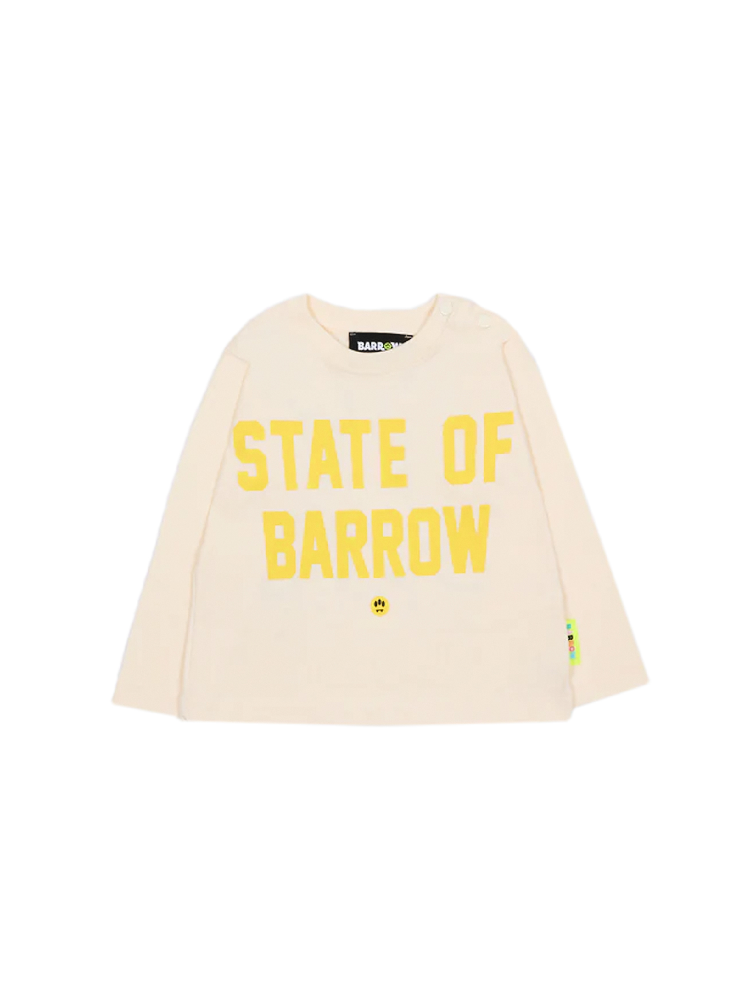 T-shirt in jersey a maniche lunghe, con scollo rotondo, a tinta unita, con apertura con bottoni sulla spalla, flag con logo laterale, maxi logo con slogan a contrasto sul davanti e maxi orsetto Barrow con iconico Smile sul retro. Per un look trendy e cool. BARROW