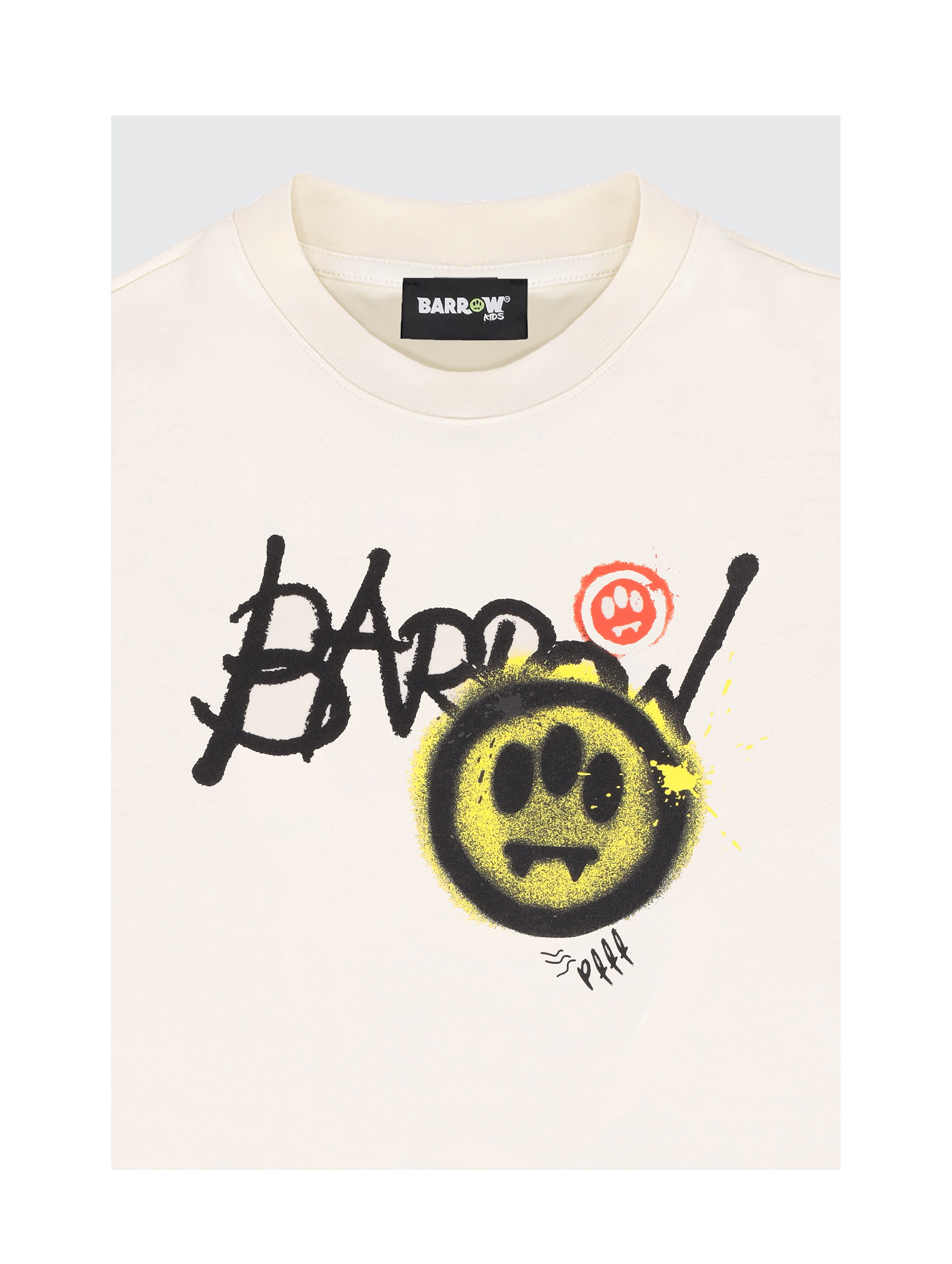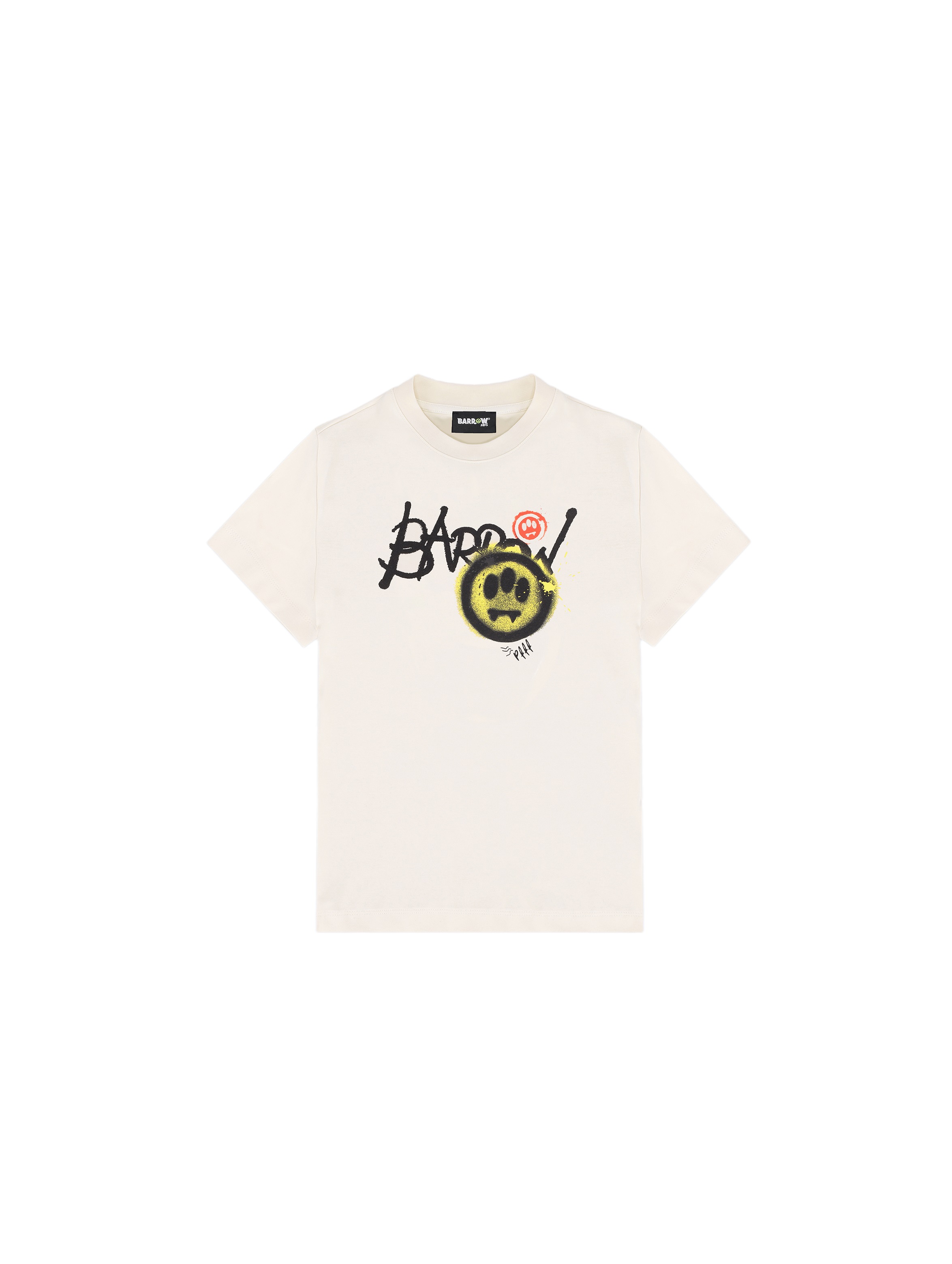 T-shirt in confortevole jersey di cotone, dalla vestibilità regular, a maniche corte, con scollo rotondo, a tinta unita, con maxi stampa grafica del logo e dell'iconico Smile Barrow spruzzato sul davanti. Per un look urban e cool. BARROW