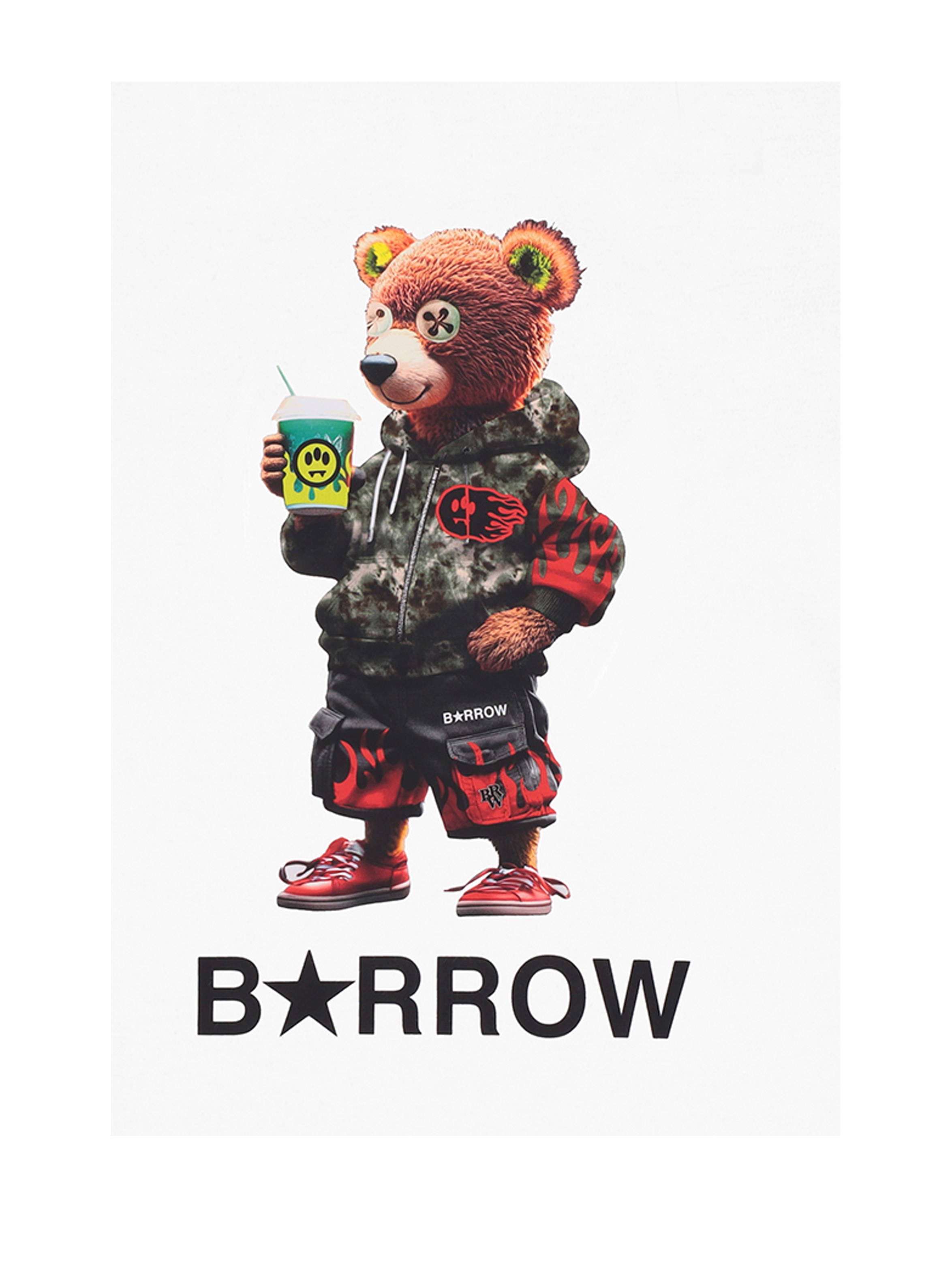 T-shirt in confortevole jersey di cotone, dalla vestibilità regular, a maniche corte, con scollo rotondo, a tinta unita, con maxi stampa grafica dell'iconico Teddy Barrow stile underground con logo sul davanti. Per un look urban e cool. BARROW