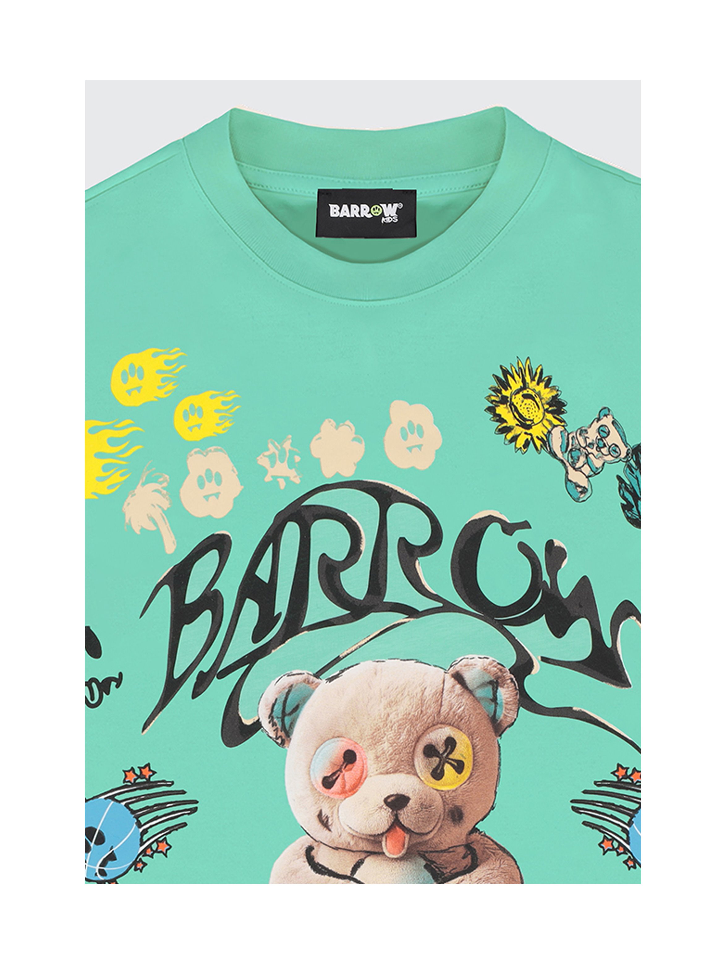 T-shirt in confortevole jersey di cotone, dalla vestibilità over, a maniche corte, con scollo rotondo, a tinta unita, con iconico Teddy Barrow con logo sul davanti e grafiche a sketch all over. Per un look urban e cool. BARROW