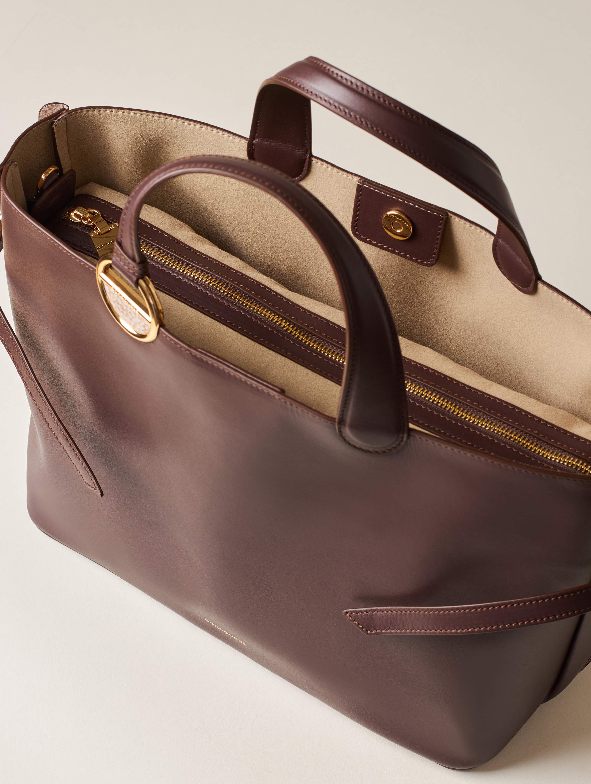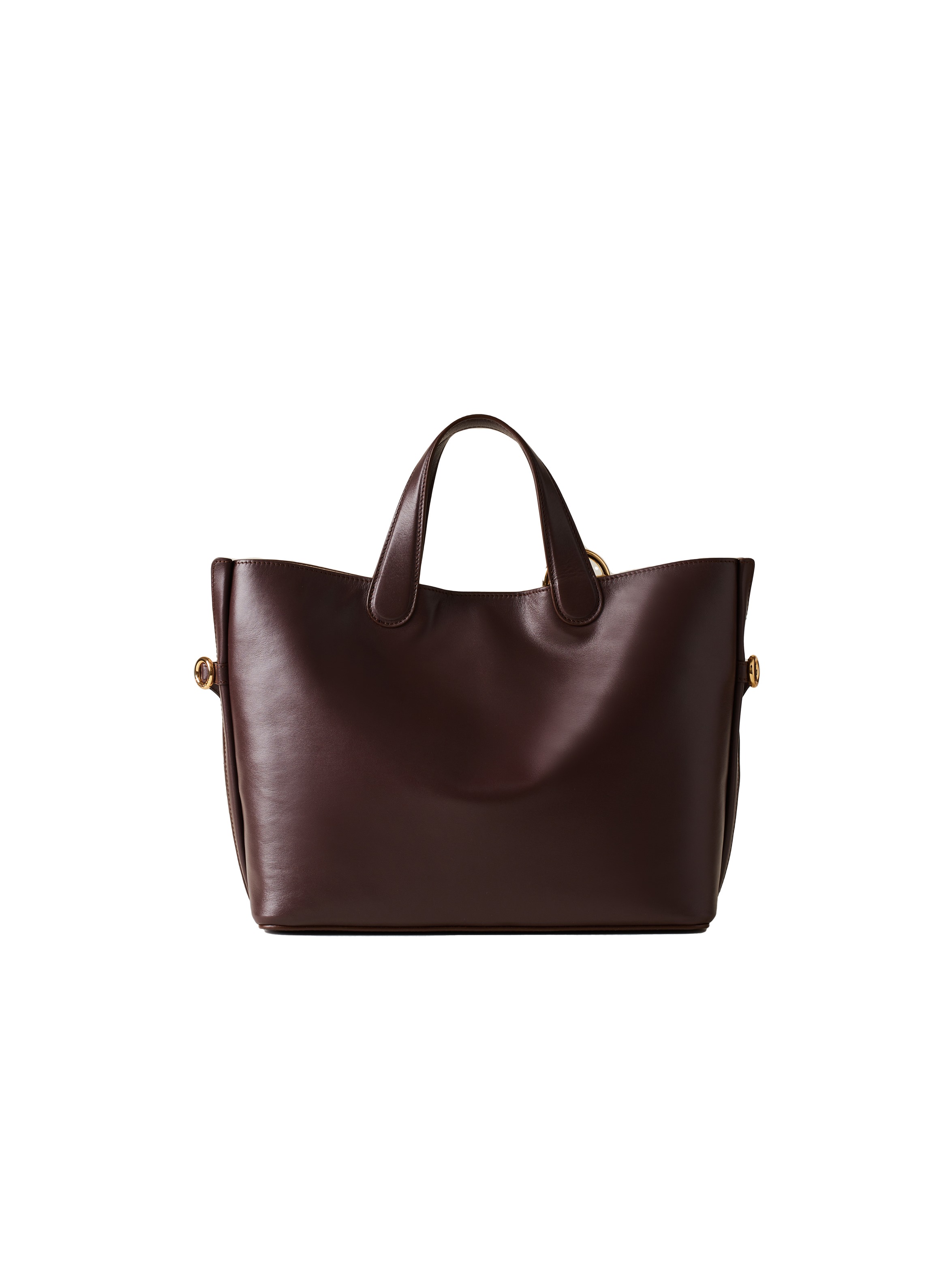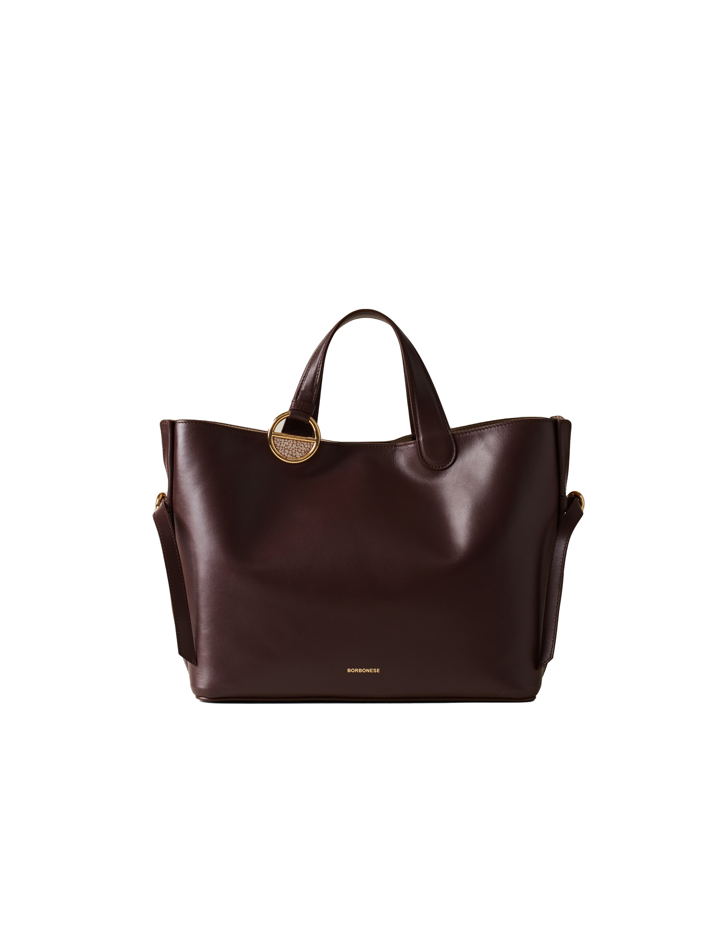 Borsa a mano modello shopper in vitello nappato, con dettagli in camoscio Op, fodera di tessuto effetto scamosciato, pouch interna in fodera di tessuto effetto scamosciato chiusa con zip in metallo e removibile con bottoni a pressione, chiusura centrale con magnete, metallerie oro, doppi manici per doppia portabilità. Per un look iconico e fashion. BORBONESE