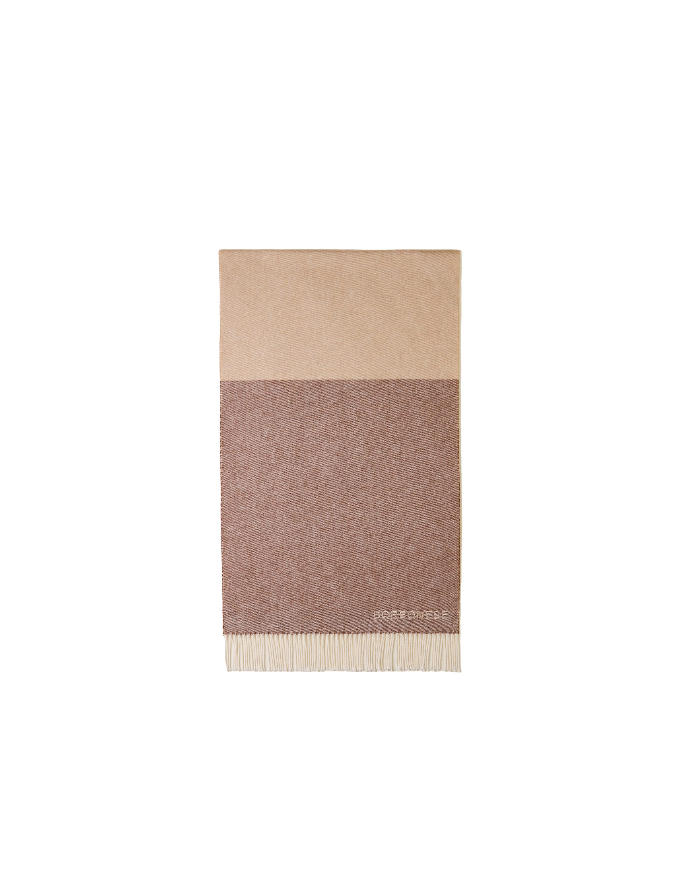 Stola tricolore in misto cotone, con ricamo logo Borbonese e finiture con frange. Misure 55x200. Per un look raffinato e trendy. BORBONESE