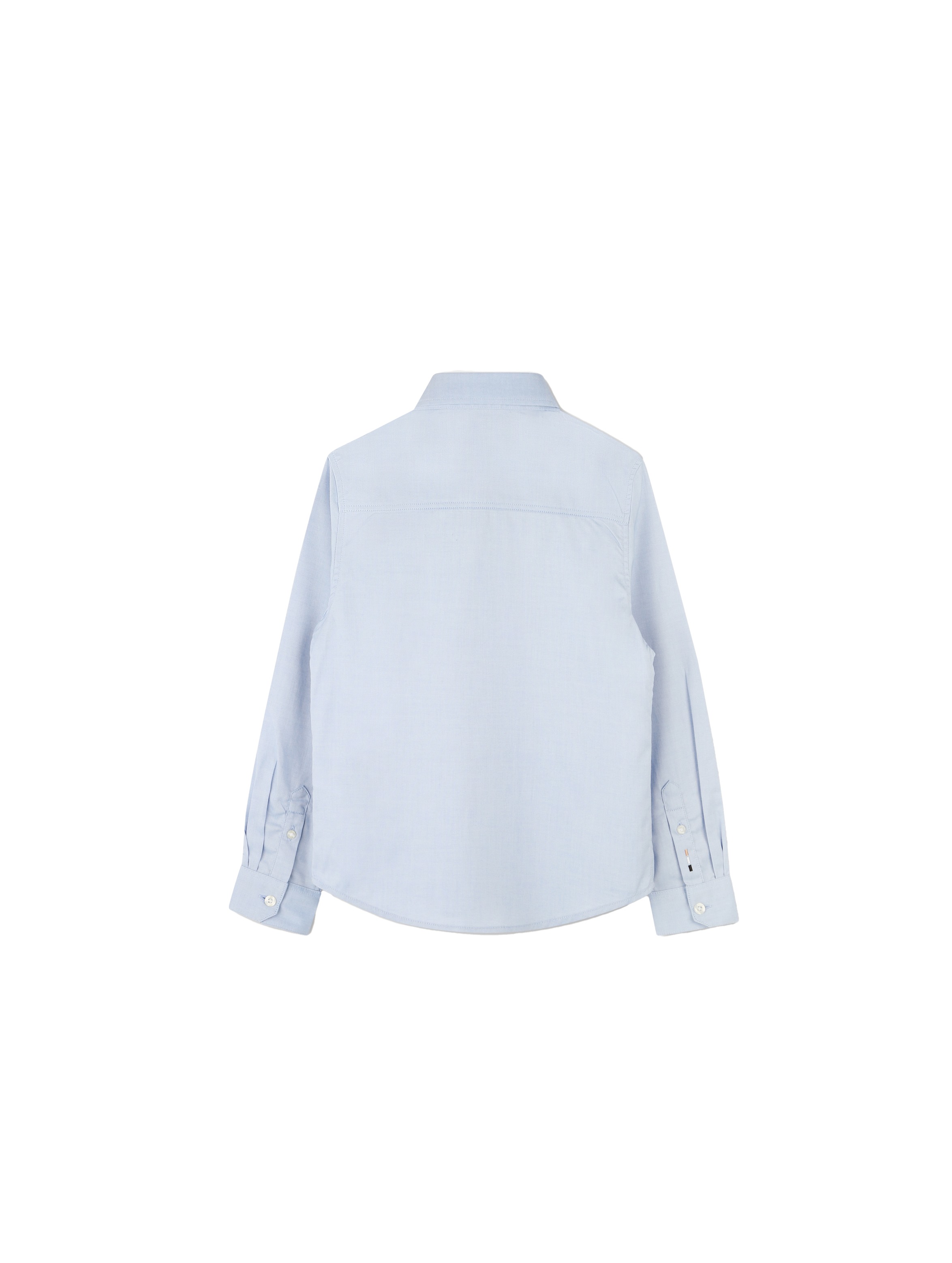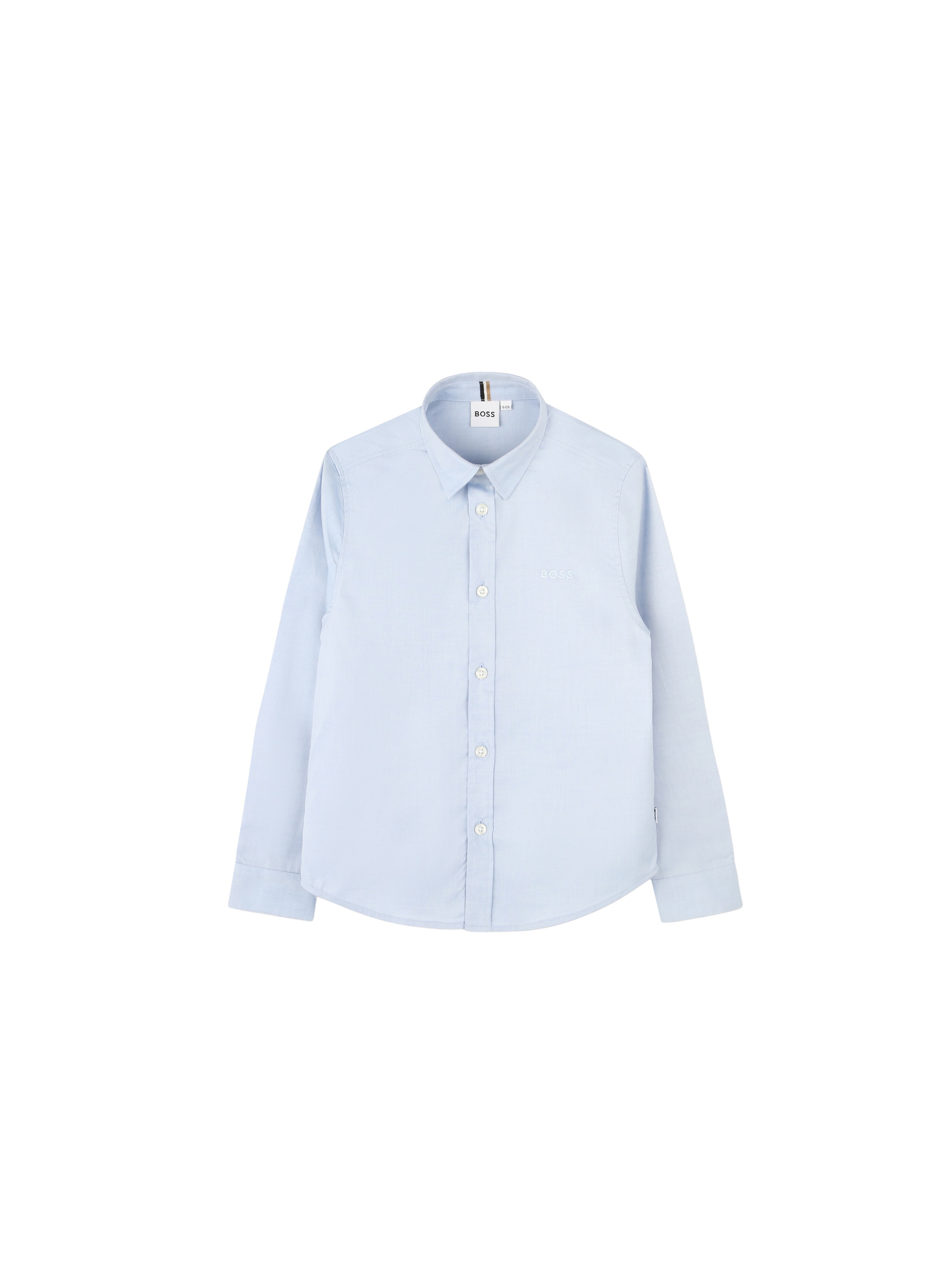 Camicia a maniche lunghe, a tinta unita, con colletto a punta, chiusura frontale con bottoni, flag con logo sul lato, ricamo tricolore al polsino e piccolo logo ricamato a contrasto sul petto. Elegante e raffinata. BOSS