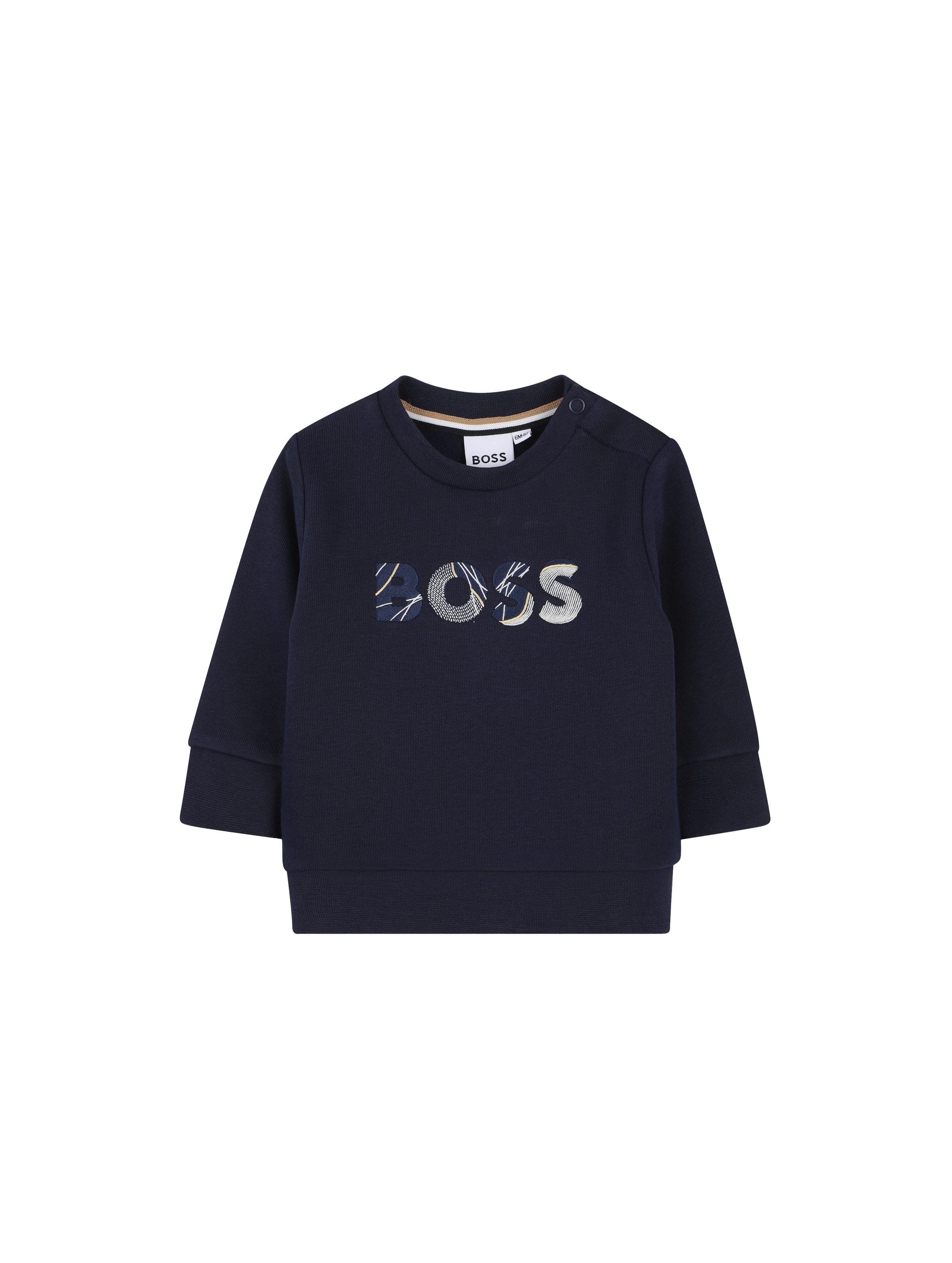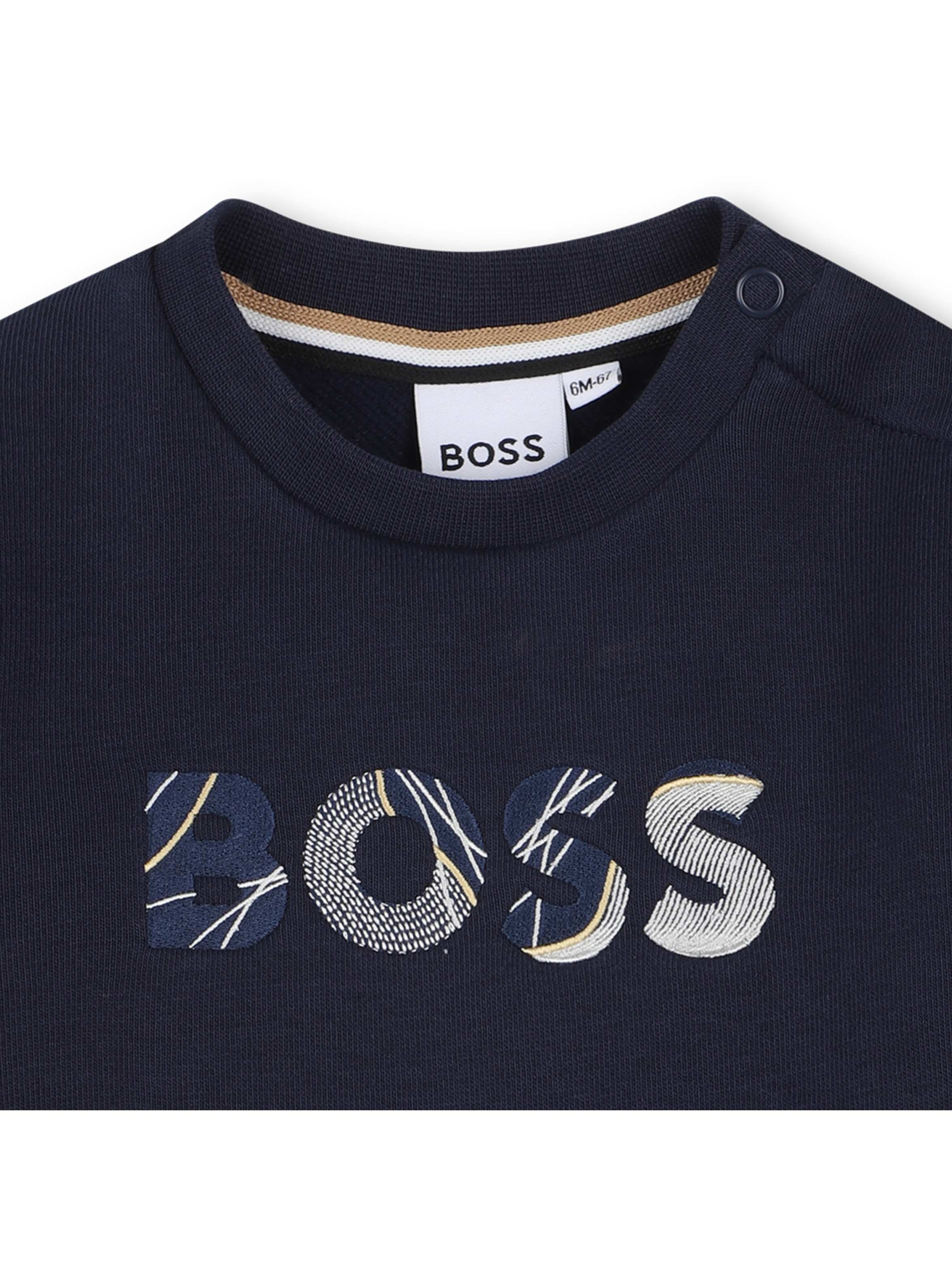 Felpa a maniche lunghe, con scollo rotondo, a tinta unita, con apertura con bottone automatico sulla spalla, bordi e polsini a cintone elastico e maxi logo lettering multicolor sul davanti. Per un look trendy e casual. BOSS
