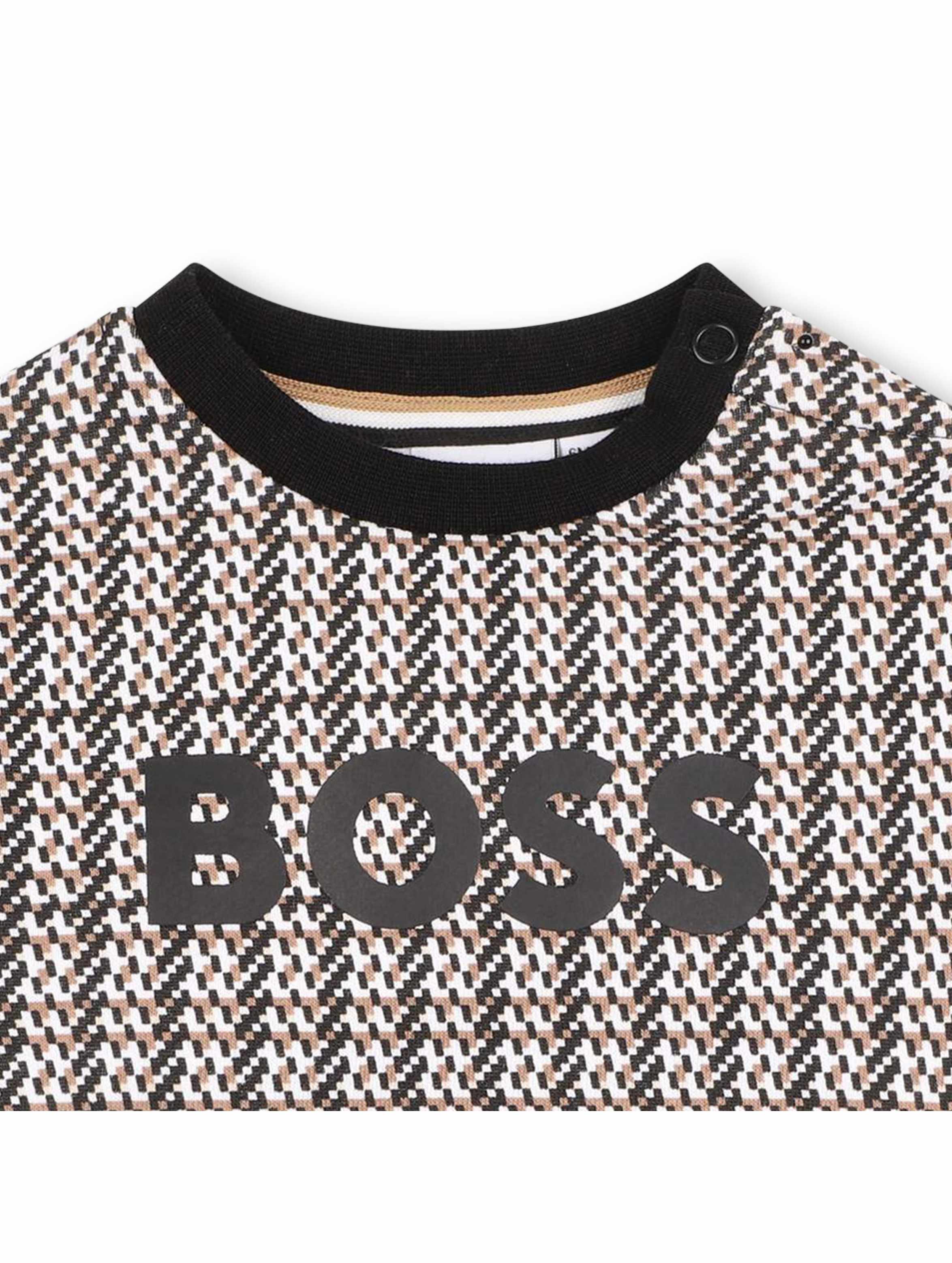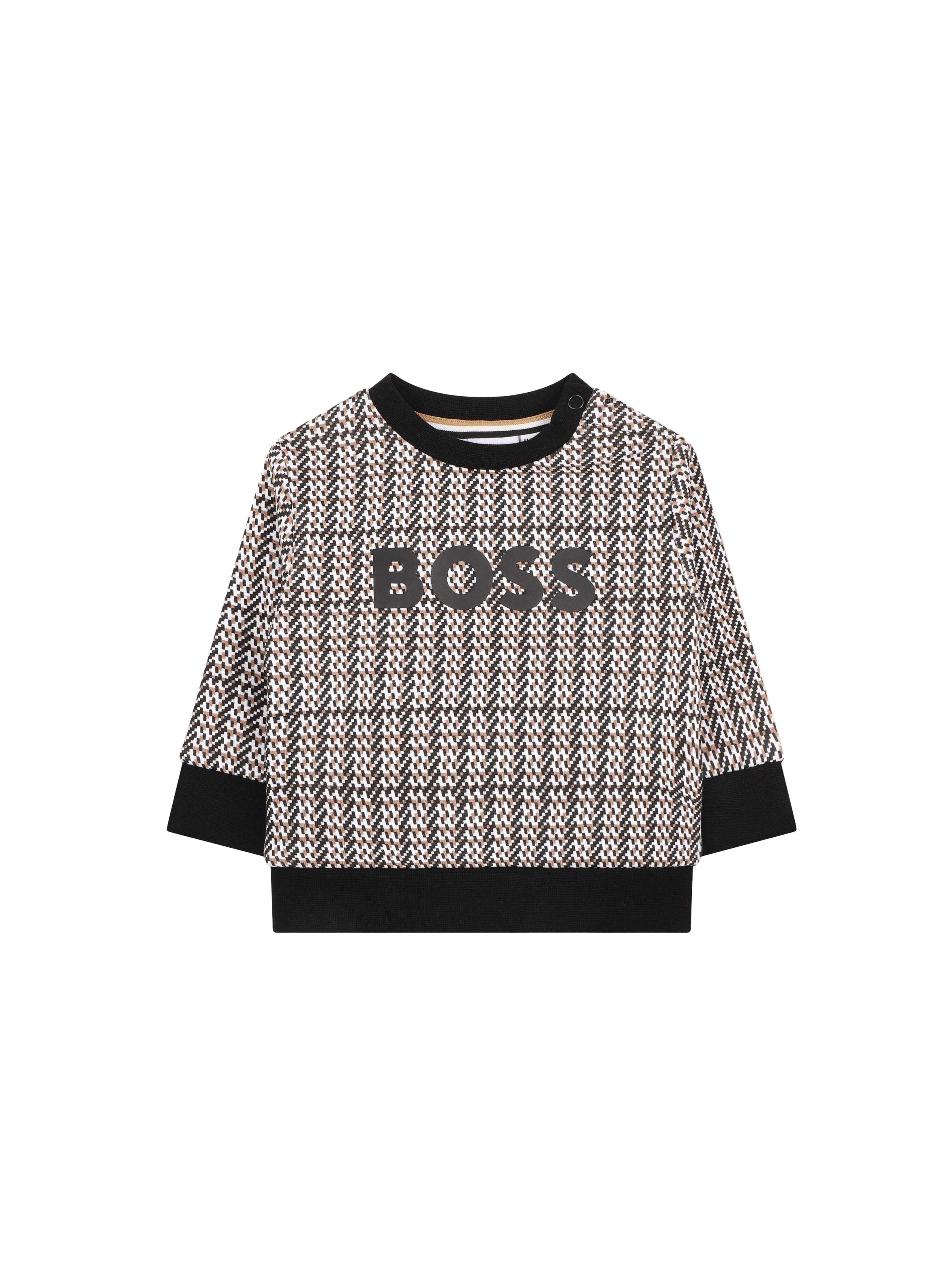 Felpa a maniche lunghe, con scollo rotondo, a fantasia, con apertura con bottoni automatici sulla spalla, bordi a costine a contrasto e maxi logo lettering sul davanti. Per un look trendy e casual. BOSS