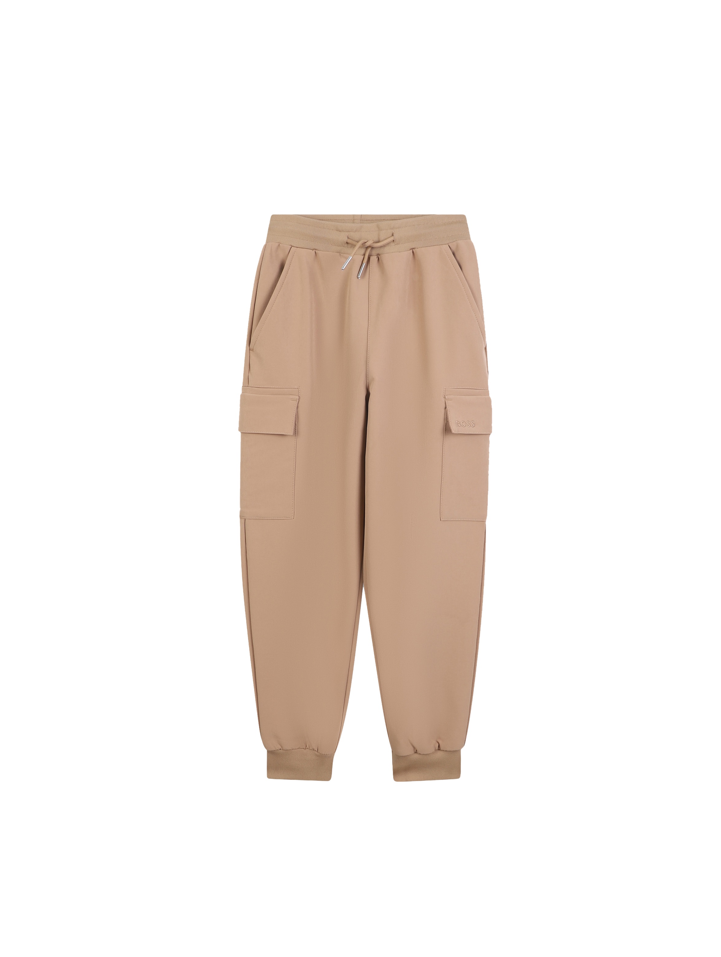 Pantaloni lunghi in felpa, dalla vestibilità jogger, a tinta unita, con polsini e vita a coste, coulisse, tasche oblique ai lati, tasconi con patta ai lati delle gambe e logo ricamato in tinta sul lato. Per un look sportivo e trendy. BOSS