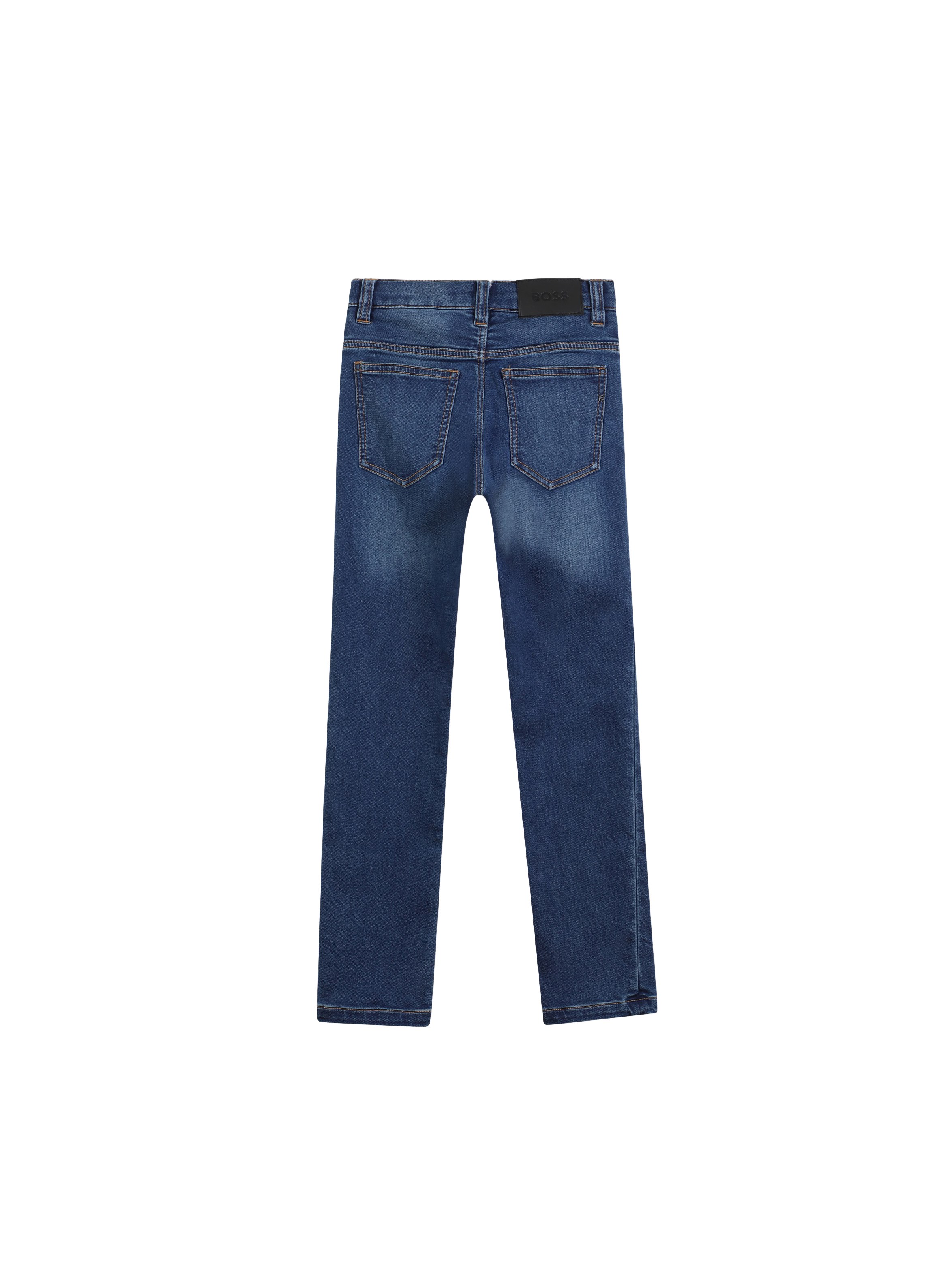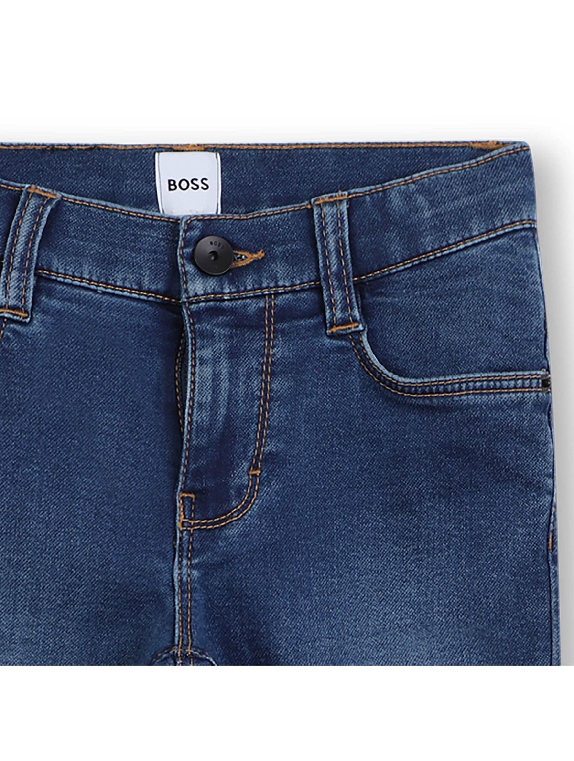 Jeans in denim di cotone stretch, con gamba dritta, con sfumature effetto used, modello cinque tasche, con passanti in vita, chiusura con bottone e zip nascosta, piccolo logo sul taschino e patch con logo sul retro. Per un look casual e trendy. BOSS