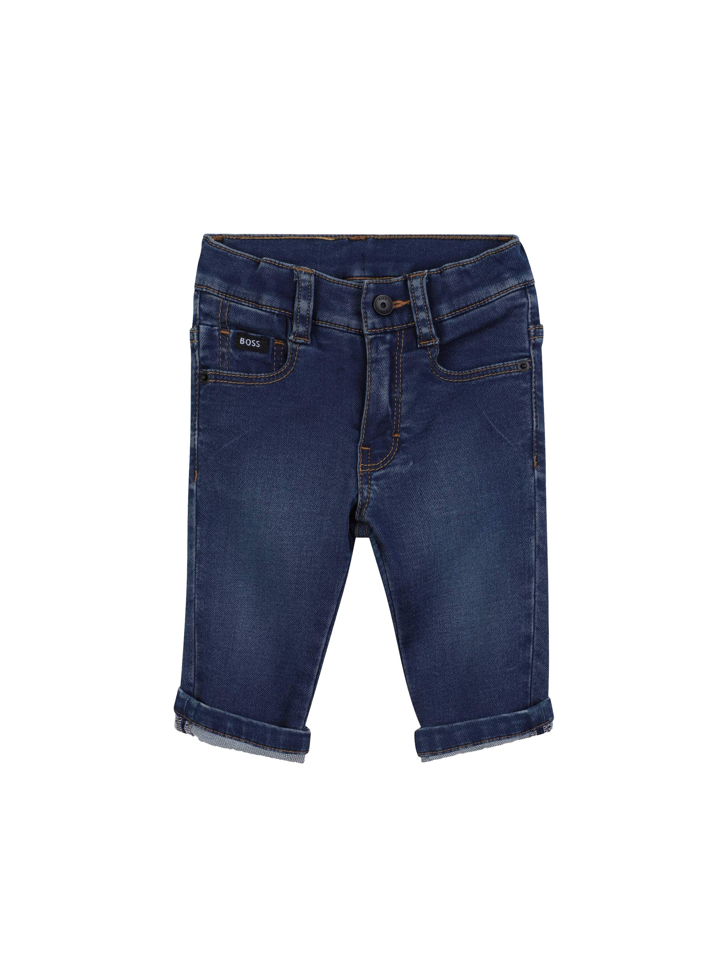 Jeans in denim di cotone stretch, con passanti in vita, vita elasticizzata, leggere sfumature effetto used, chiusura con bottone e zip nascosta, modello cinque tasche, piccolo patch con logo sul lato e patch con logo sul retro. Per un look casual e trendy. BOSS