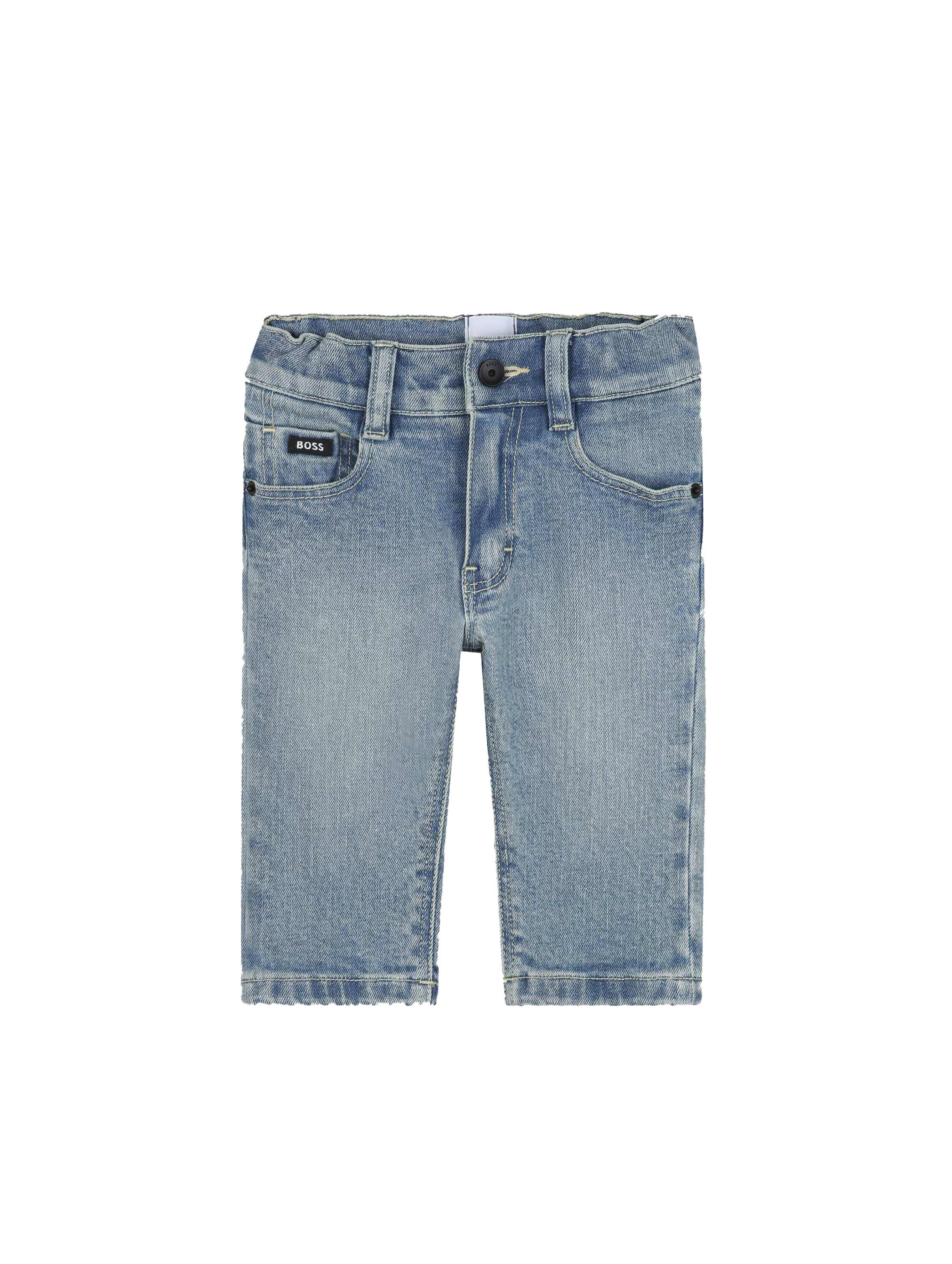 Jeans in denim di cotone stretch, dal lavaggio chiaro, con leggere sfumature effetto used, passanti in vita, vita elasticizzata, chiusura con bottone e zip nascosta, modello cinque tasche, piccolo patch con logo sul lato e patch con logo sul retro. Per un look casual e trendy. BOSS