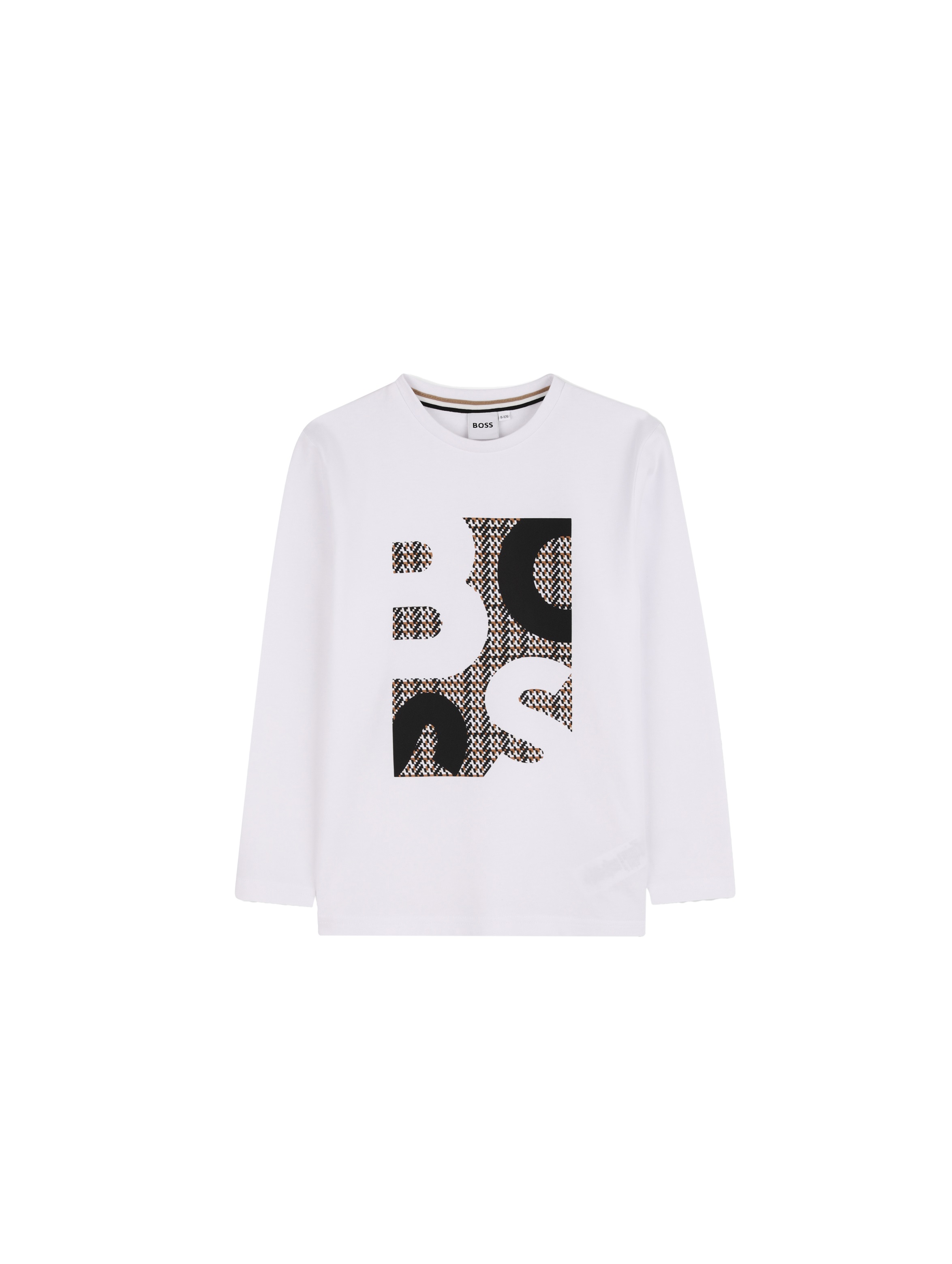 T-shirt a maniche lunghe, con scollo rotondo, a tinta unita e maxi logo lettering con grafica multicolor sul davanti. Per un look basic e casual. BOSS