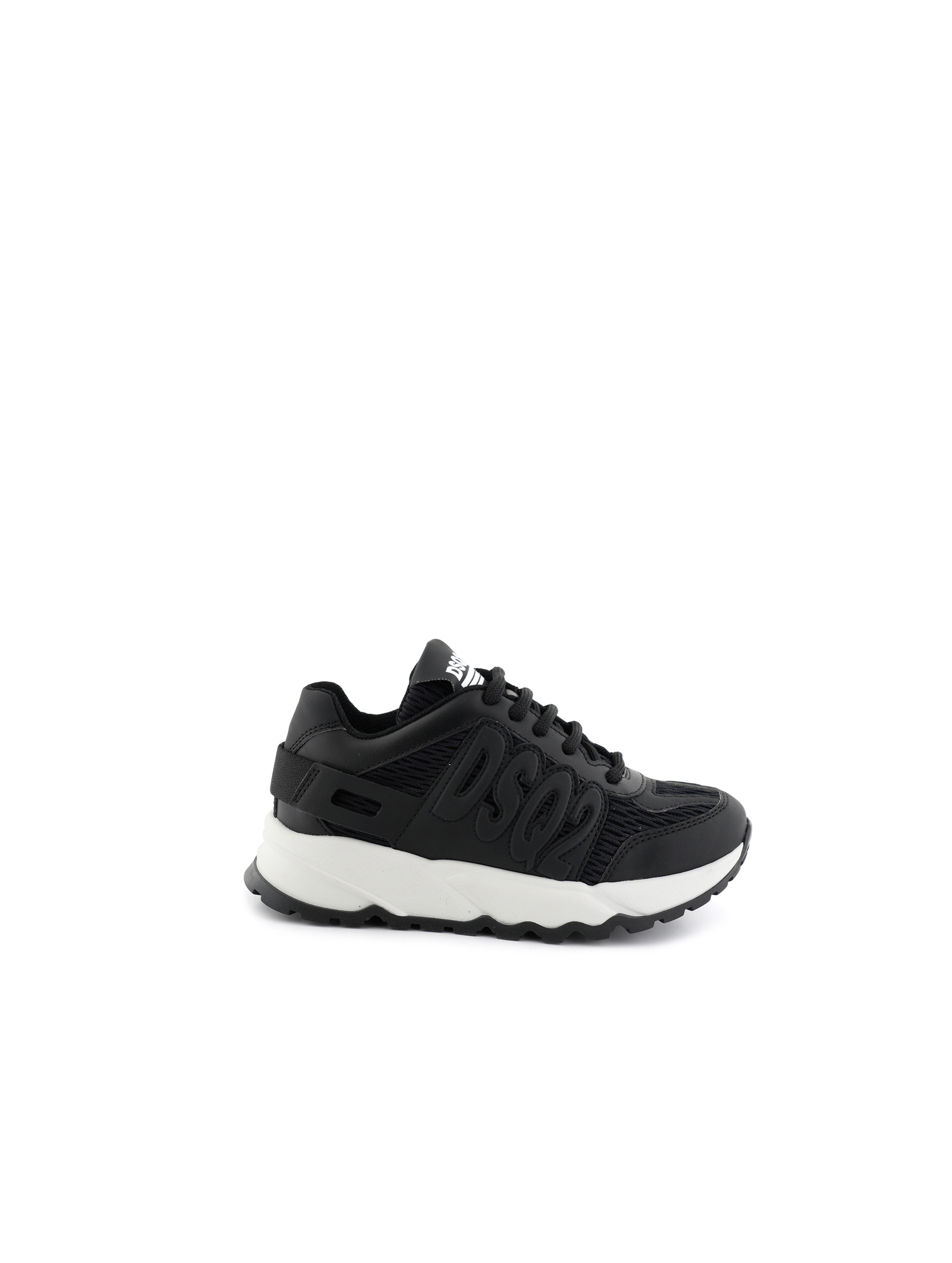 Sneakers a caviglia bassa in pelle e tessuto traspirante, con chiusura a lacci tubolari, suola in gomma con battistrada dentellato, linguetta logate e patch con logo posto sul lato esterno. Per un look casual e trendy. DSQUARED2