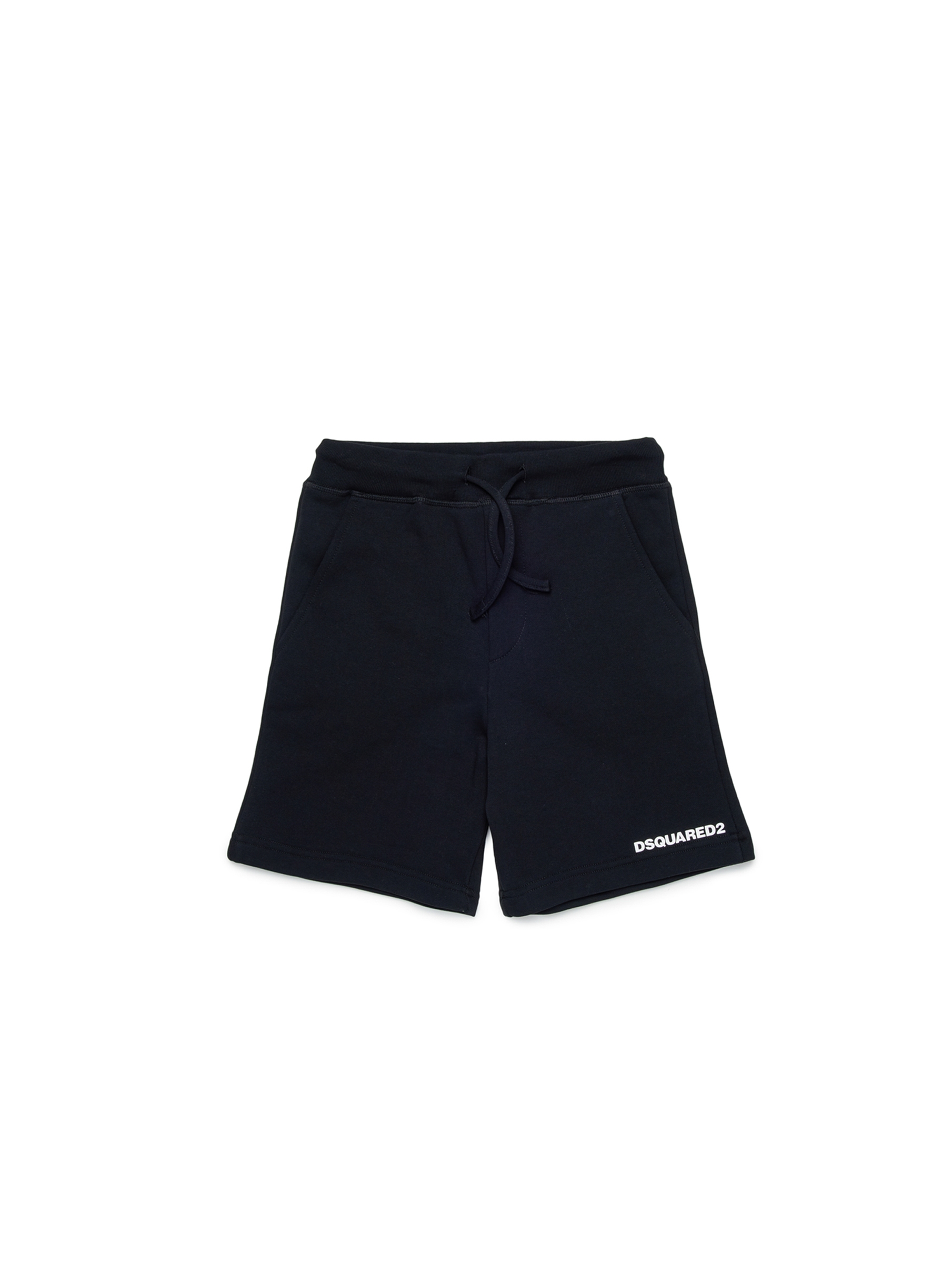 Bermuda in felpa a tinta unita, con vita elasticizzata, coulisse in vita, tasche ai lati e piccolo logo a contrasto sulla gamba sinistra. Per un look casual e trendy. DSQUARED2