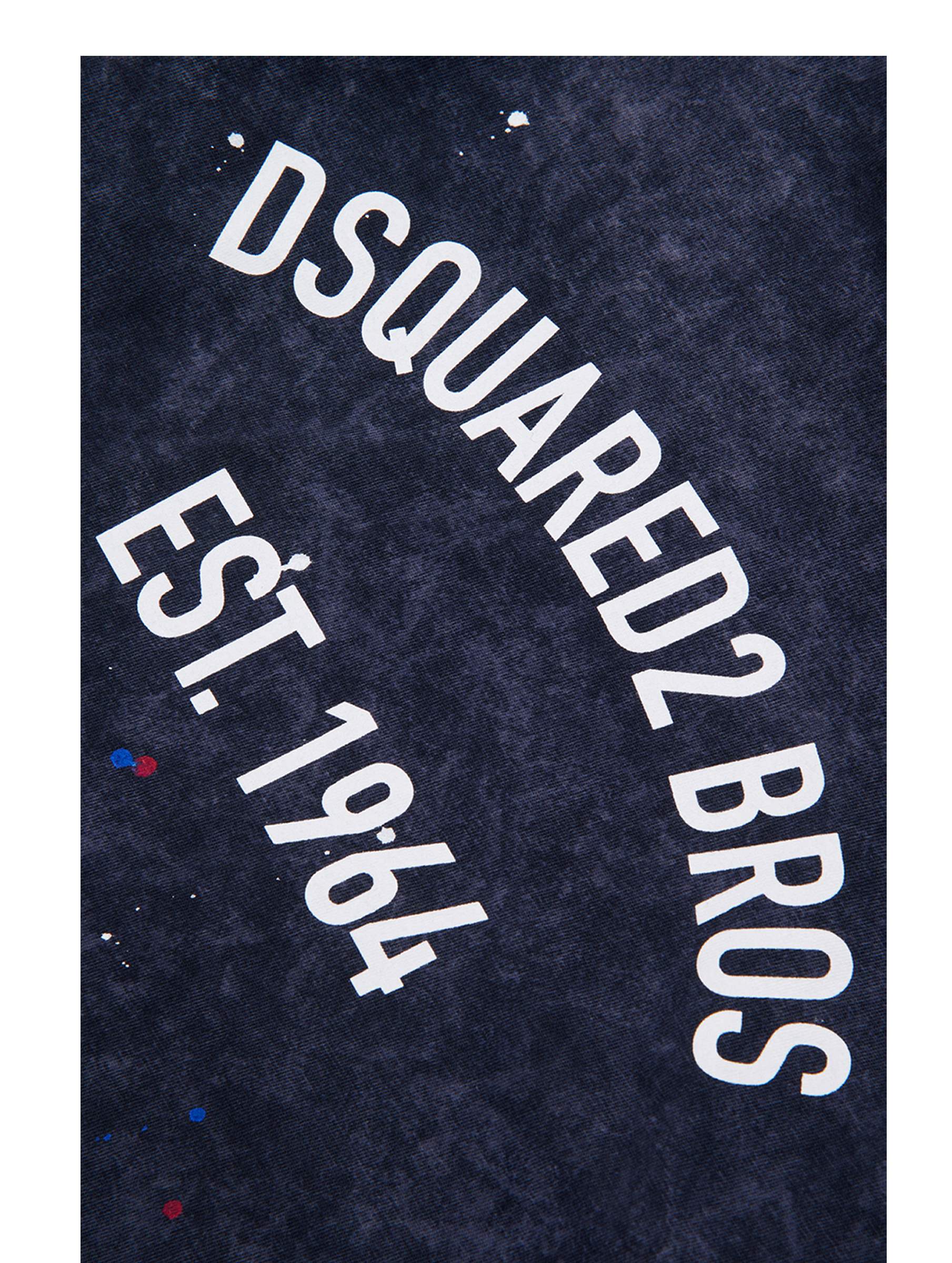 T-shirt a maniche corte, con scollo rotondo, a tinta unita sfumata, dalla vestibilità comoda, con maxi logo a contrasto sul davanti e dal design con piccoli schizzi di pittura. Per un look trendy e cool. DSQUARED2