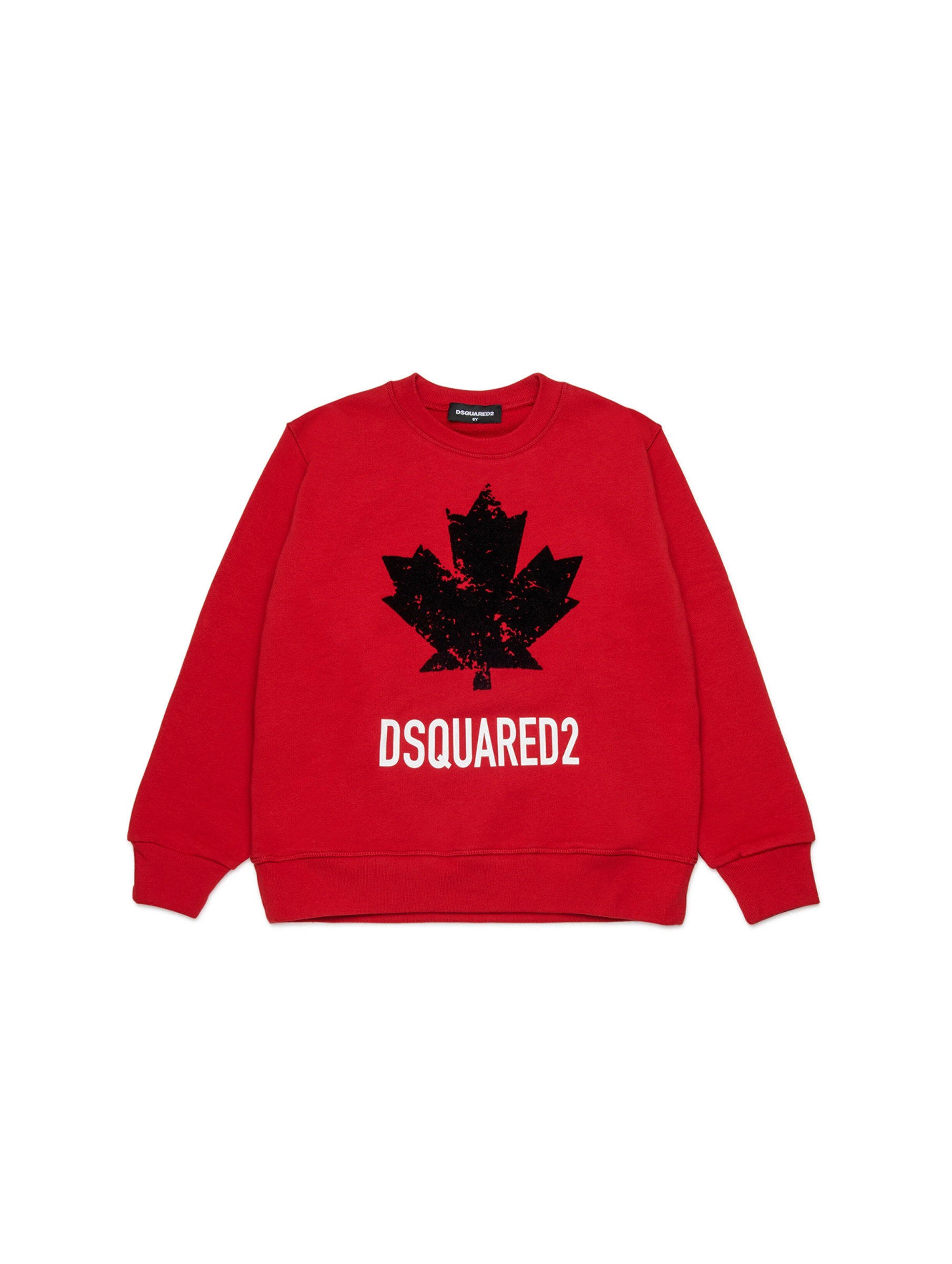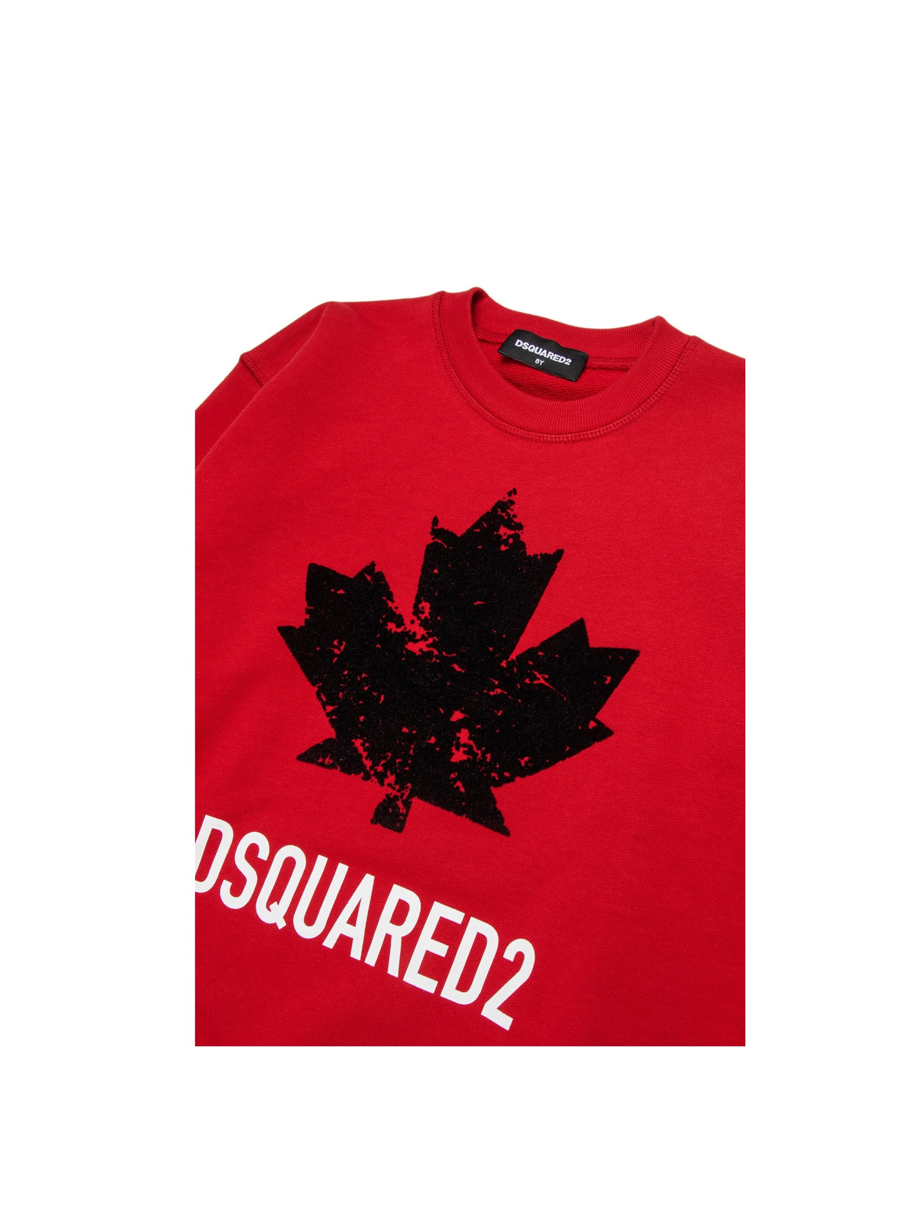 Felpa girocollo, a tinta unita, con stampa foglia d'acero ad effetto distressed e scritta logo a contrasto. Stay cool. DSQUARED2