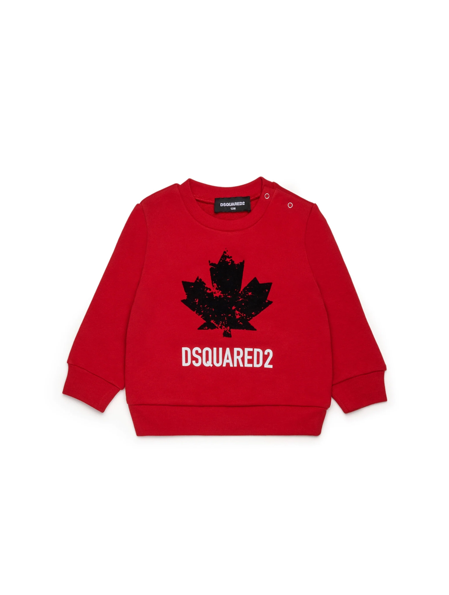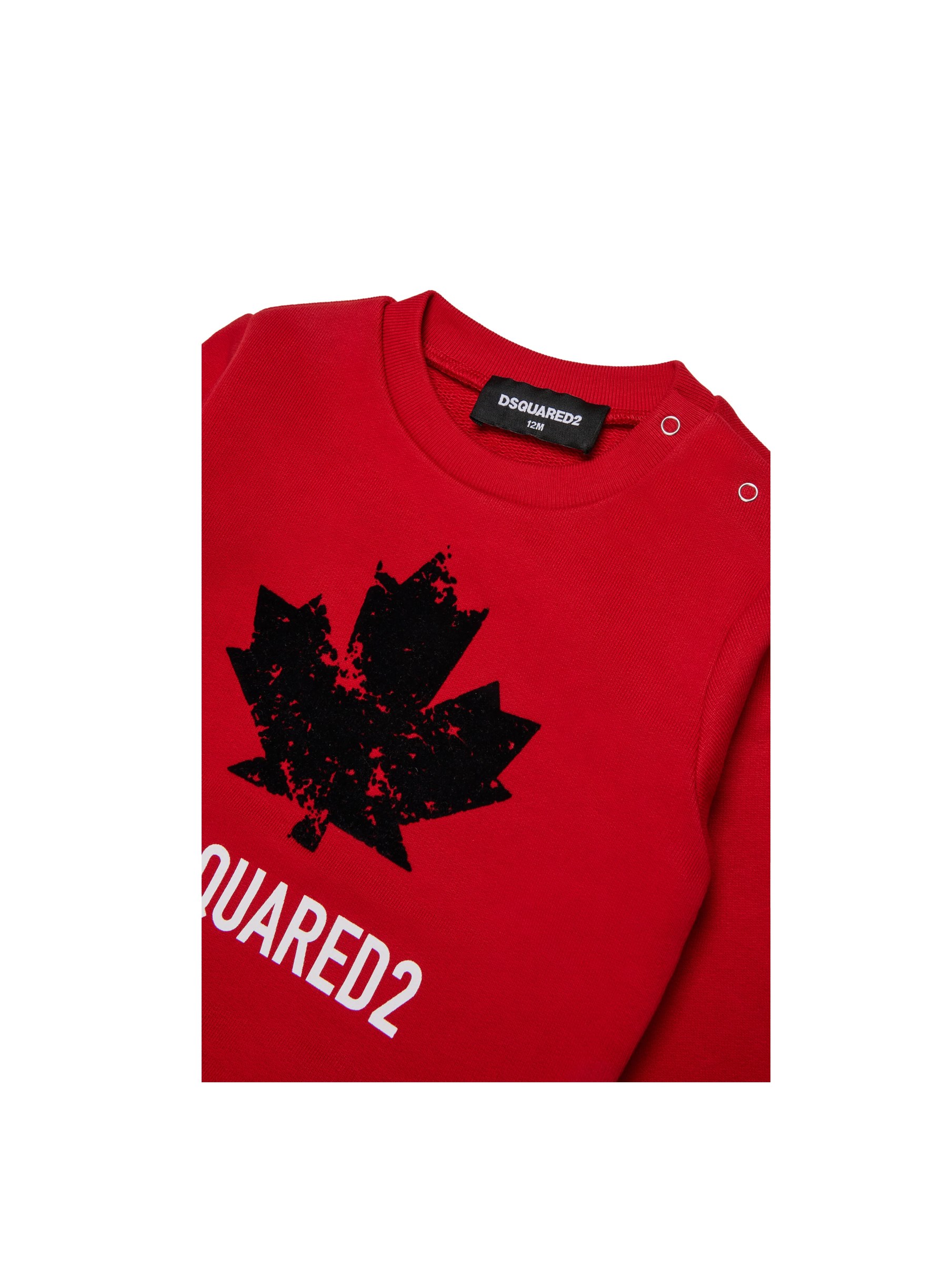 Felpa girocollo a maniche lunghe con logo Sport dove la Foglia d'Acero canadese, simbolo iconico dell'universo Dsquared2, viene reinterpretata con una finitura floccata dall'effetto rovinato. Un capo che coniuga stile e praticità. DSQUARED2