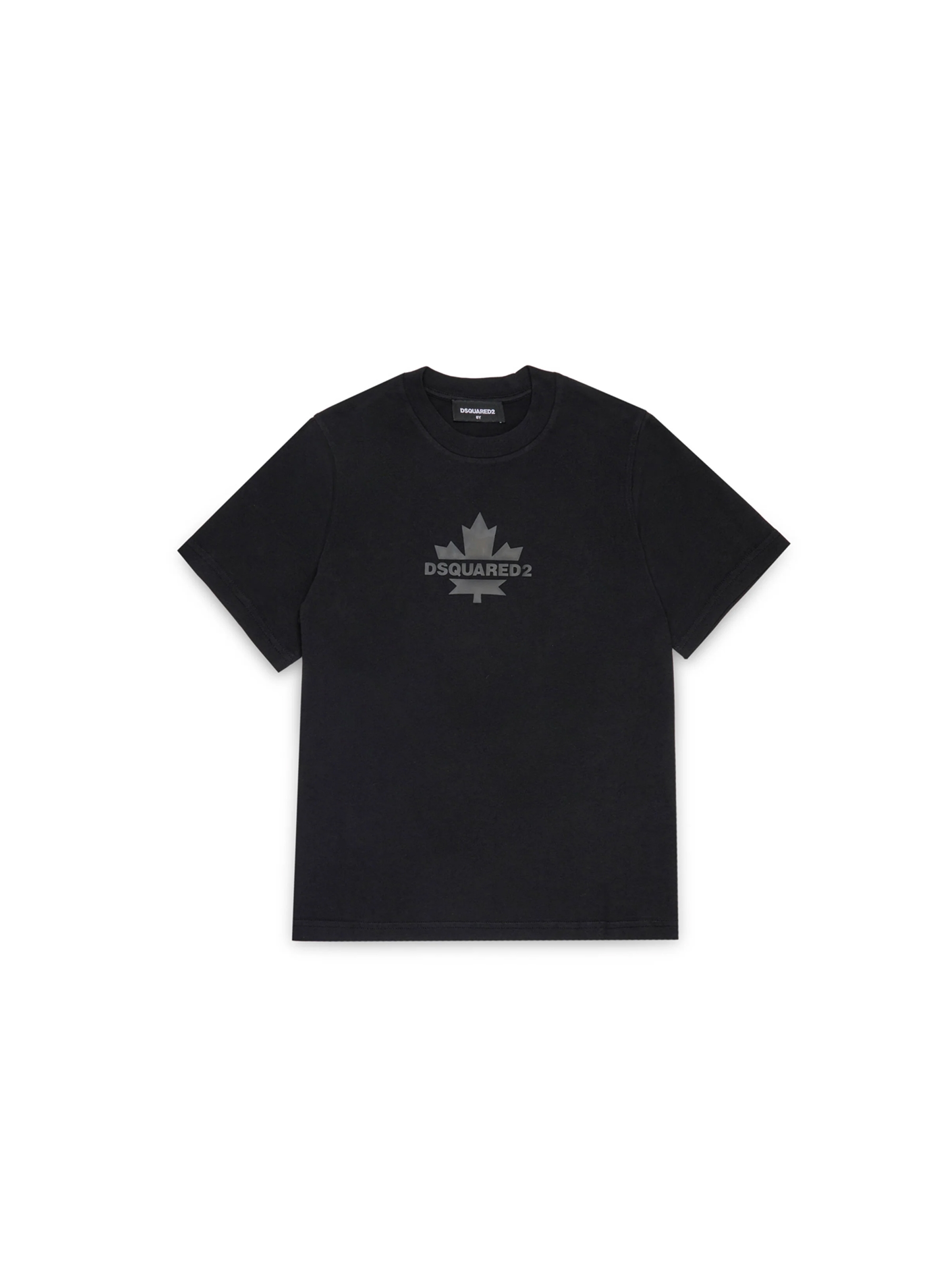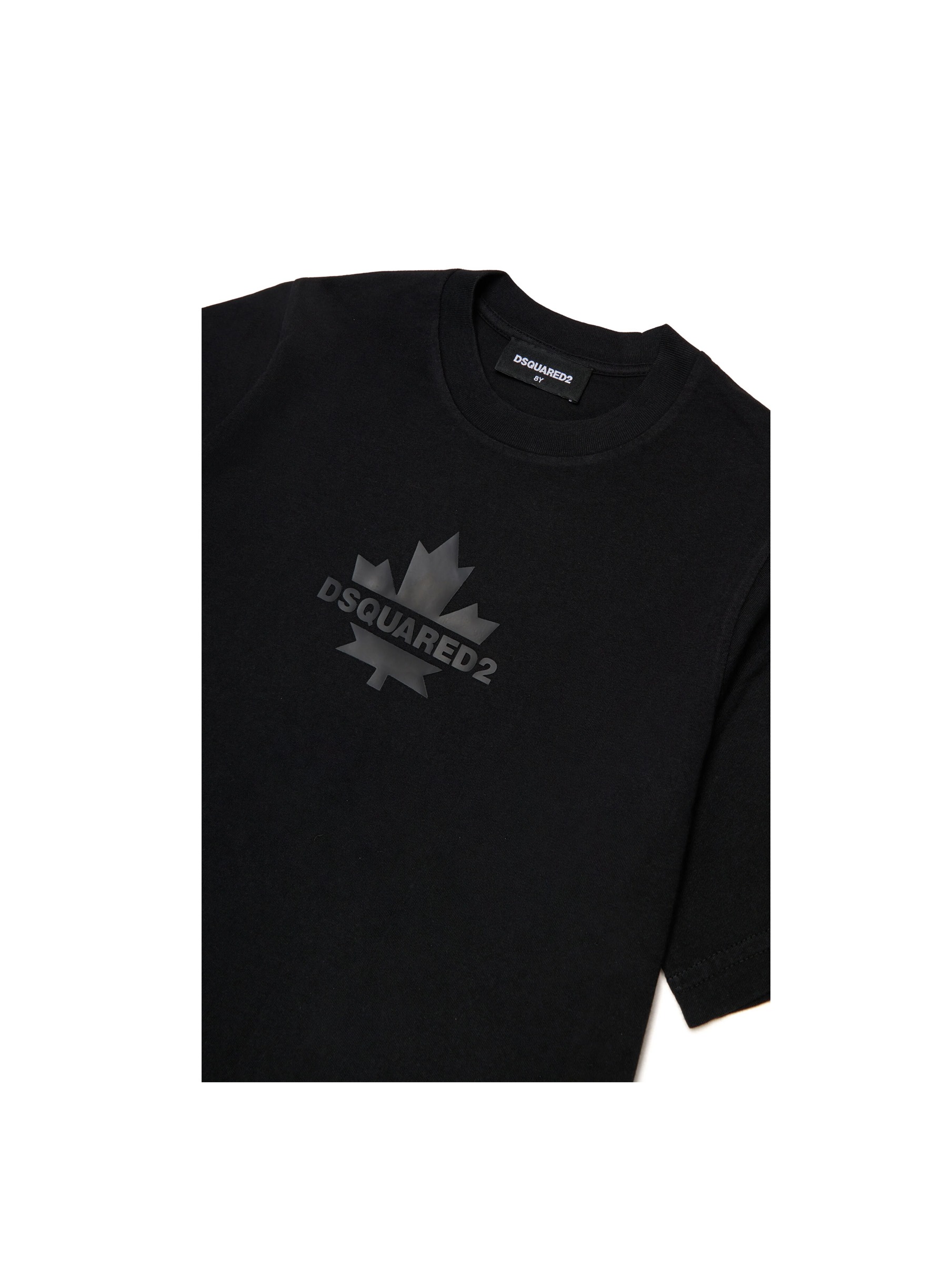 T-shirt in jersey a maniche corte, con scollo rotondo, a tinta unita e logo lettering con iconica foglia d'acero a contrasto sul fronte. Per un look basic e casual. DSQUARED2