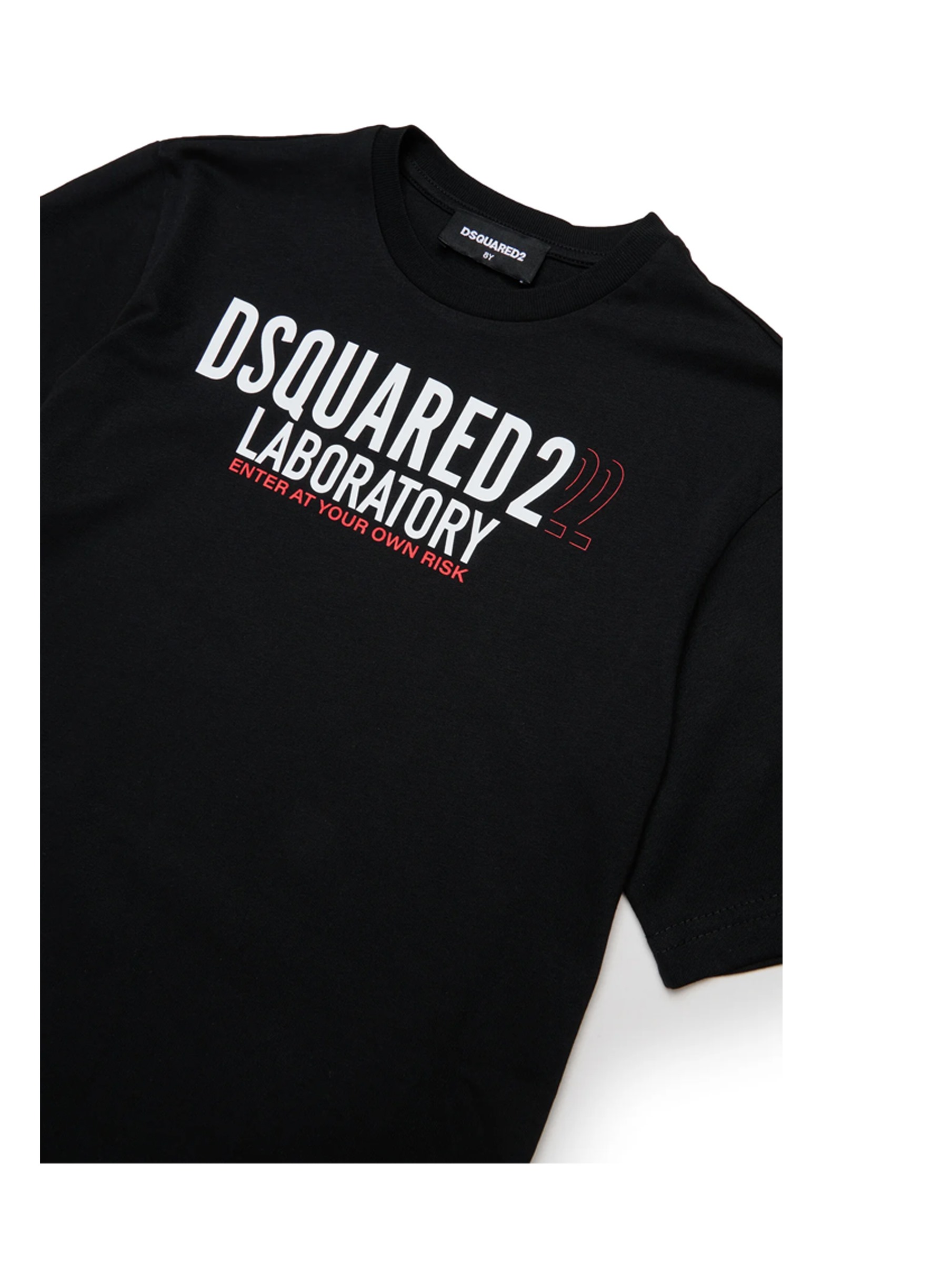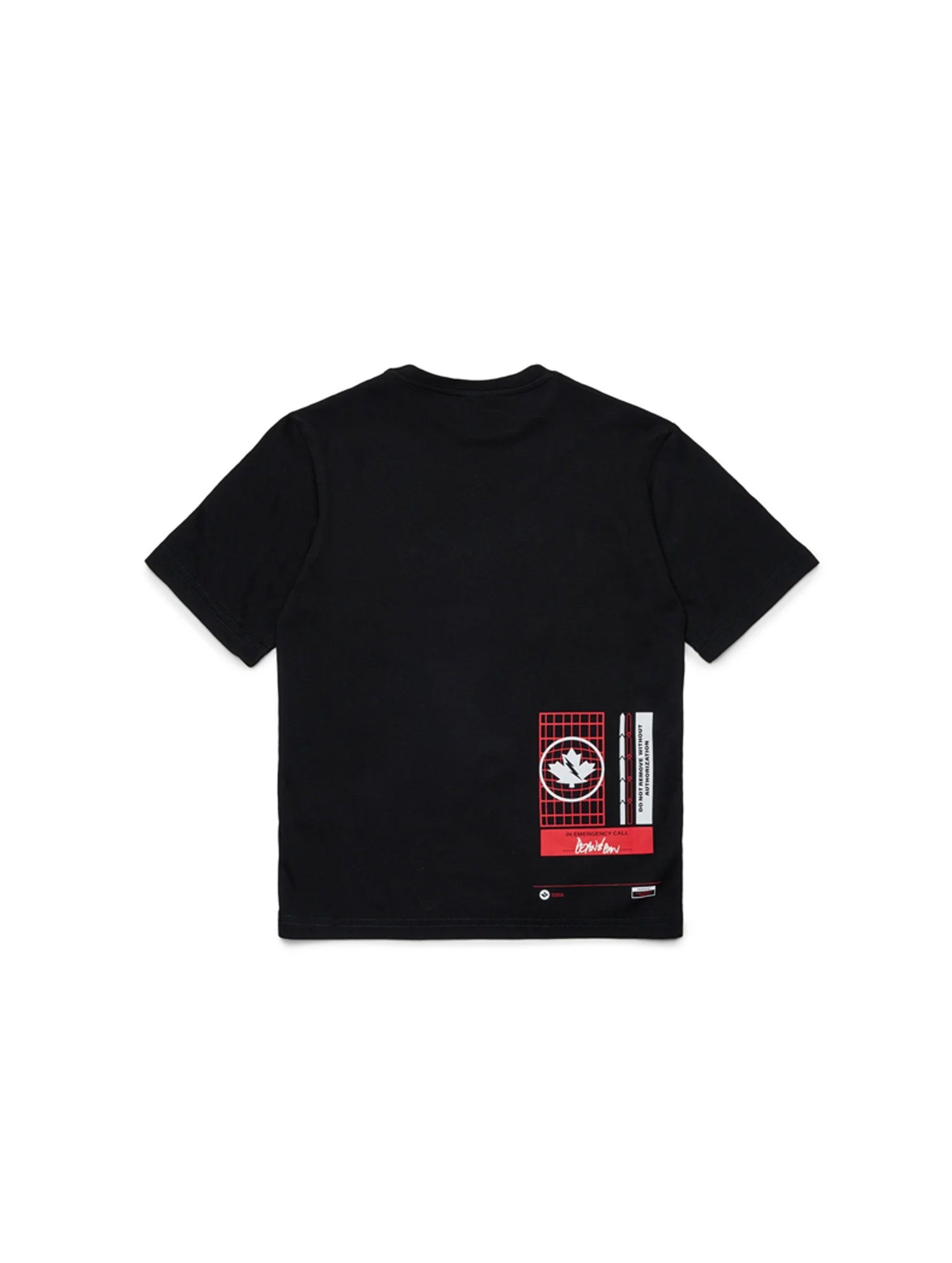 T-shirt girocollo, a manica corta, tinta unita, con maxi scritta logo a contrasto sul fronte e stampa scritta/stampa logo a contrasto sul retro. Casual e cool. DSQUARED2