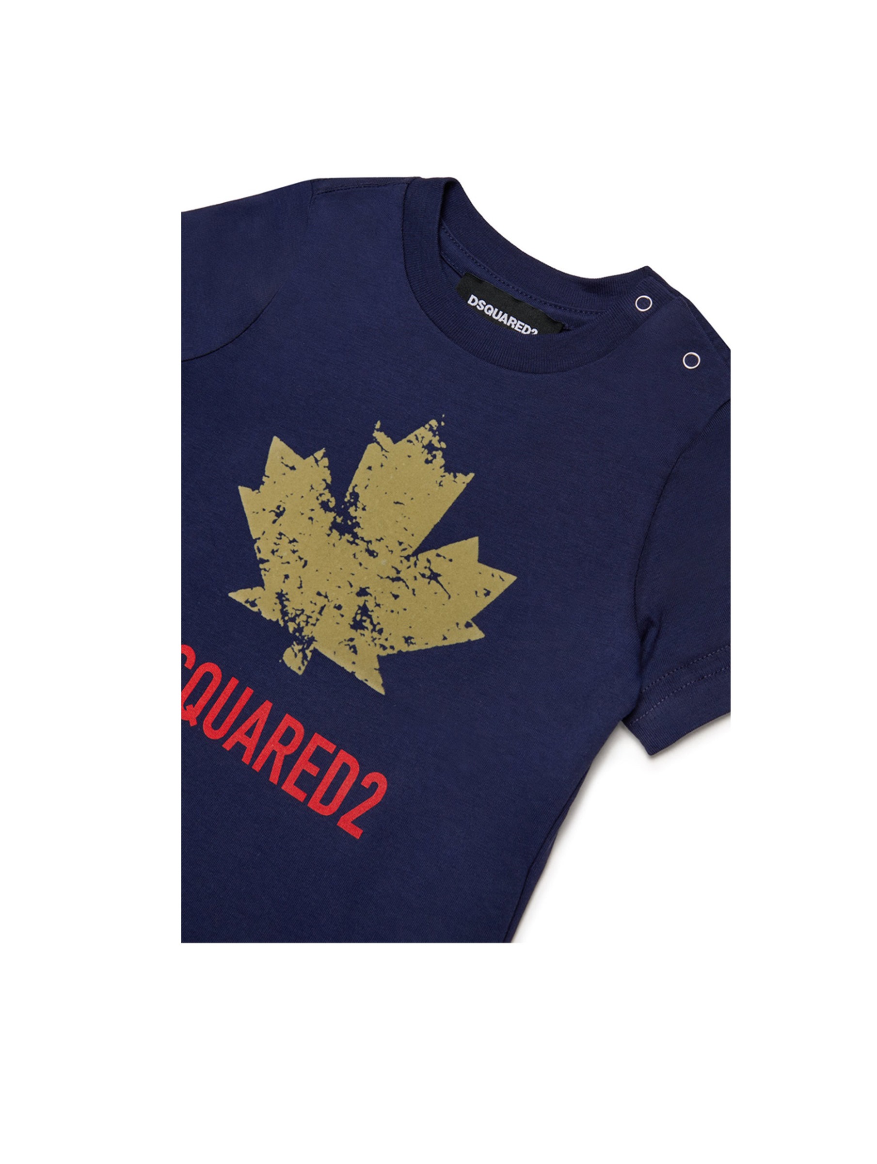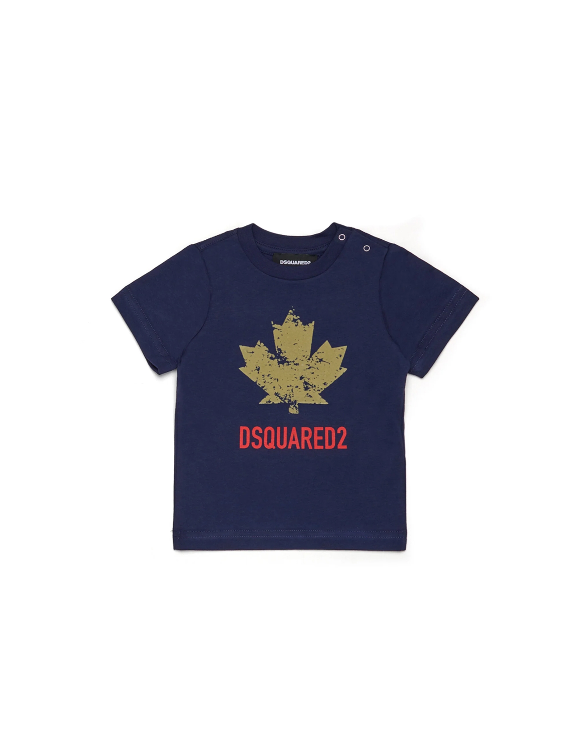 T-shirt girocollo, a manica corta, tinta unita, con maxi stampa logo e scritta logo centrale sul fronte. Stay cool. DSQUARED2