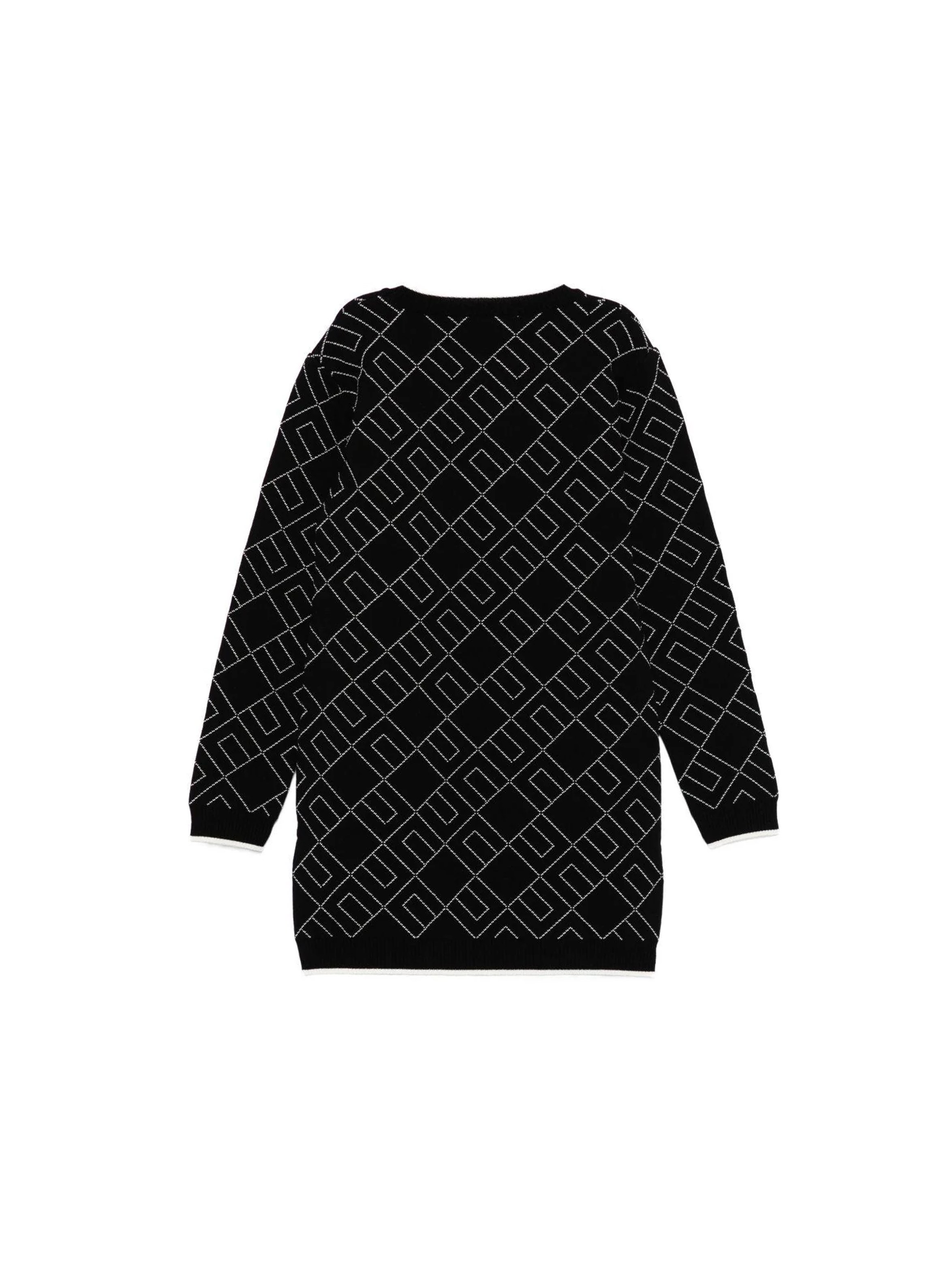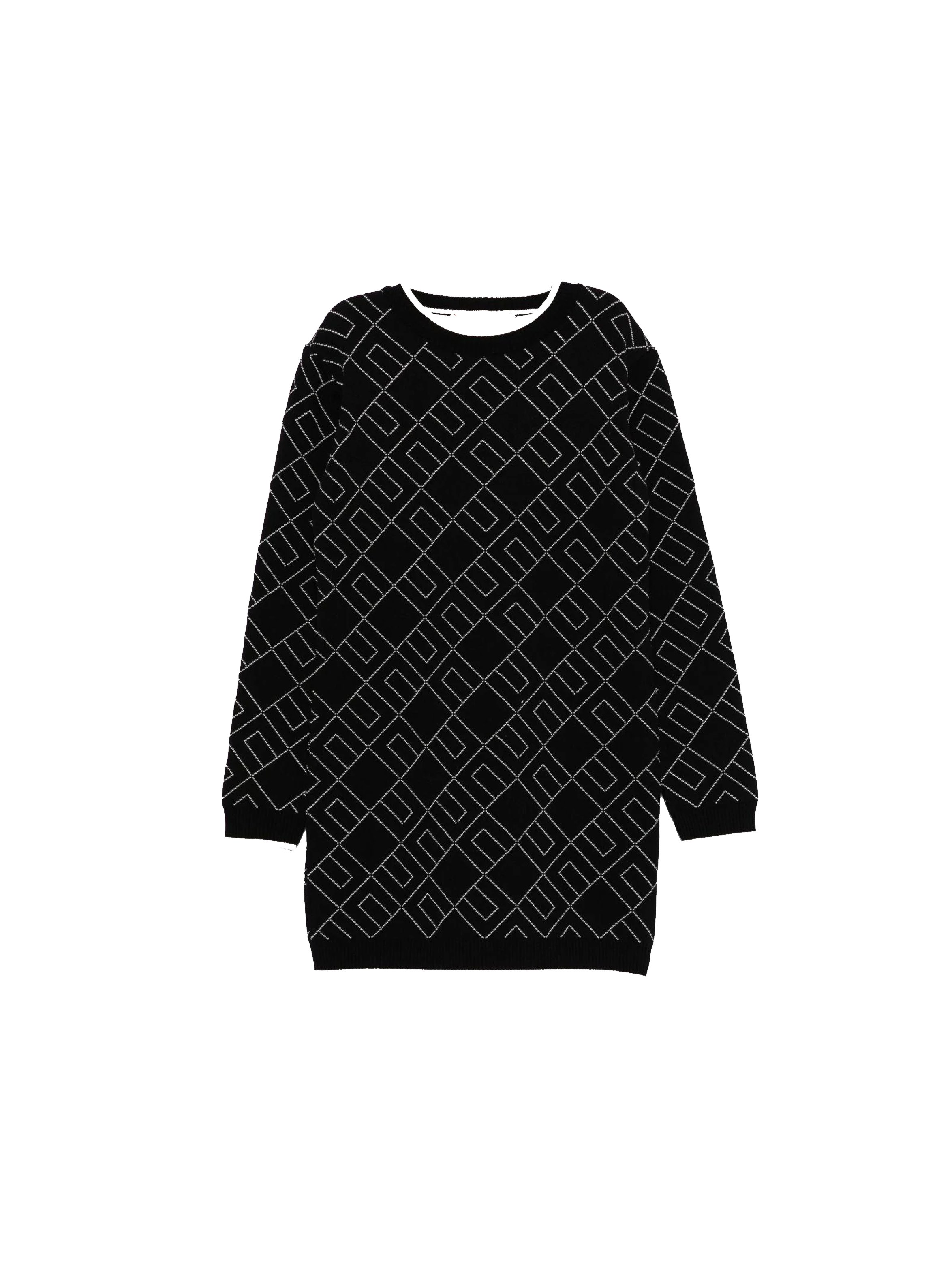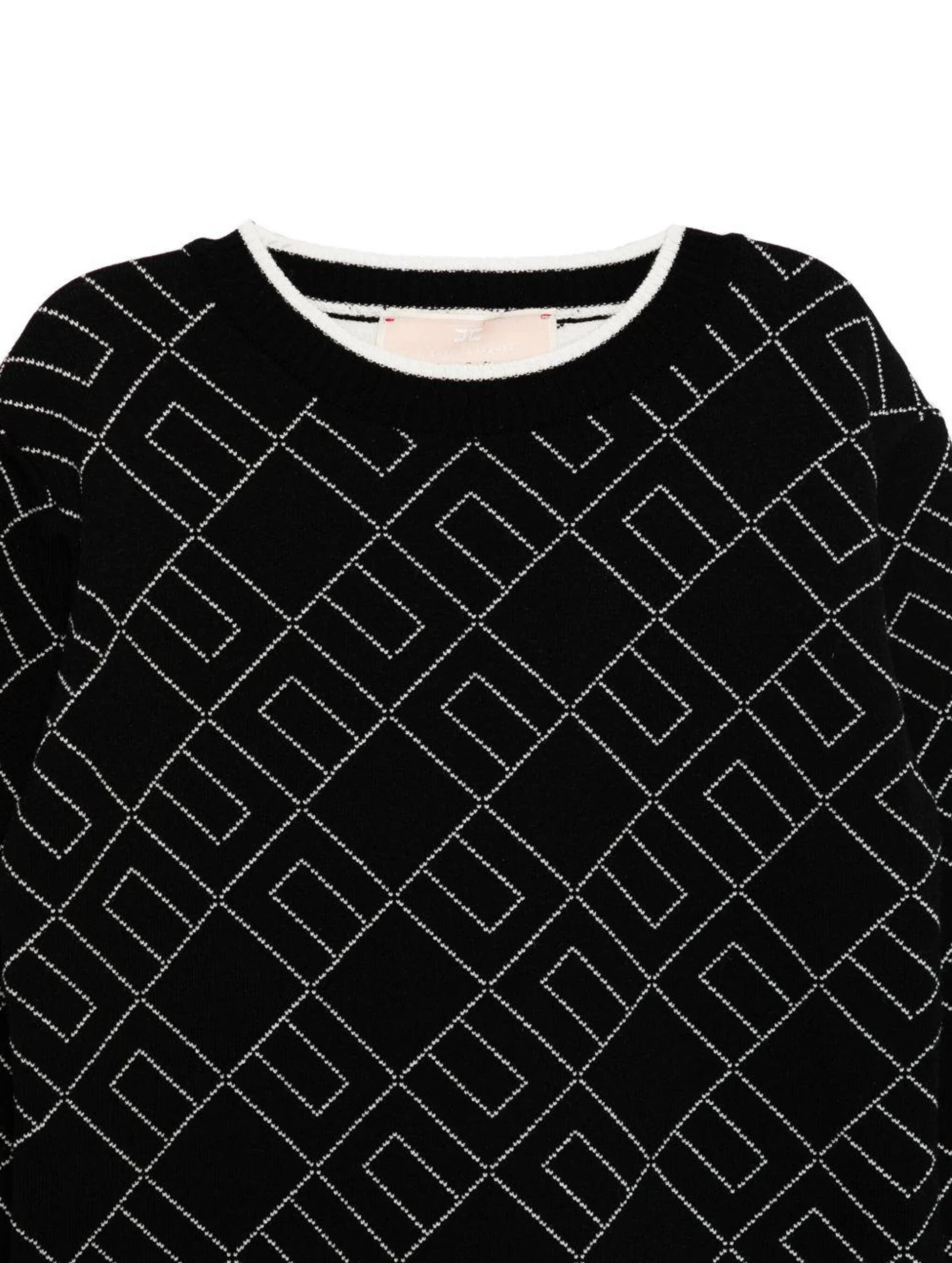 Abito maglione in tricot a maniche lunghe, con scollo rotondo, a tinta unita, con bordi e polsini a costine, profili a contrasto, e monogramma del logo jacquard a contrasto all over, dalla vestibilità comoda. Per un look casual chic. ELISABETTA FRANCHI