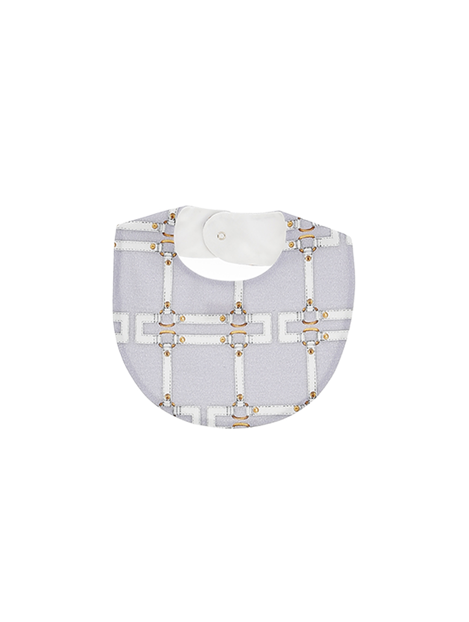 Bavetta in confortevole jersey, con chiusura con bottoncino automatico e stampa di cinturini con doppia C stampati all over. Perfetta come idea regalo e per un tocco raffinato al tuo corredino. ELISABETTA FRANCHI