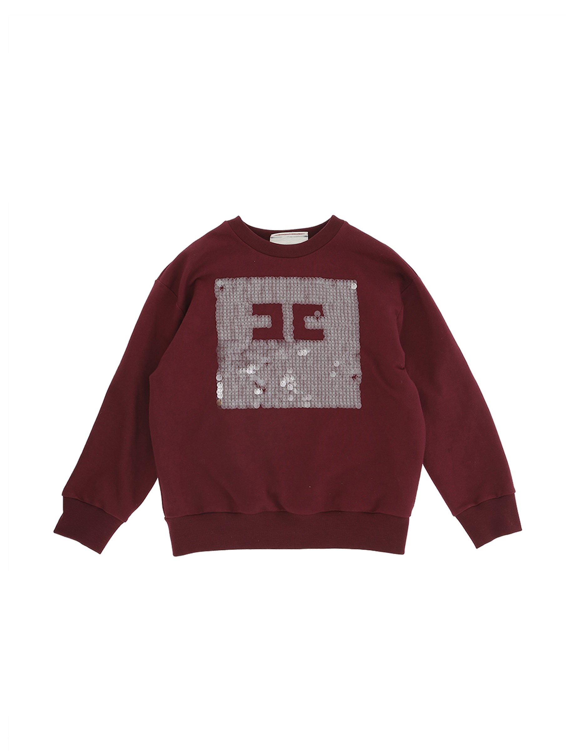 Felpa girocollo a maniche lunghe, con bordi e polsini a costine, a tinta unita e maxi riquadro con paillettes a contrasto e monogramma del logo sul davanti. Per un look casual e chic. ELISABETTA FRANCHI