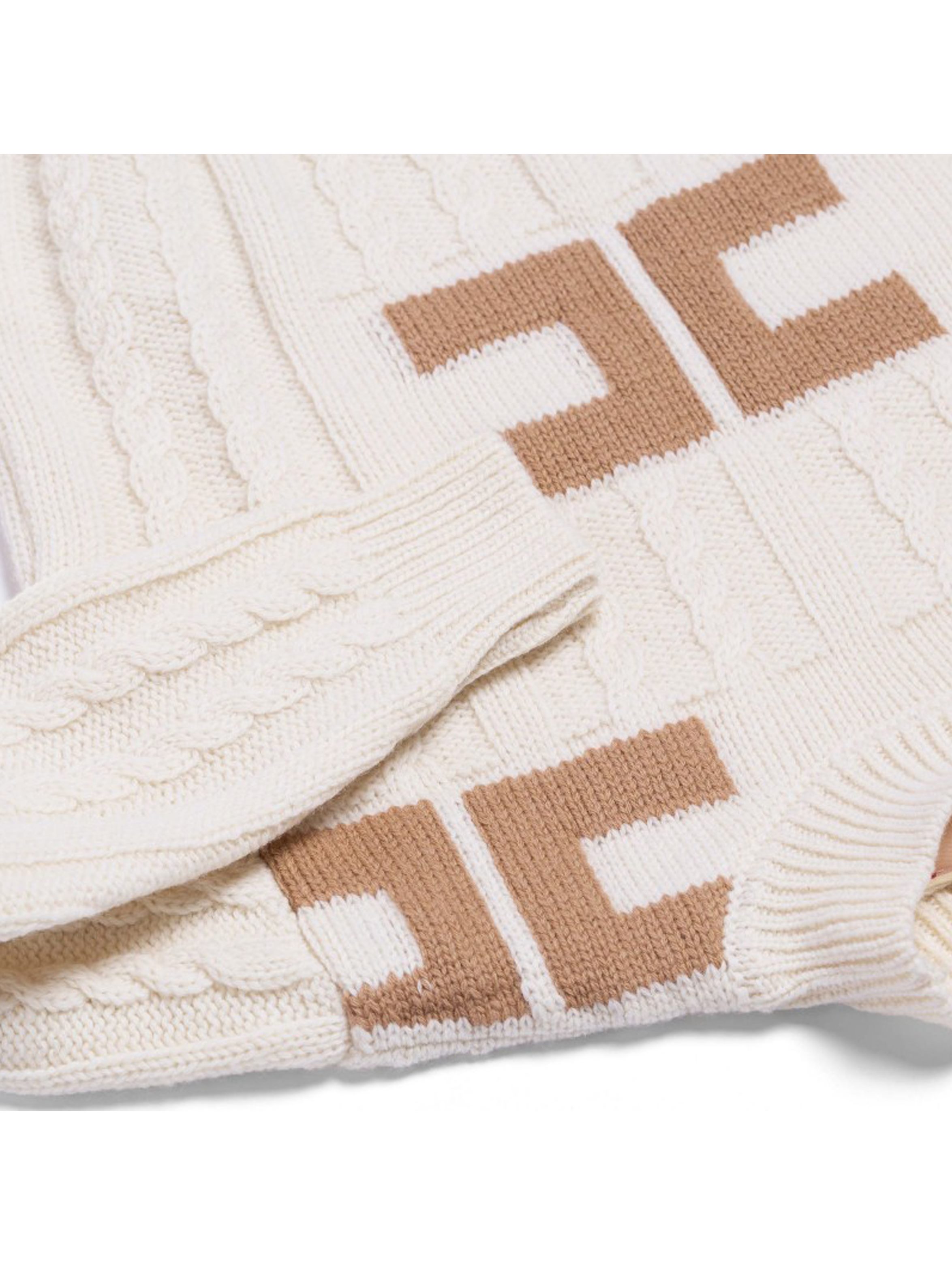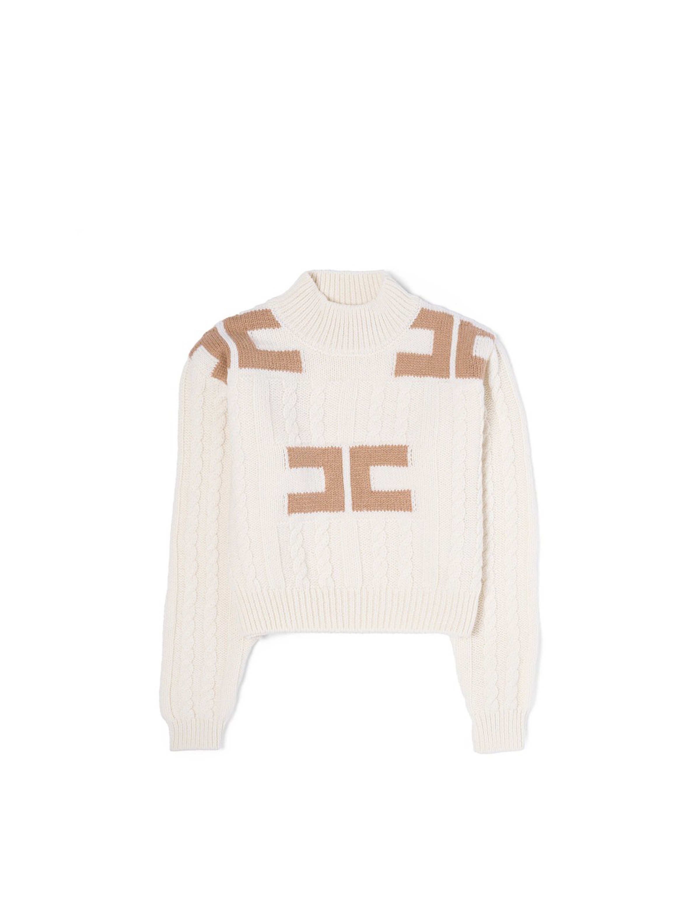 Maglia tricot con lavorazione a trecce, a tinta unita, con collo alto, bordi e polsini a costine e logo CC jacquard a contrasto sulle spalle e sul davanti. Per un look casual e trendy. ELISABETTA FRANCHI