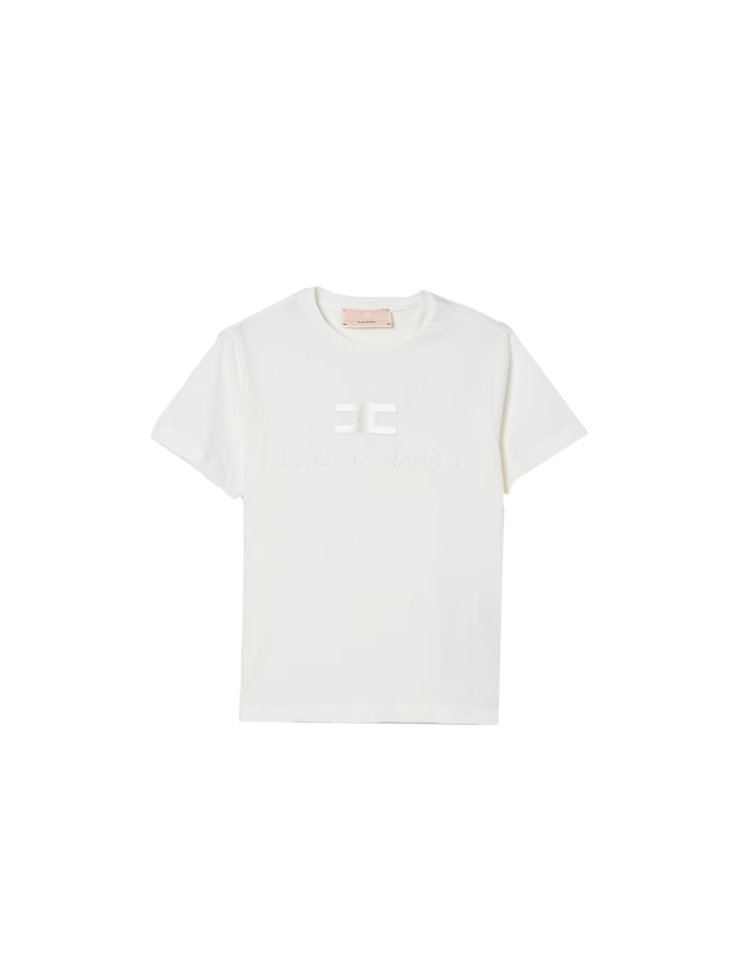 T-shirt a maniche corte, con scollo rotondo, a tinta unita, con lettering del logo e logo CC ricamati in tinta sul fronte. Per un look trendy e chic. ELISABETTA FRANCHI