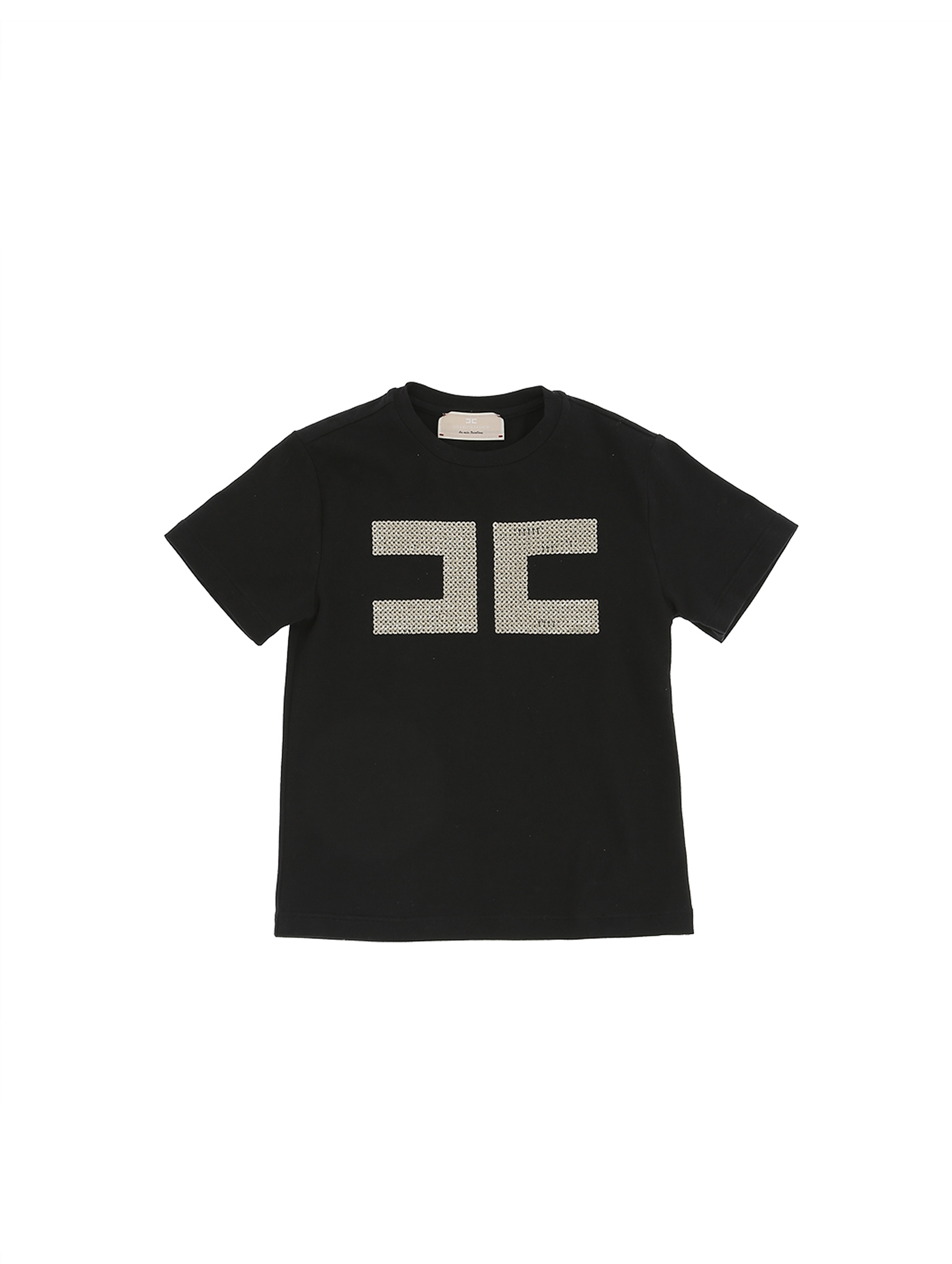 T-shirt a maniche corte, con scollo rotondo, a tinta unita, con maxi logo doppia C in paillettes ricamato sul fronte per un tocco scintillante. Per un look basic e casual. ELISABETTA FRANCHI