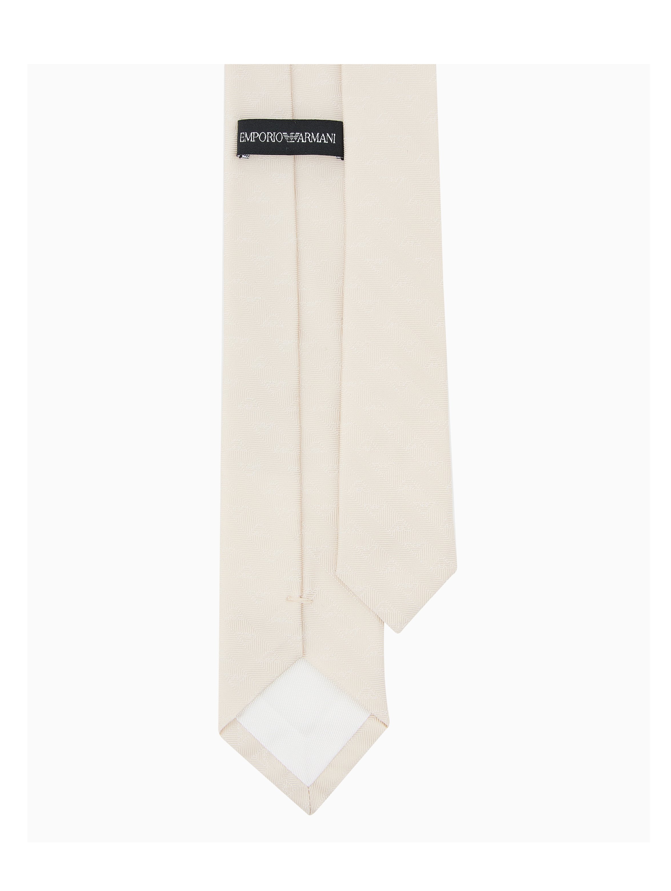 Cravatta realizzata in pregiata seta, a tinta unita, con iconico logo aquila all over in lavorazione jacquard. Un accessorio che incarna l'eleganza e la raffinatezza. EMPORIO ARMANI