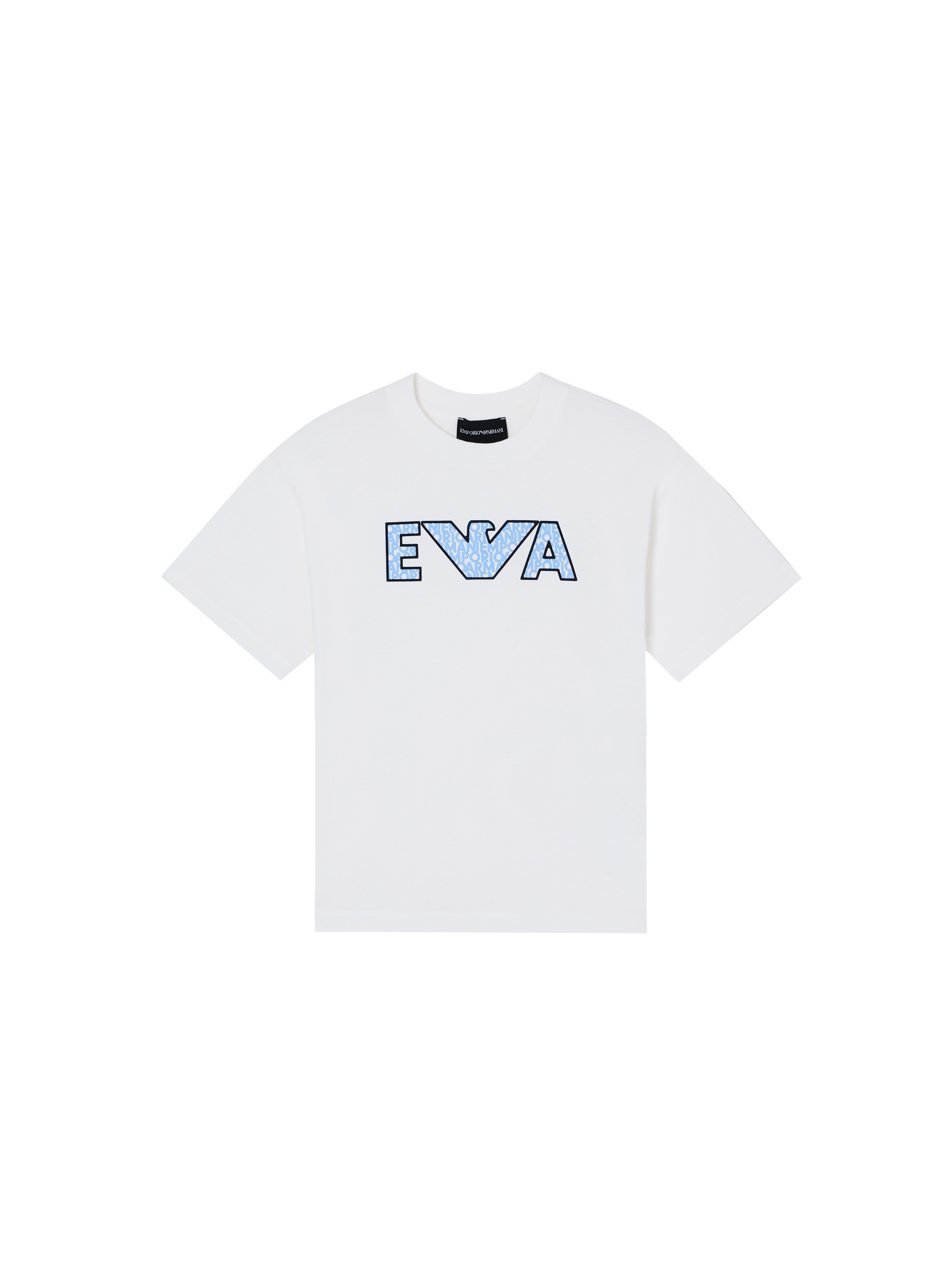 T-shirt a maniche corte, con scollo rotondo, a tinta unita, con maxi logo EA e iconica aquila ricamati sul fronte con all'interno logo stampato a contrasto. Per un look casual e trendy. EMPORIO ARMANI
