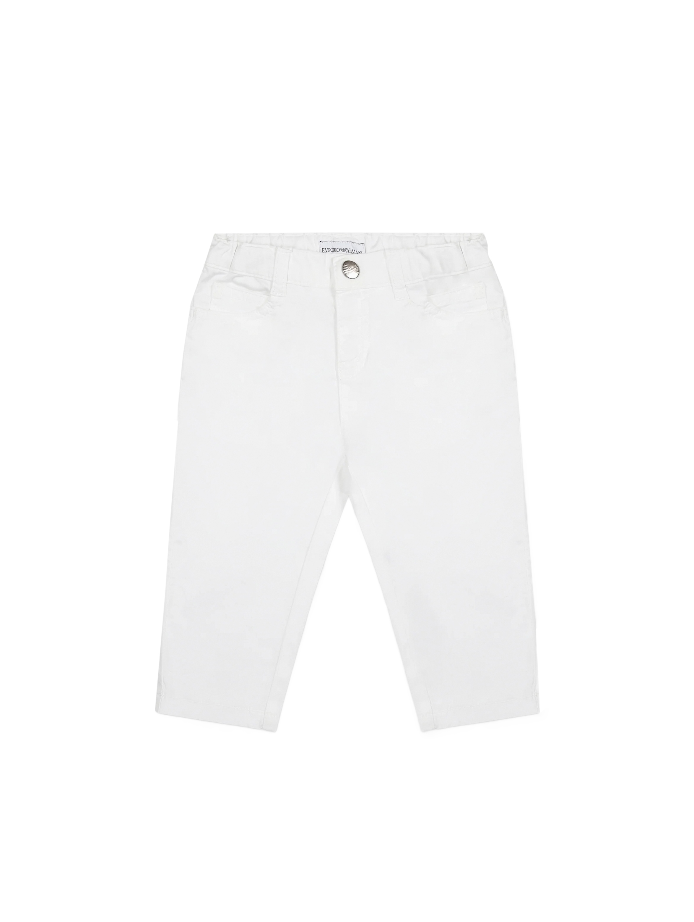 Pantalone modello 5 tasche, a tinta unita, con vita elasticizzata sul retro, passanti in vita, chiusura con zip e bottone centrale logato e logo EA sul retro. Per un look casual e basic. EMPORIO ARMANI