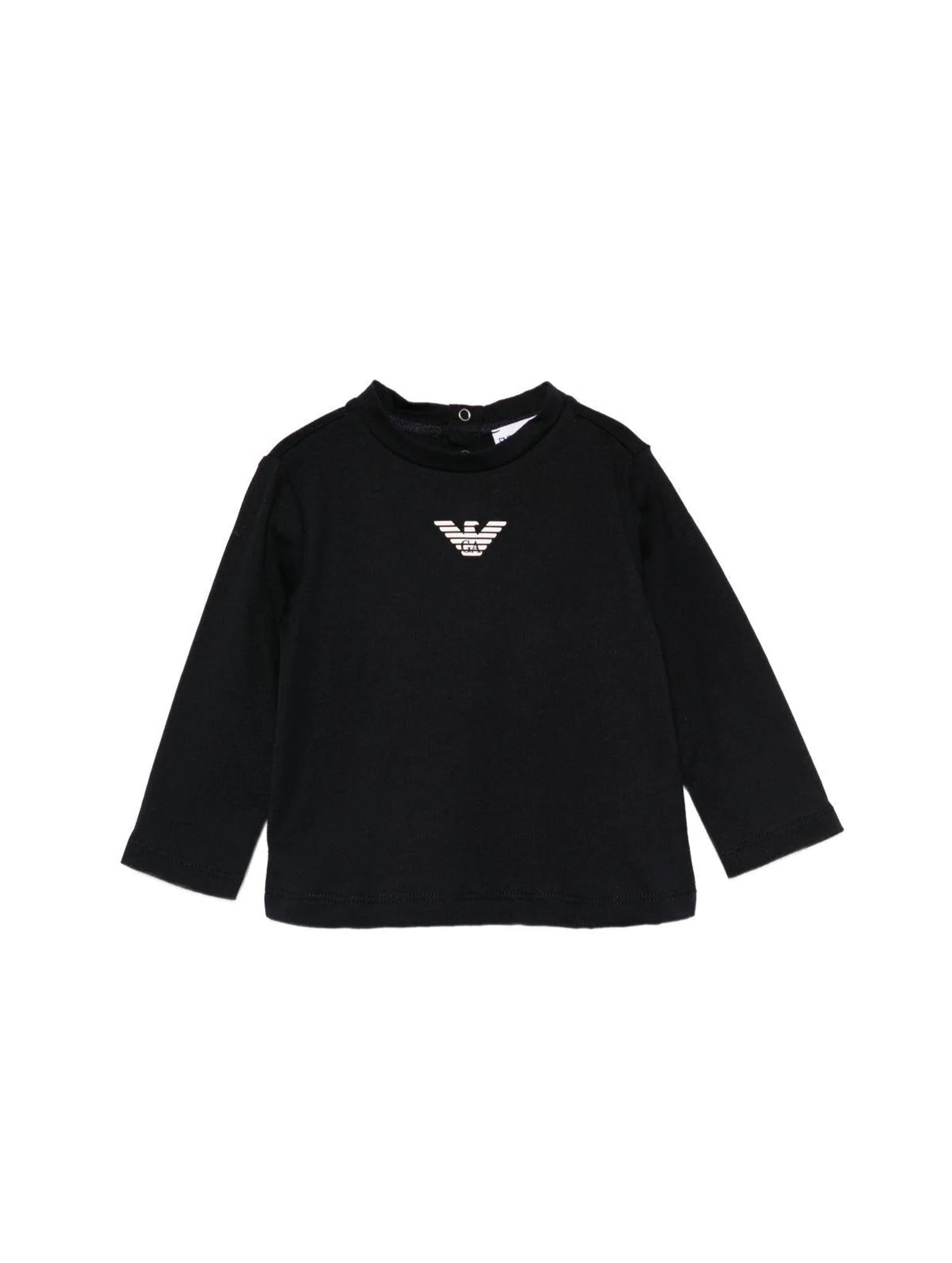 T-shirt a maniche lunghe, con scollo rotondo, a tinta unita, apertura con bottoni automatici sul retro e iconica aquila a contrasto sul fronte. Per un look basic e casual. EMPORIO ARMANI