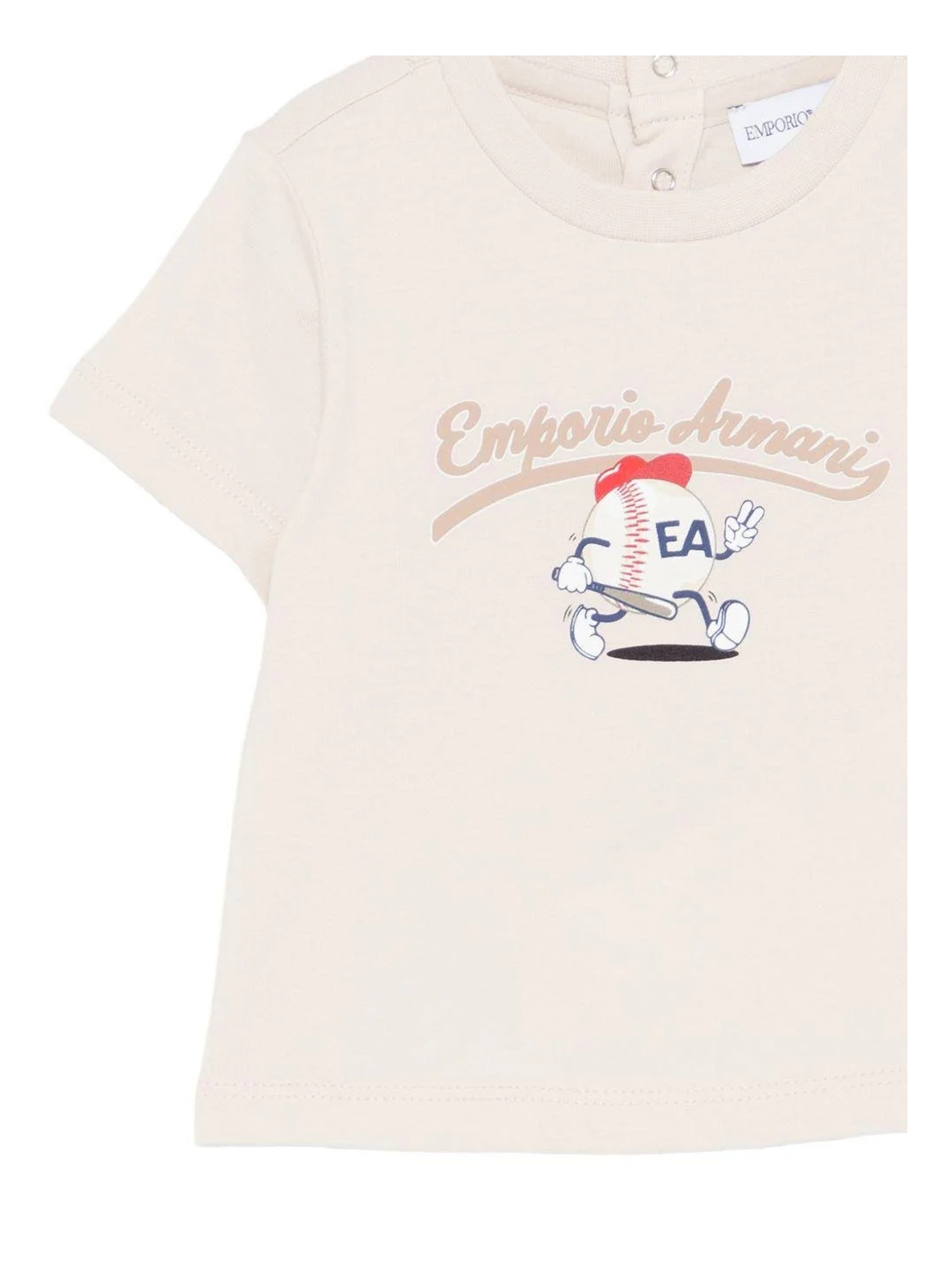 T-shirt a maniche corte, con scollo rotondo, a tinta unita, con apertura con bottoncini sul retro e logo lettering sul davanti con stampa grafica baseball. Per un look casual e trendy. EMPORIO ARMANI