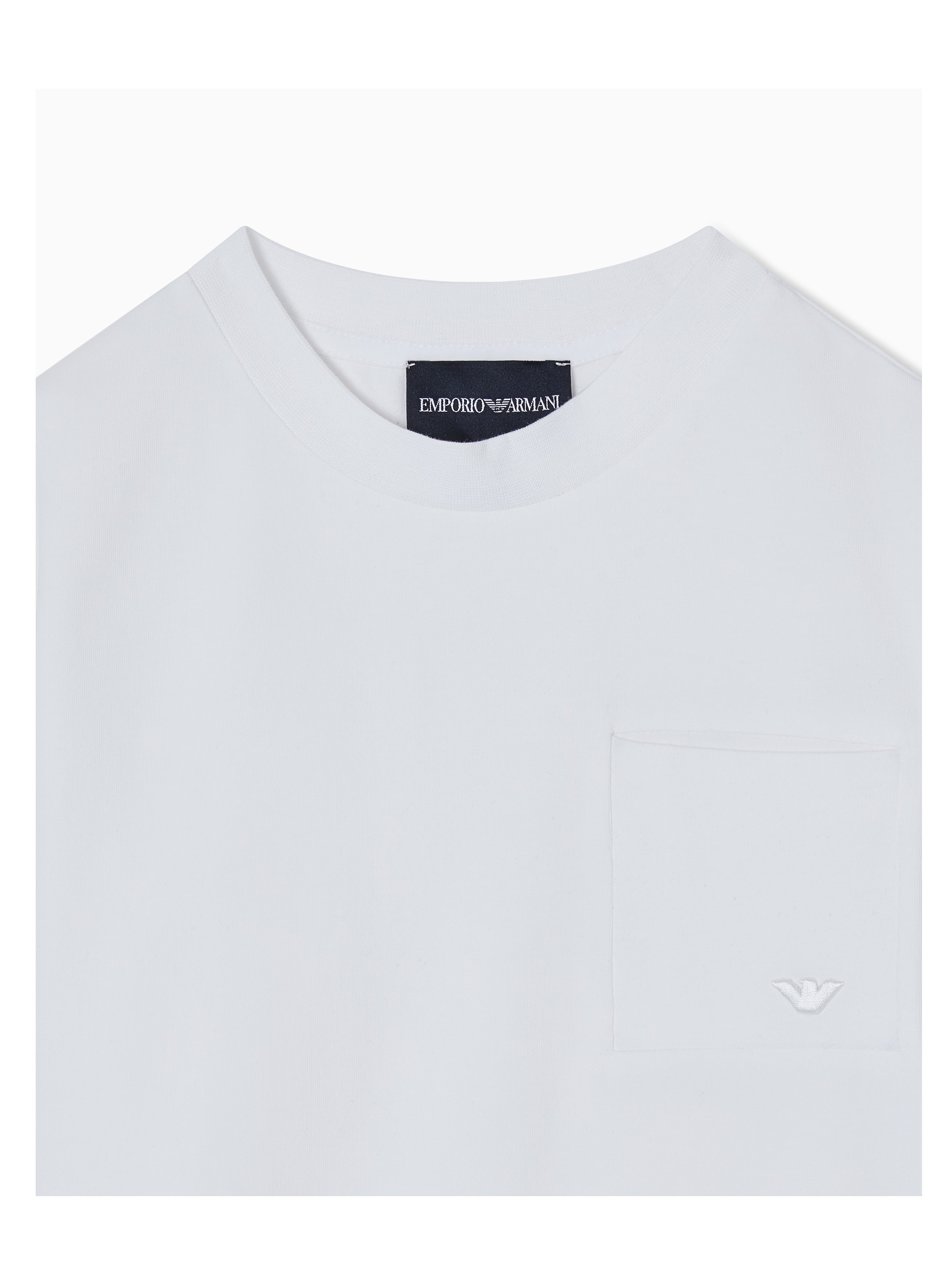 T-shirt a maniche corte, con scollo rotondo, a tinta unita, con taschino al petto e piccolo logo aquila ricamato in tinta sul taschino. Per un look casual e trendy. EMPORIO ARMANI