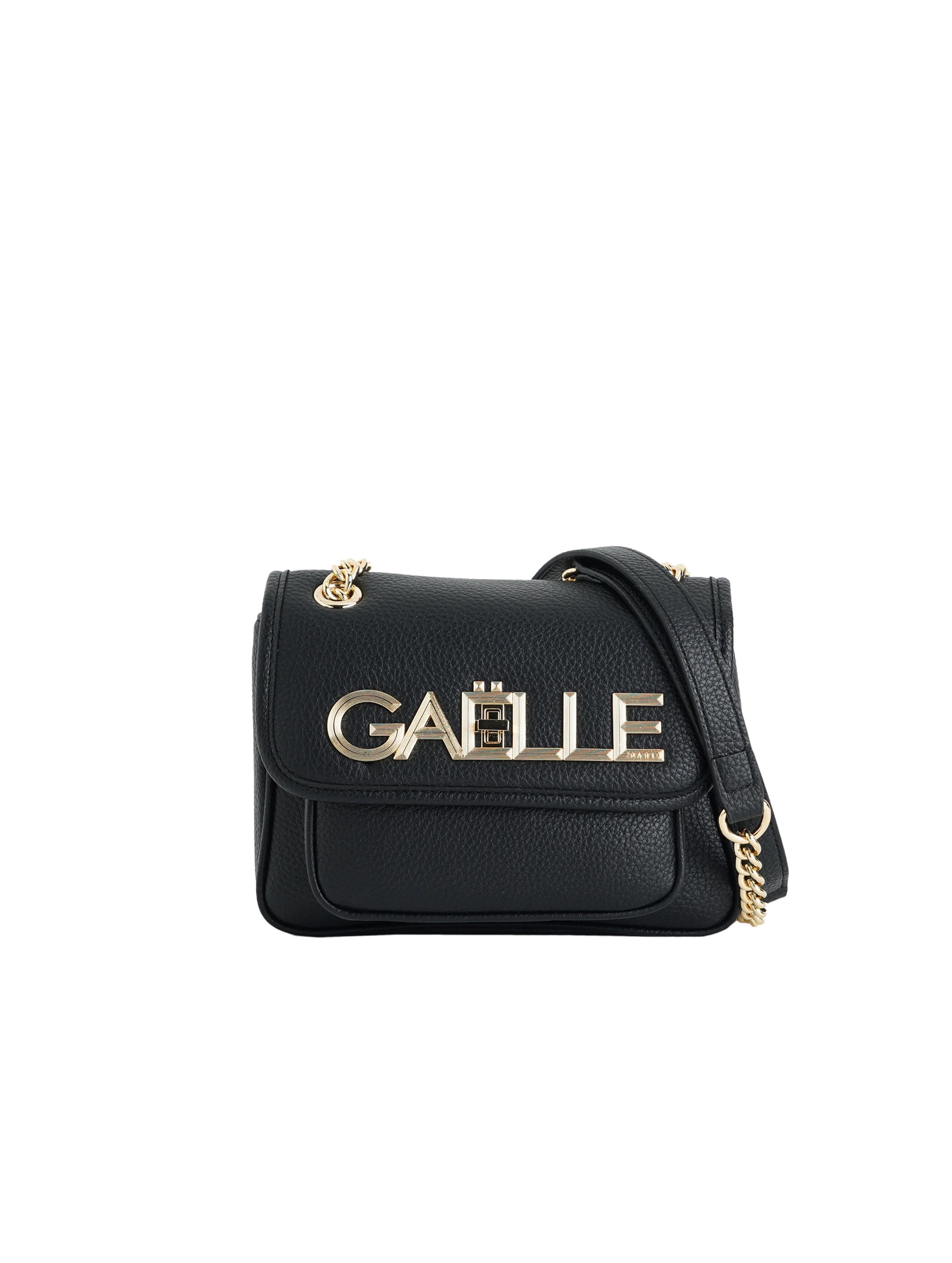 Borsa a spalla in tessuto ecopelle bottalato, con chiusura con patta e girello, doppia tracolla con catena e salvaspalla, tasca esterna applicata e logo in galvanica oro sul davanti. Per un look fashion e chic. GAELLE PARIS