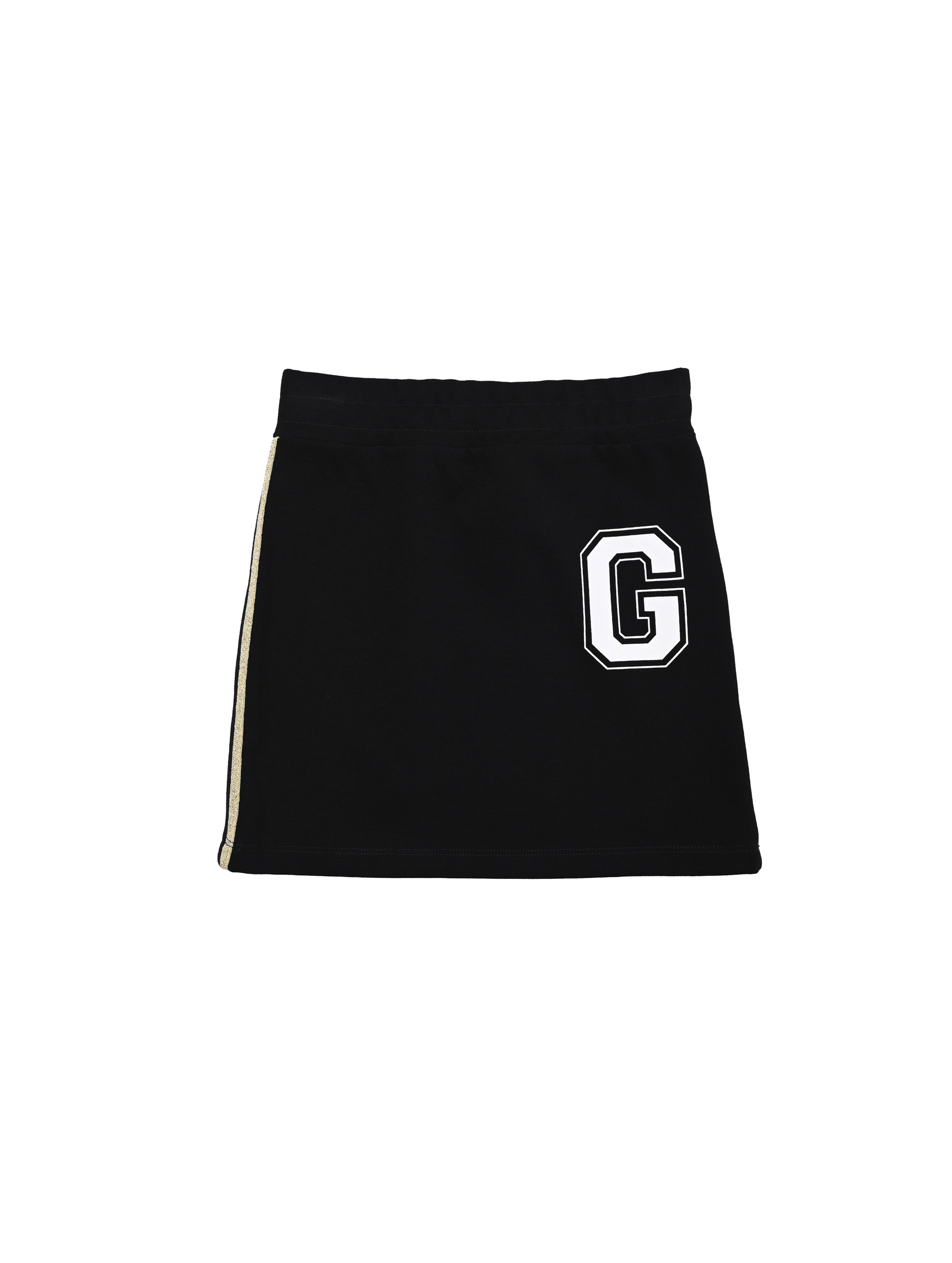 Minigonna a tinta unita, con iniziale logo a contrasto e dettagli oro. Ideale per un look casual con un tocco glamour. GAELLE PARIS