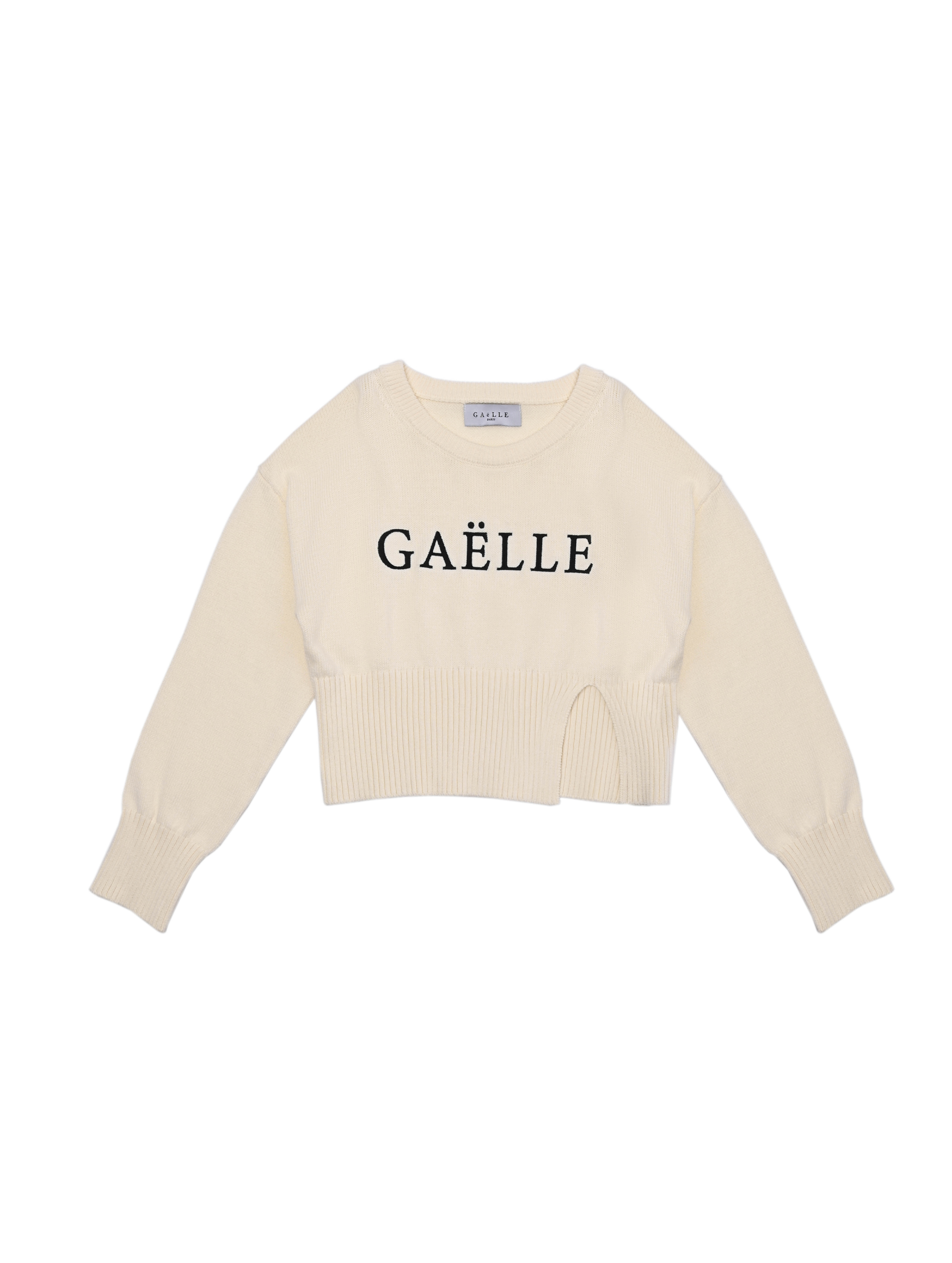 Maglia girocollo, taglio crop, a tinta unita, con insert ricamo scritta logo centrale a contrasto. Stay fashion. GAELLE PARIS