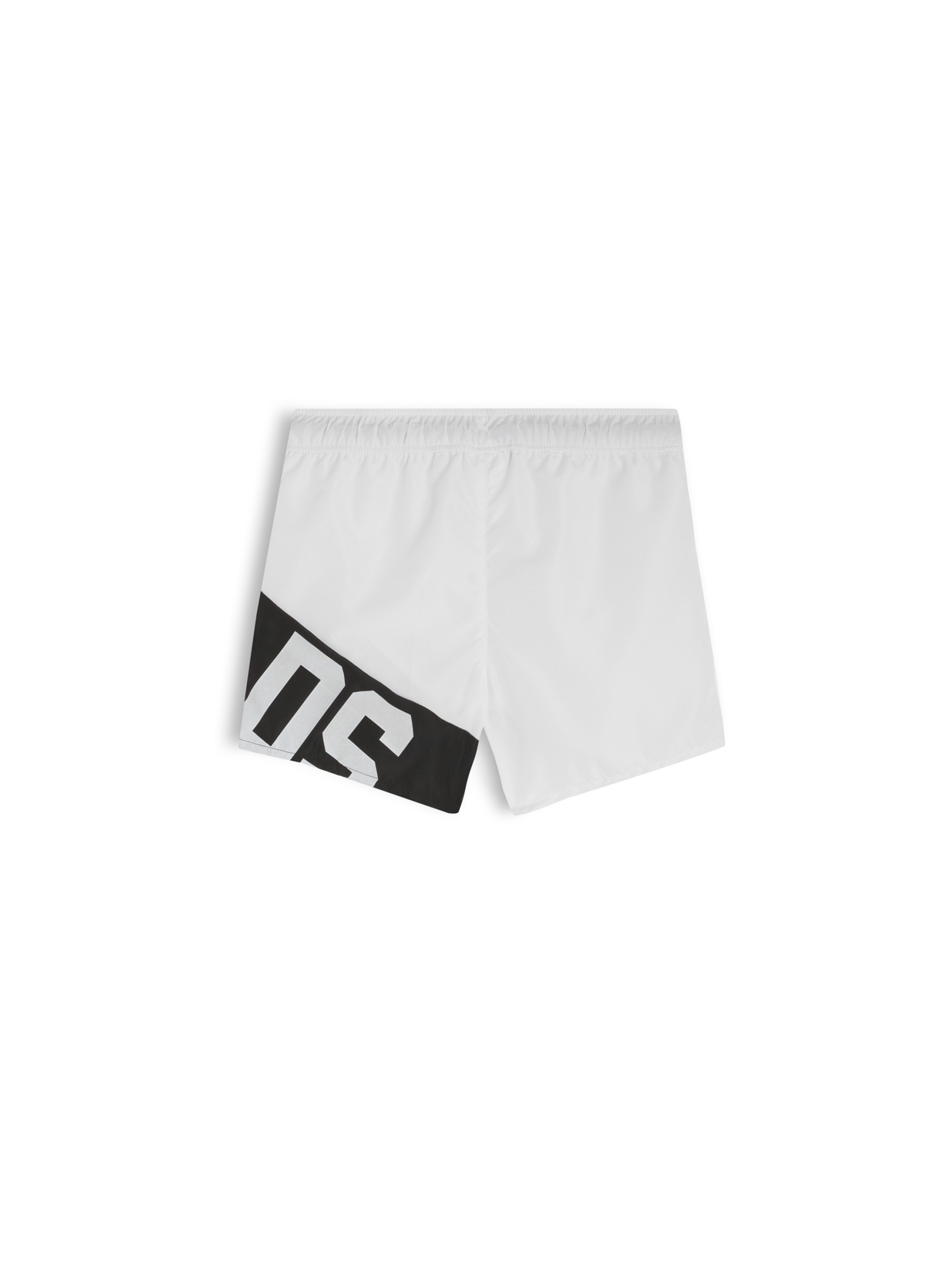 Costume modello shorts, in tessuto leggero e traspirante, a tinta unita, con vita elasticizzata, coulisse a contrasto e maxi logo lettering colorblock sul lato davanti e dietro. Per un look trendy e fashion. GCDS