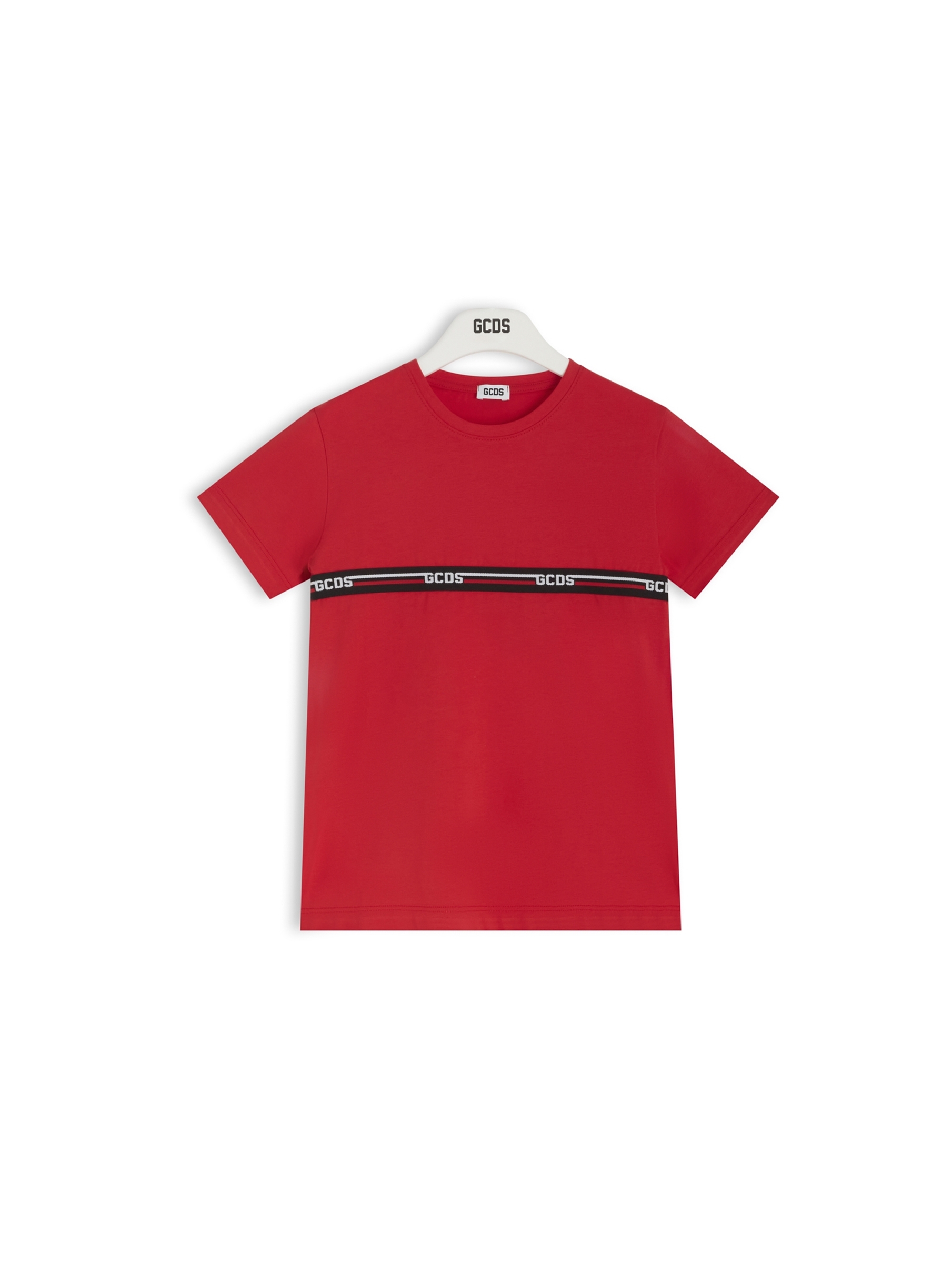 T-shirt a maniche corte, con scollo rotondo, a tinta unita, con piccola banda logo GCDS con righe a contrasto sul davanti e sul retro. Per un look casual e basic. GCDS