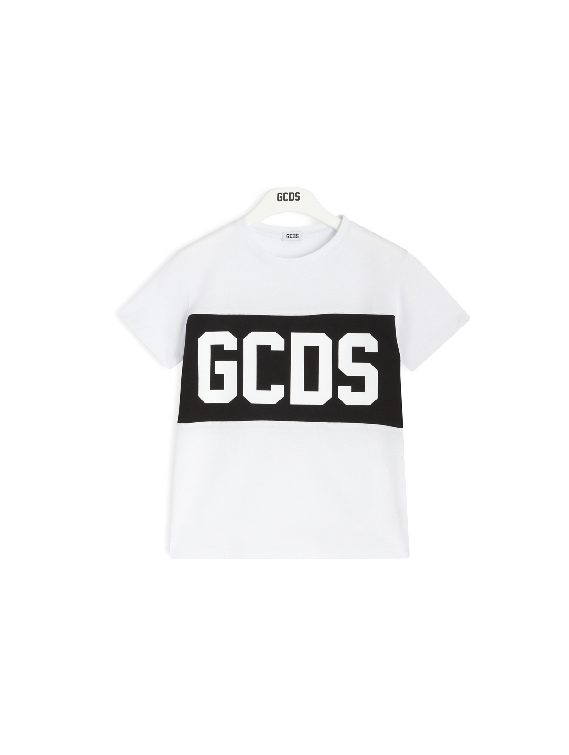 T-shirt a maniche corte, con scollo rotondo, a tinta unita e con classica maxi banda logo a contrasto sul davanti e sul retro. Per un look casual e trendy. GCDS
